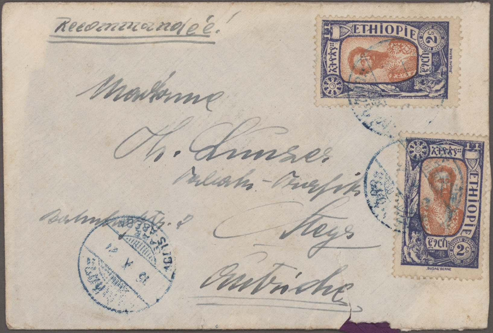 1890/1940 (ca.), North East Africa, assortment of 30 entires Ethiopia, French Somalia, Egypt, Sudan, Italian Eritrea/Somalia, slightly mixed condition, incl. stationeries, commercial mail, attractive frankings.