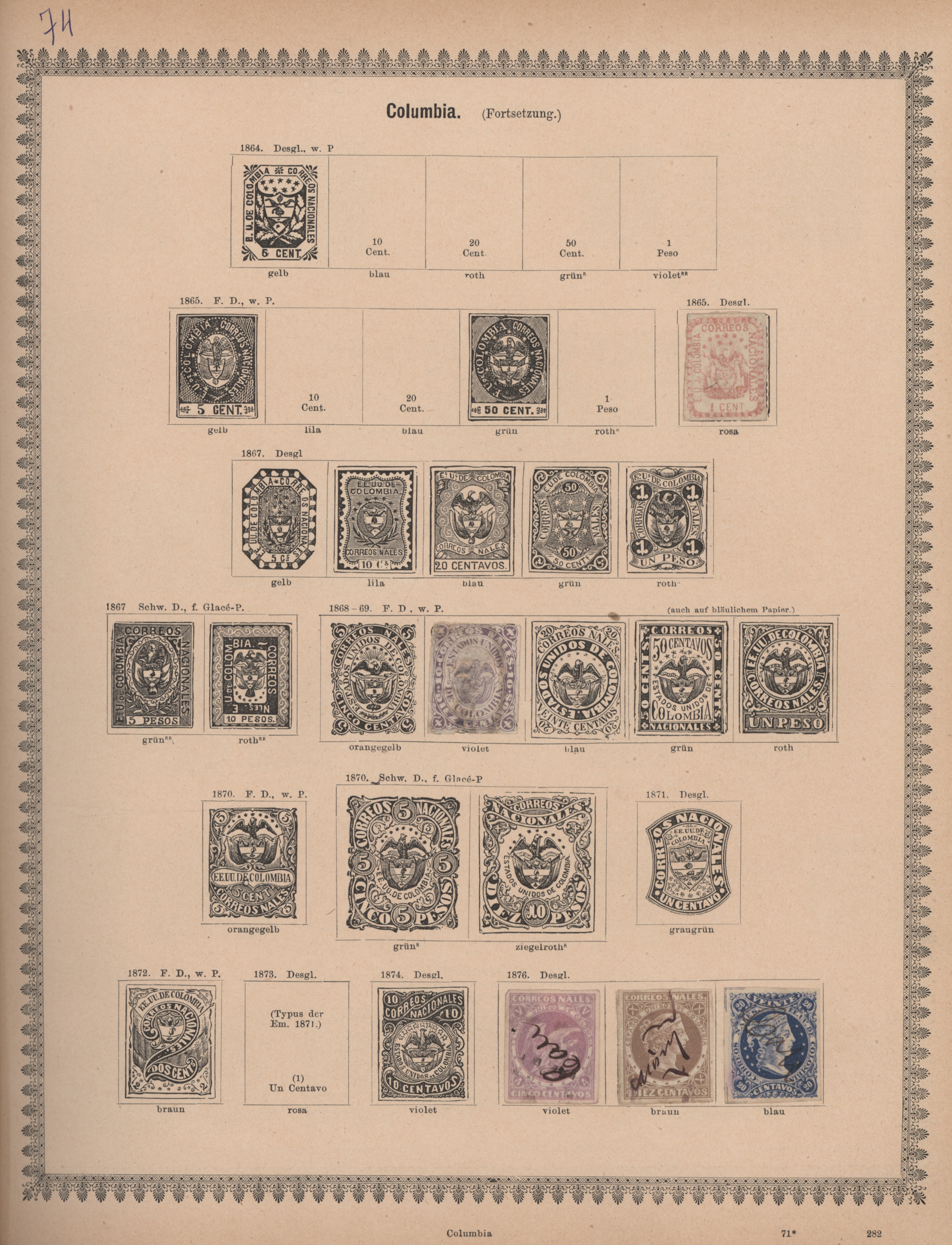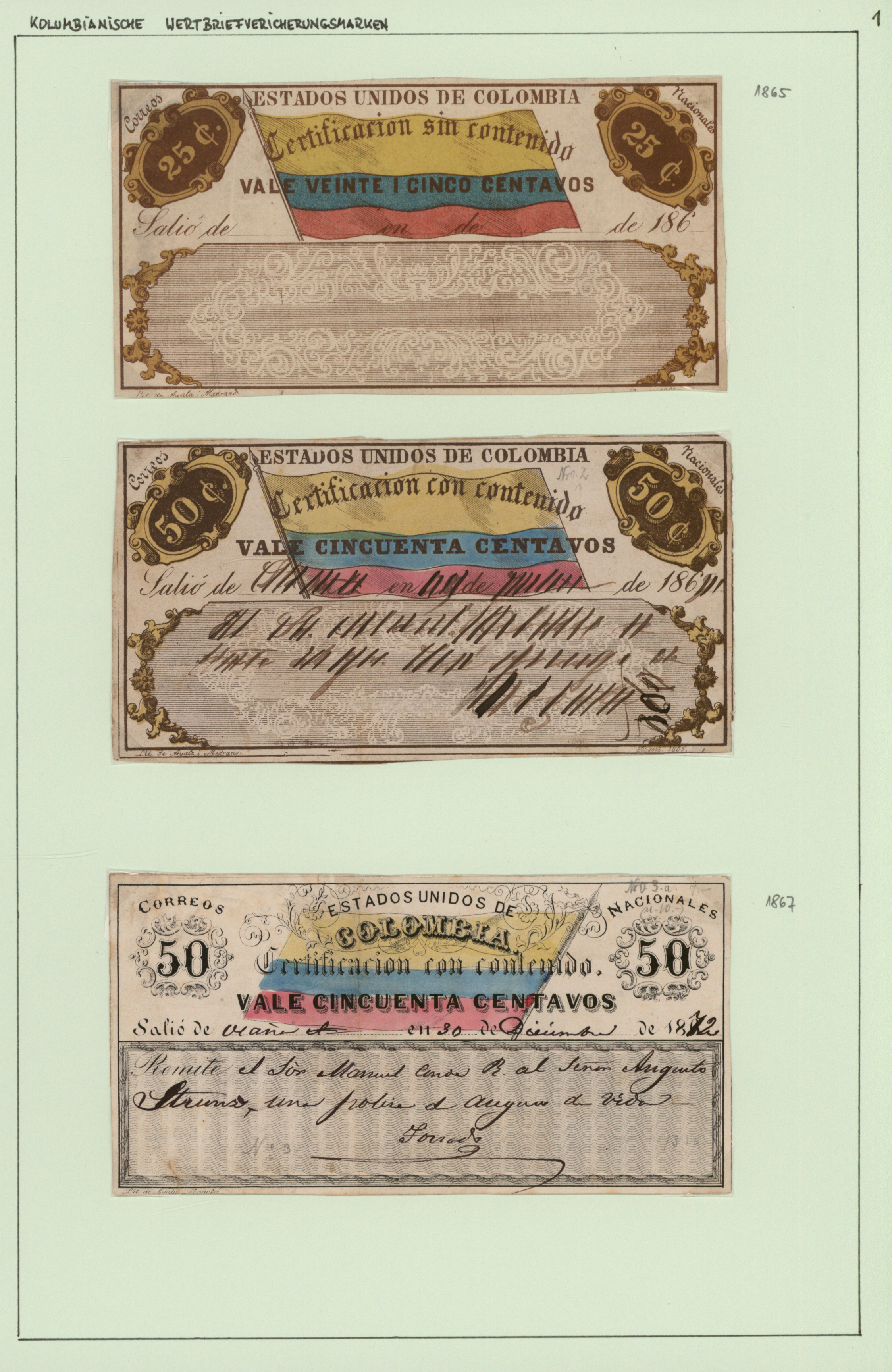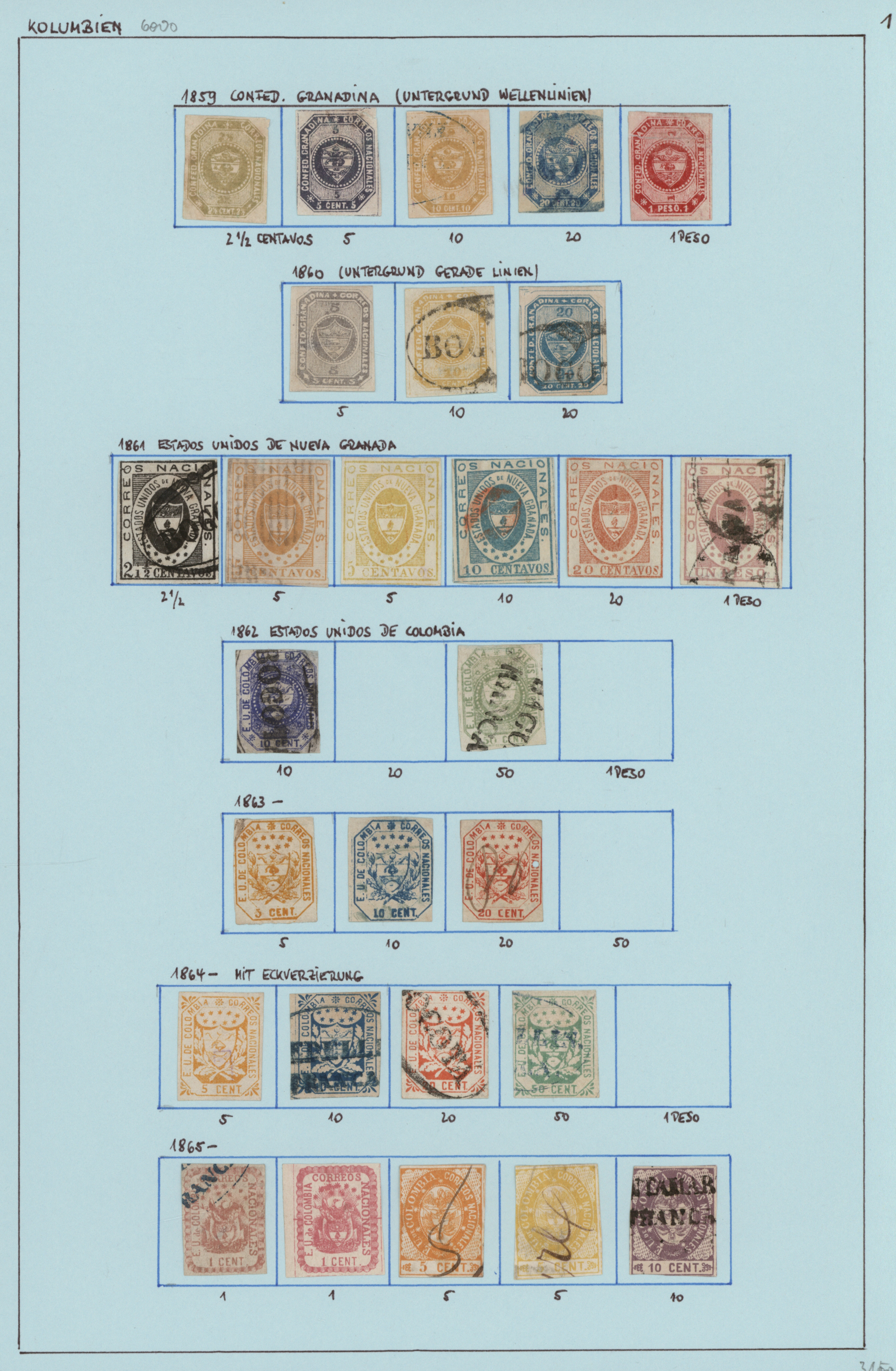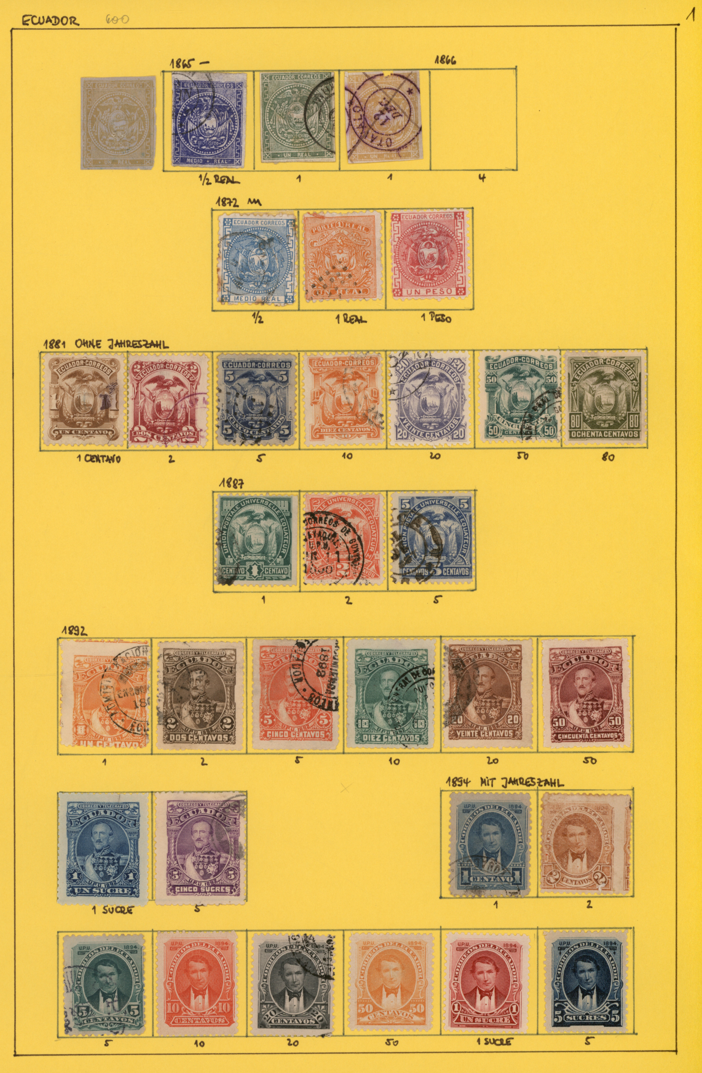 1860/2003 (ca.), extensive estate in a big box offering plenty of material, f.e. Colombia classic issues and local stamps on pages, modern material on pages and in a stockbook. Ecuador 1870/1965 in a stockbook, two stockbooks with mostly old stamps of different countries, a small Urguguay collection and more. A treasure trove at a very low starting price.