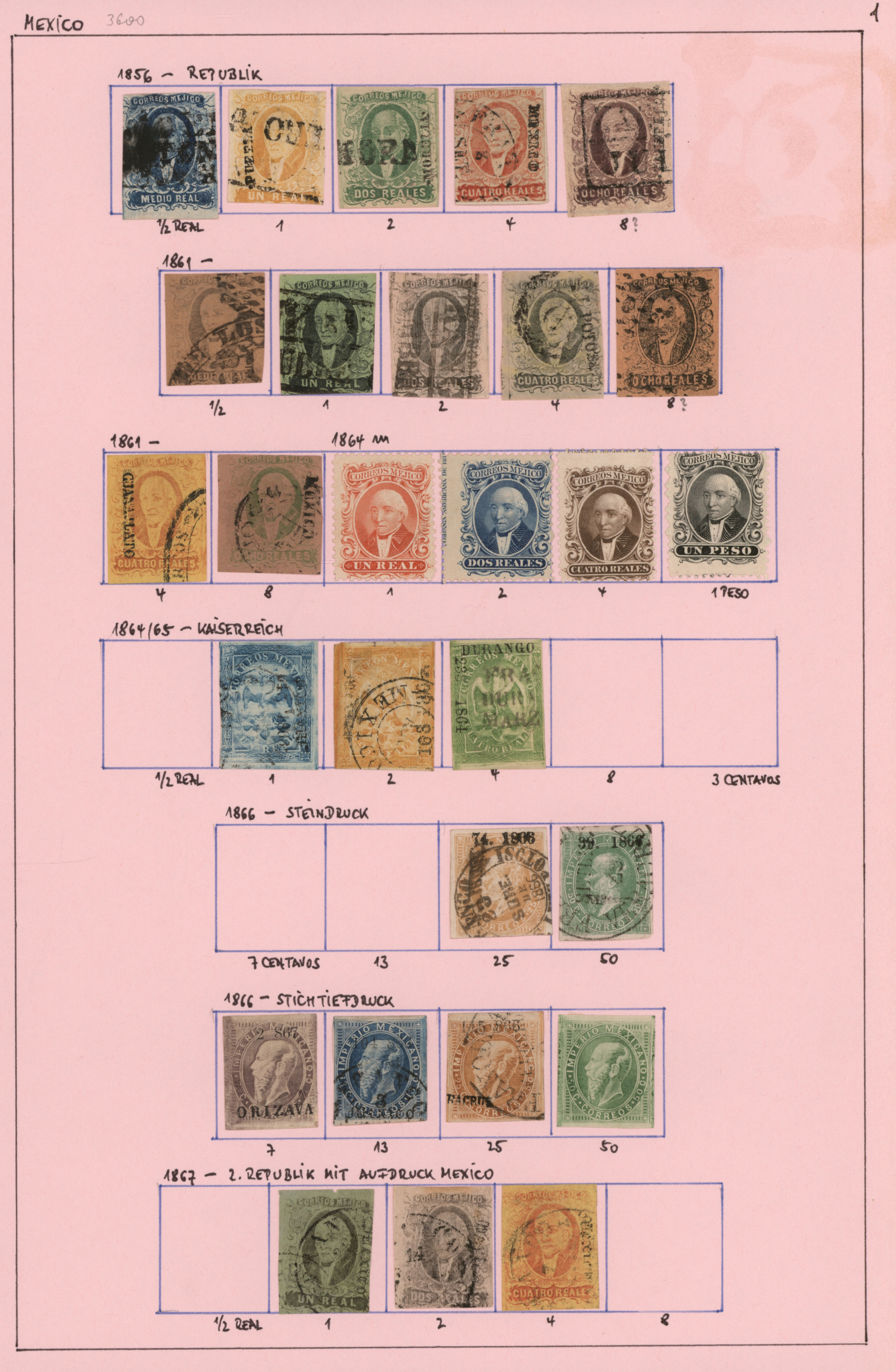 1858/1990 (ca.), colourful collection across the southern half of the American continent from Mexico to Argentina plus the Caribbean countries on hundreds of pages in seven big, fat binders alphabetically by countries from the colonial or classic era to modern issues, mostly used, some mint hinged. Strong part Mexico, Brasil, Argentina with many early and older issues, Nicaragua and Cuba with many modern sets. Additionally two stockbooks. Please check carefully for findings.
