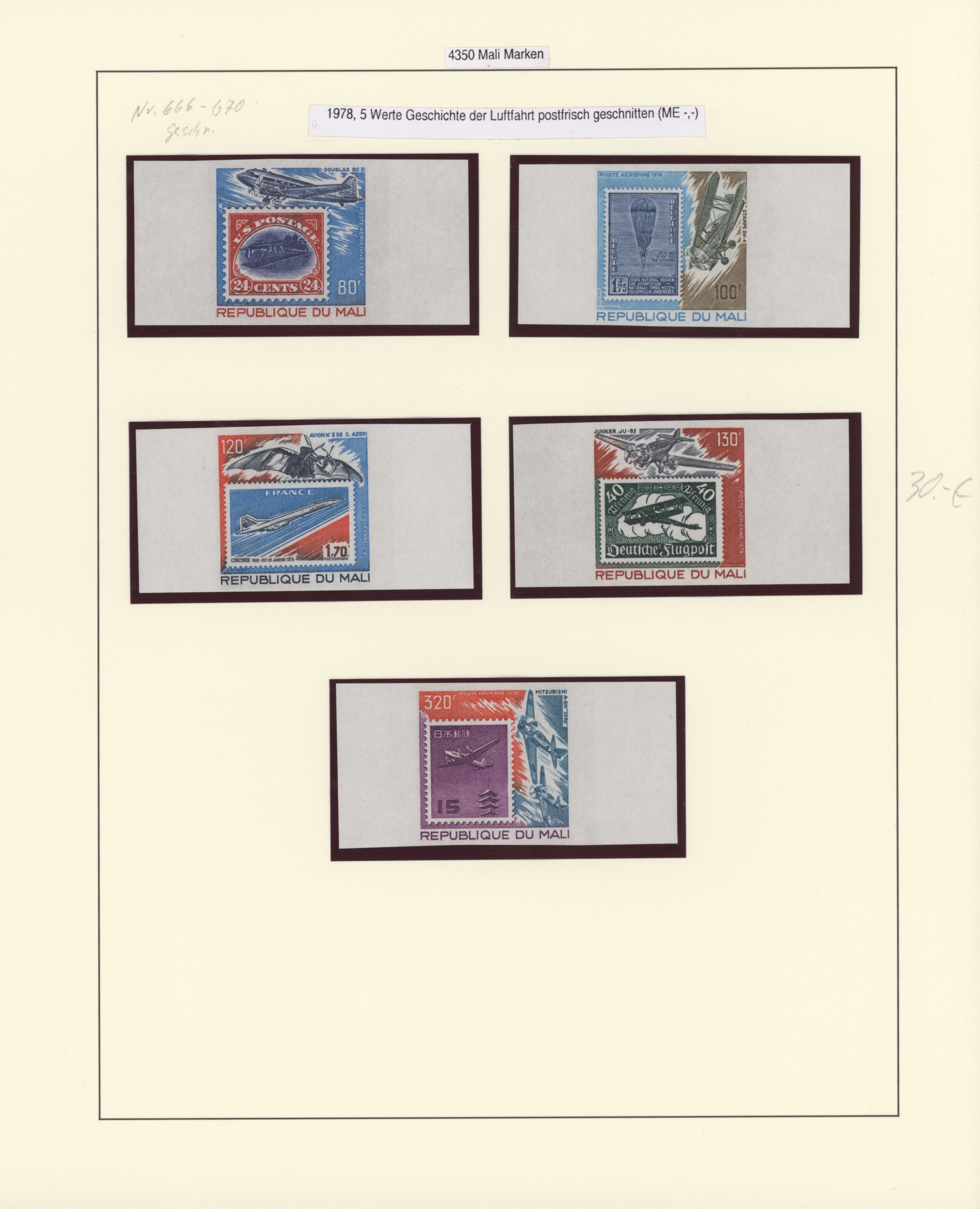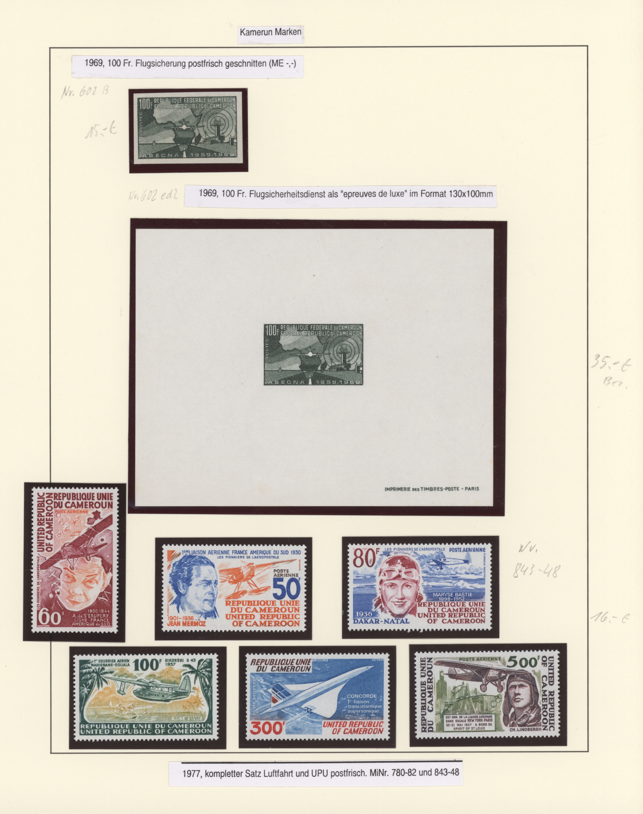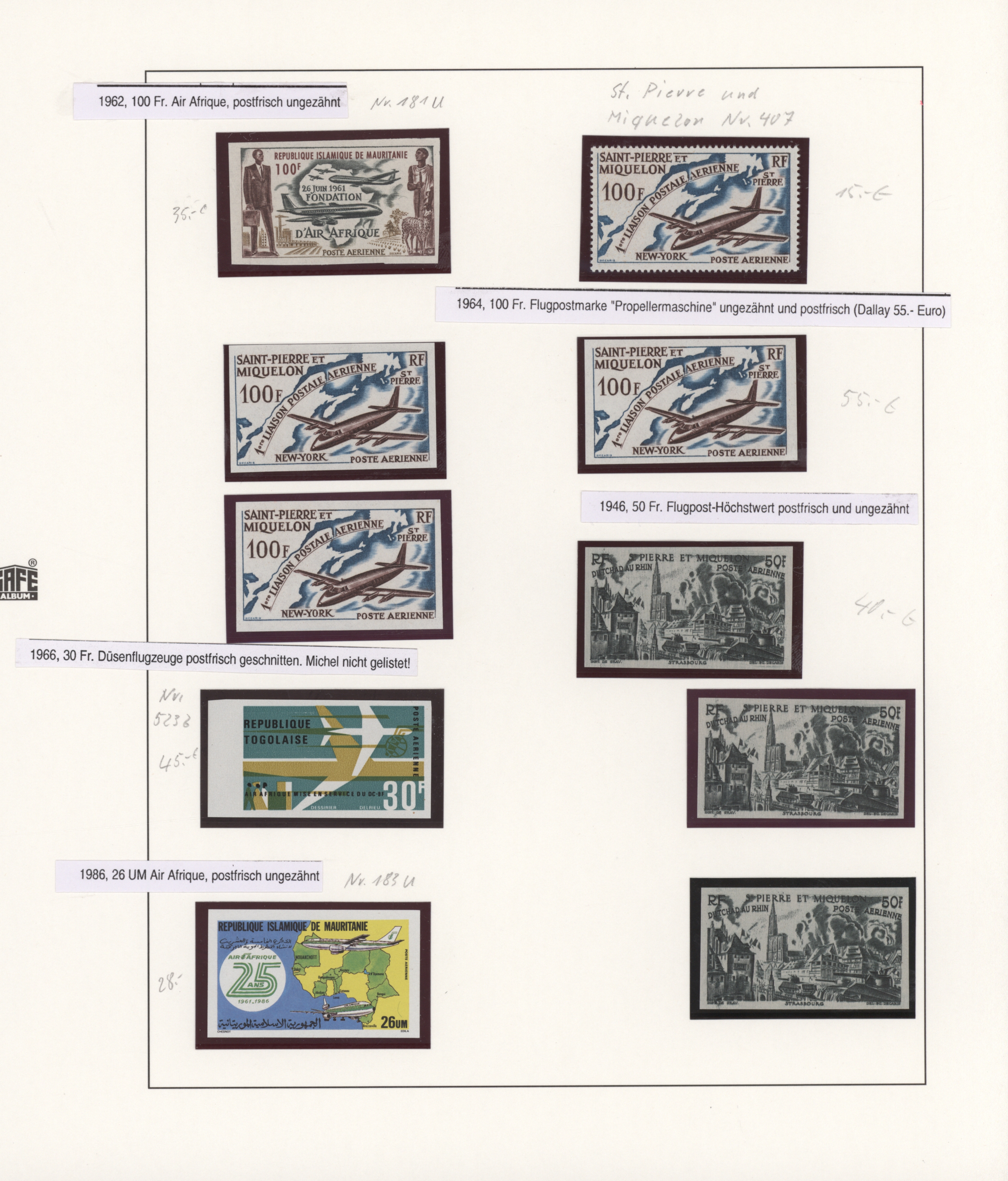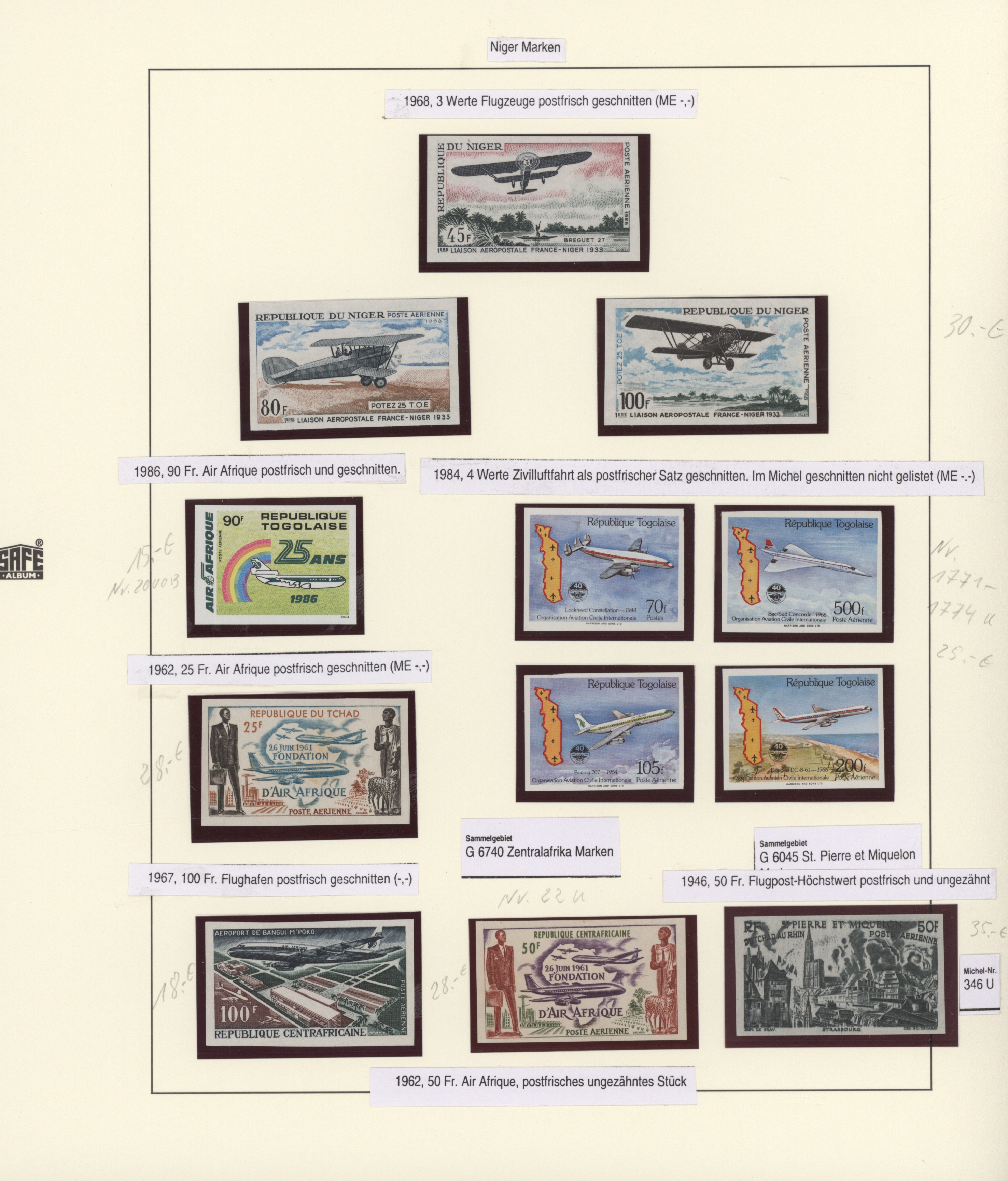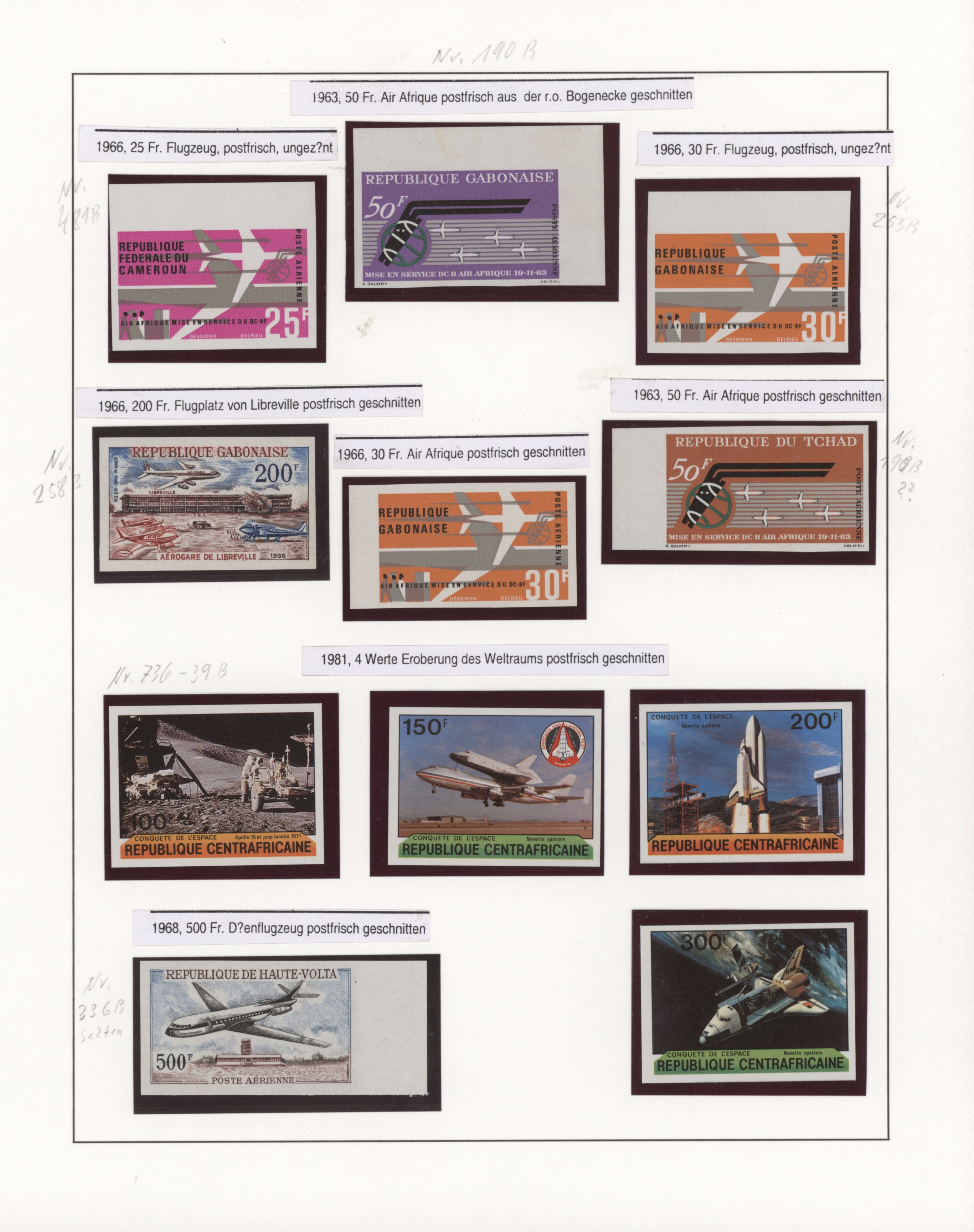 1930/1980, sophisticated collection of airmail stamps of various African states with special focus on French Africa, comprising also imperf stamps, souvenir and de luxe sheets, epreuve de luxe, etc. Arranged on apprx. 65 album pages.