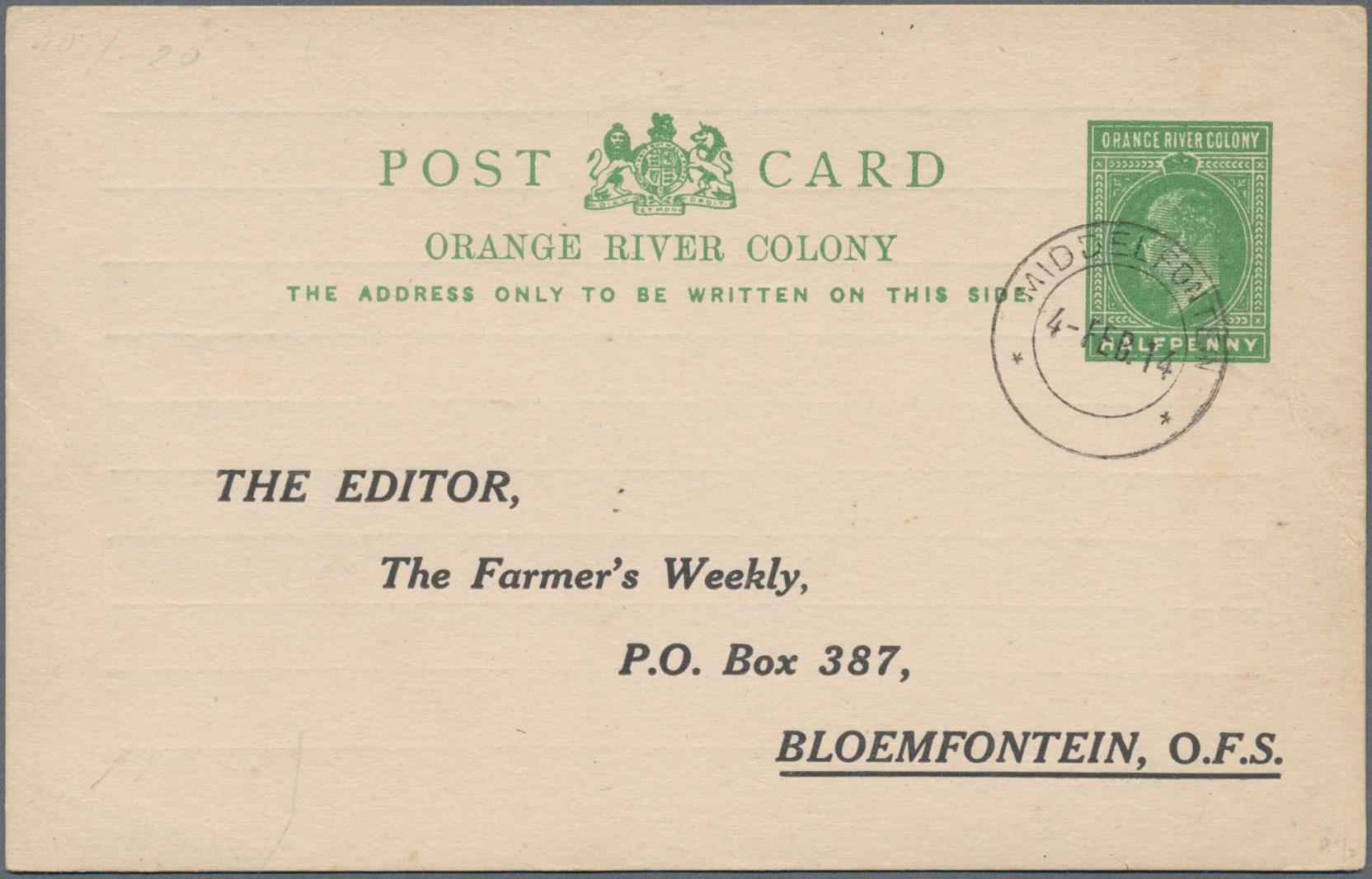1907/1999, British Africa, lot of 23 covers/cards (plus one piece), comprising e.g. Orange River Colony used stationeries (postal cards and registered envelopes), airlettersheets, meter marks, etc.
