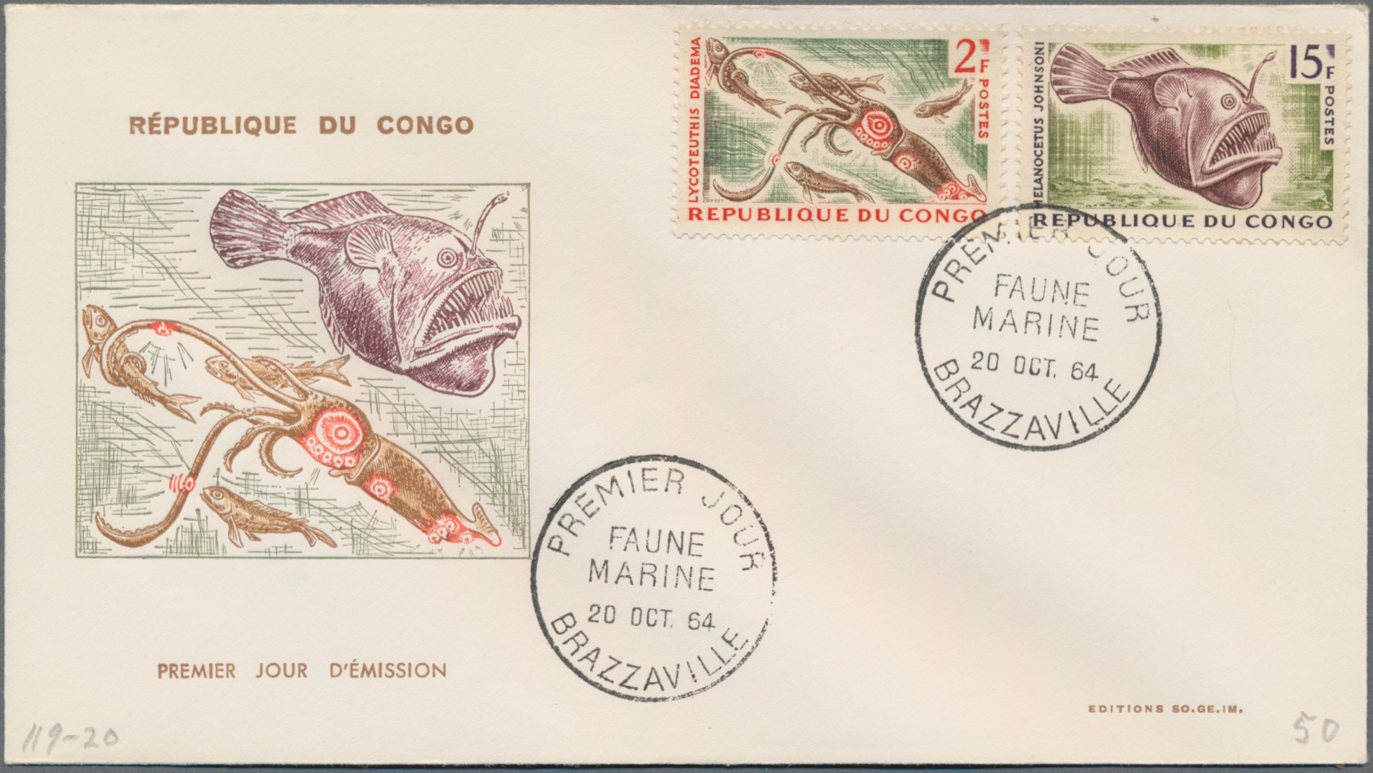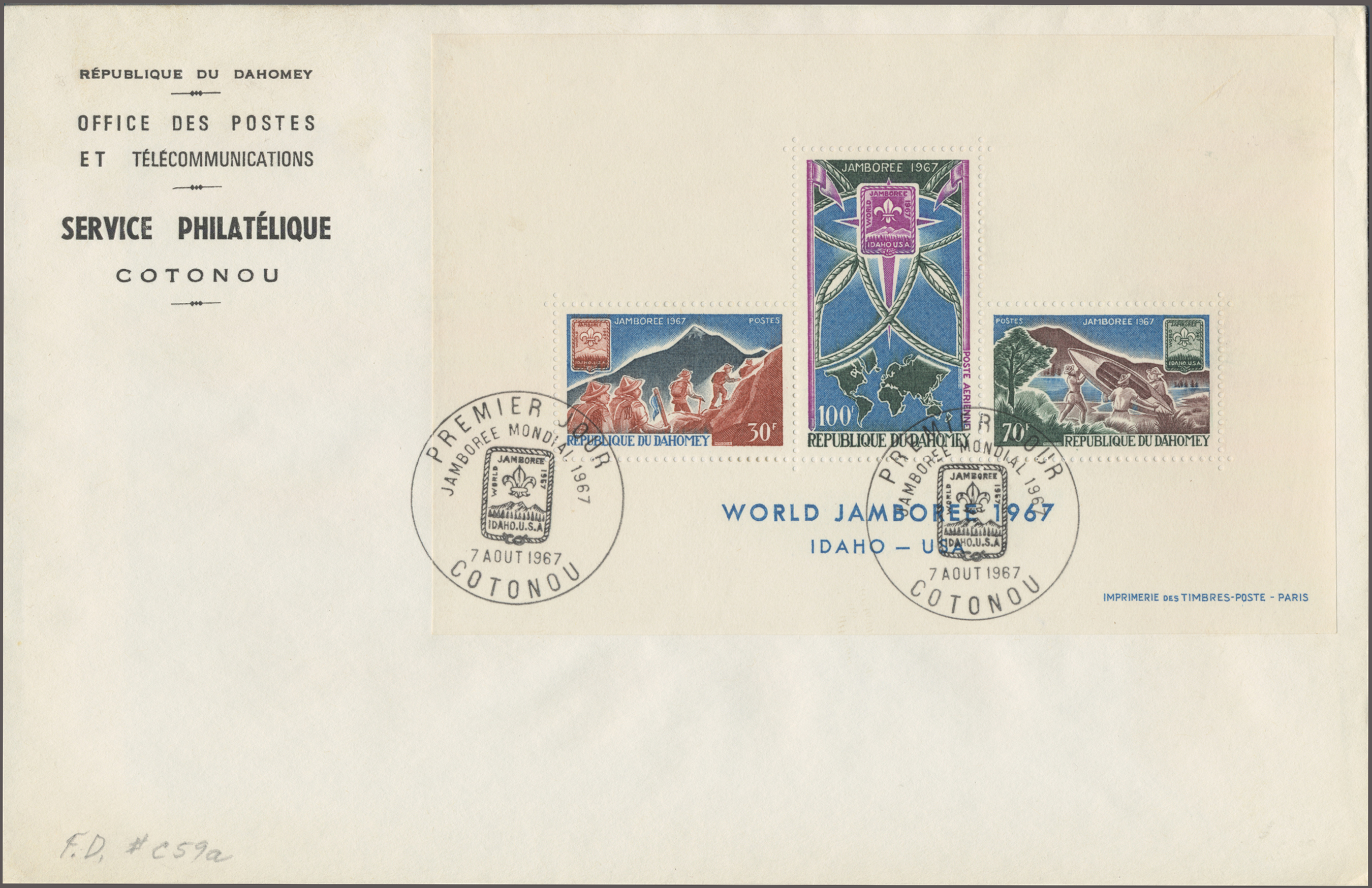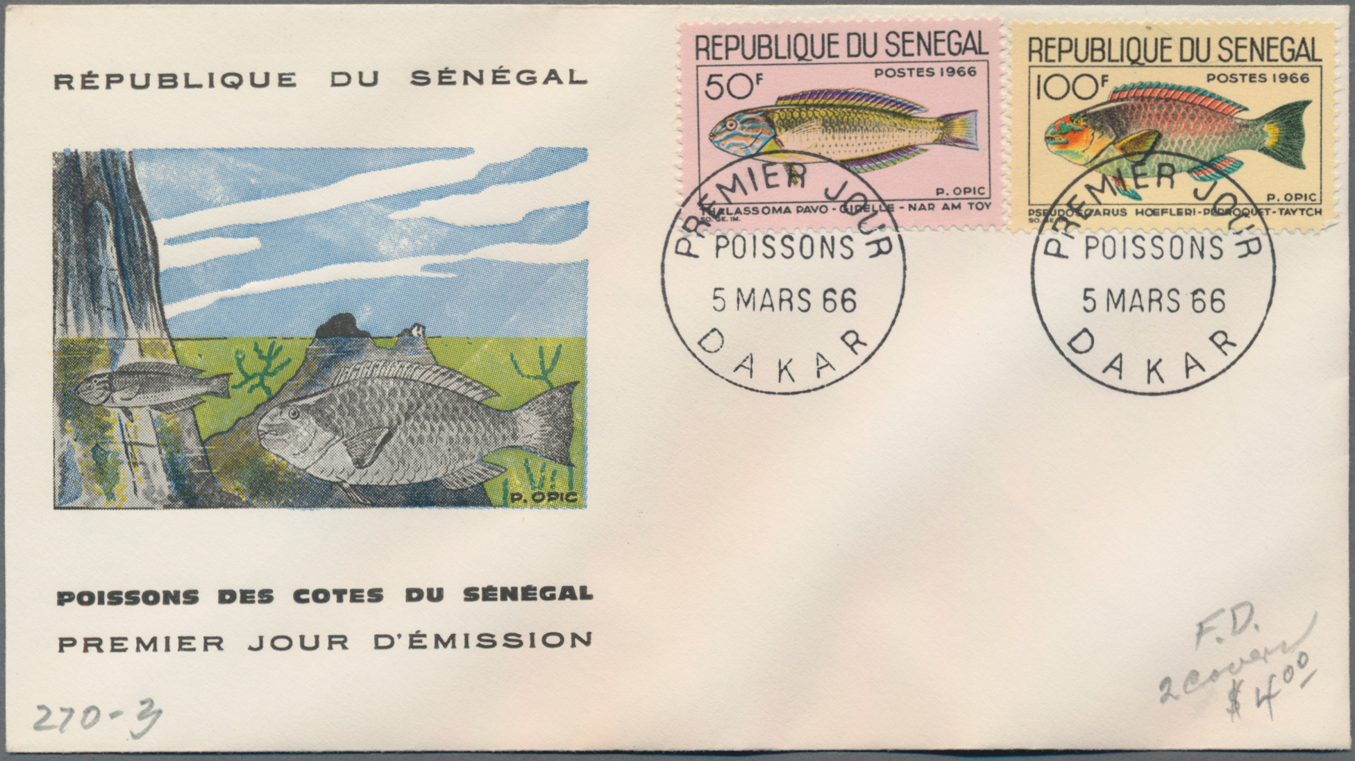 1959/1966, French Africa, balance of apprx. 440 cacheted f.d.c. of Cameroun, Congo, Gabon, Mail, Niger, Ivory Coast, Centralfafrican Republic, Upper Volta, Senegal, Chad, Madagascar, Togo, incl. many attractive thematics like Planes, Sports, Space, Birds, Fish, Butterflies, Red Cross, etc.