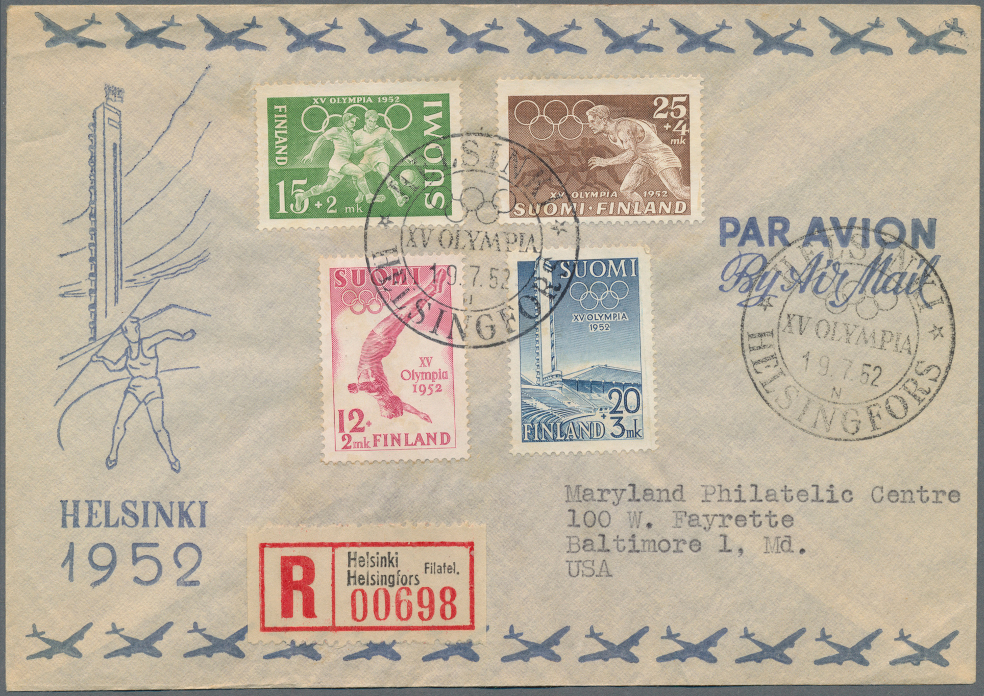 covers with Helsinki machine mark, two uprated Austrian stationery cards by Olympic special flight, etc.