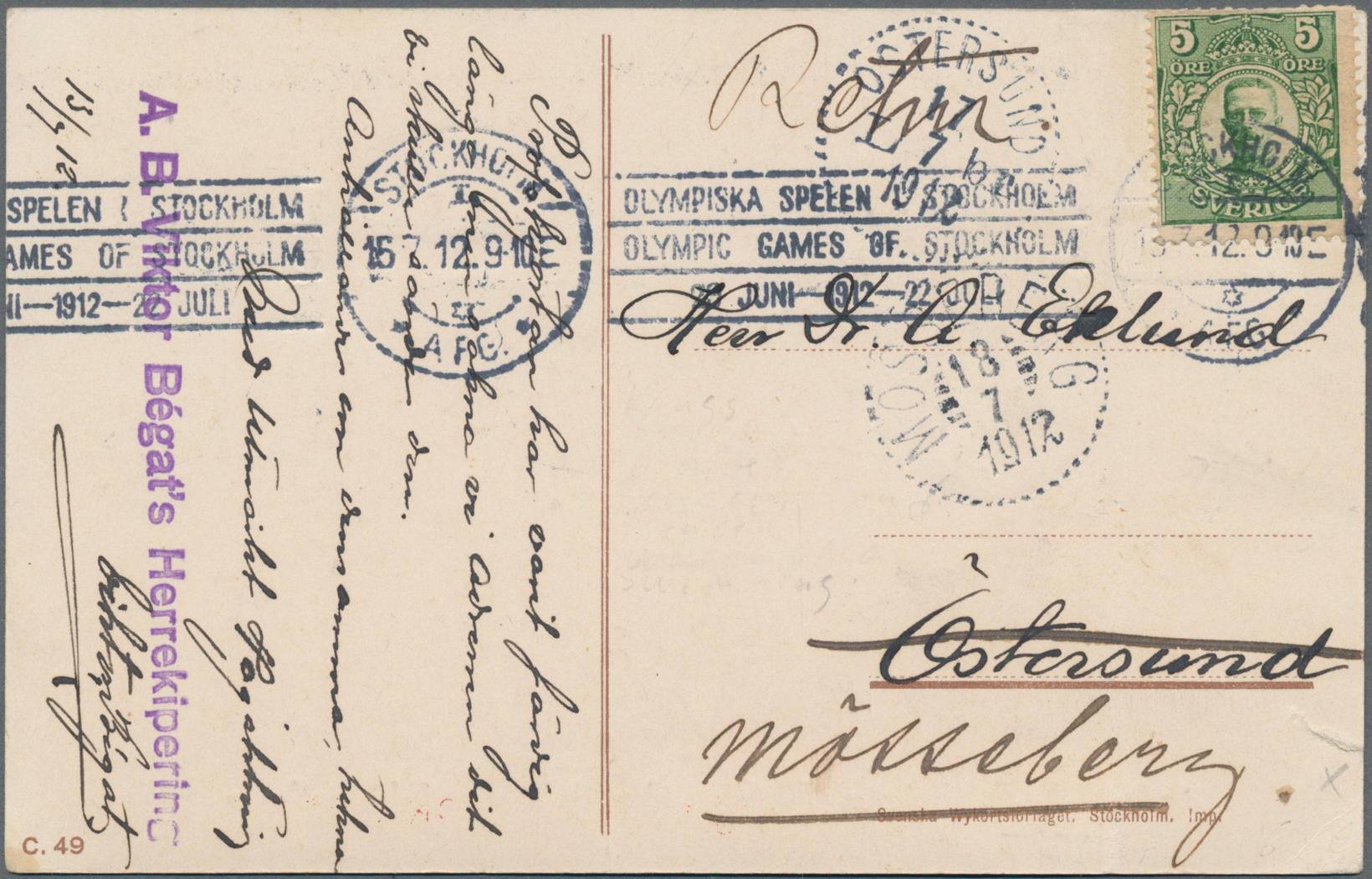 1912/1969, assortment of 29 thematic covers/cards, comprising e.g. slogan machine marks "Stockholm 1912" and "Helsinki 1940", cacheted envelopes, special
