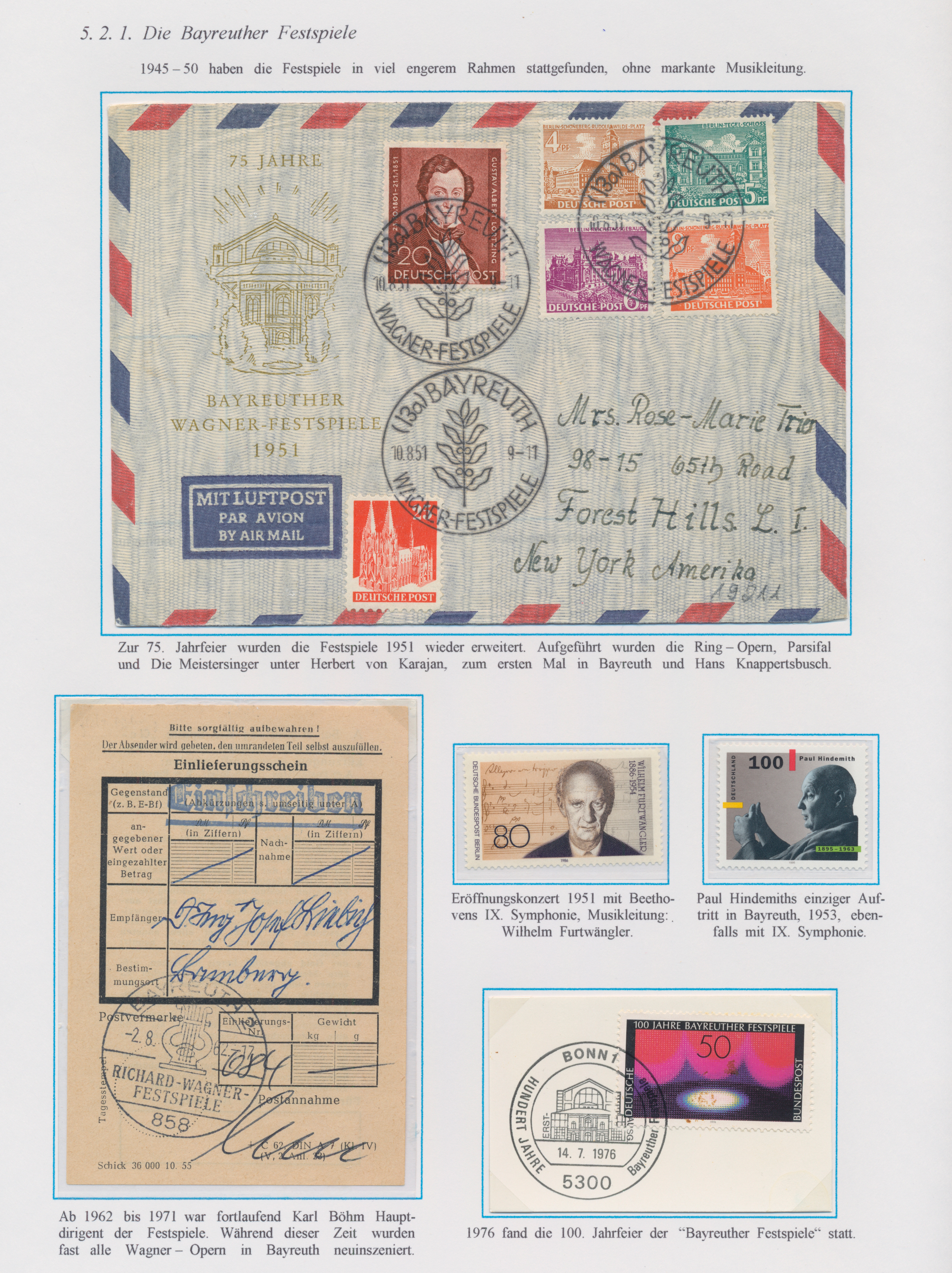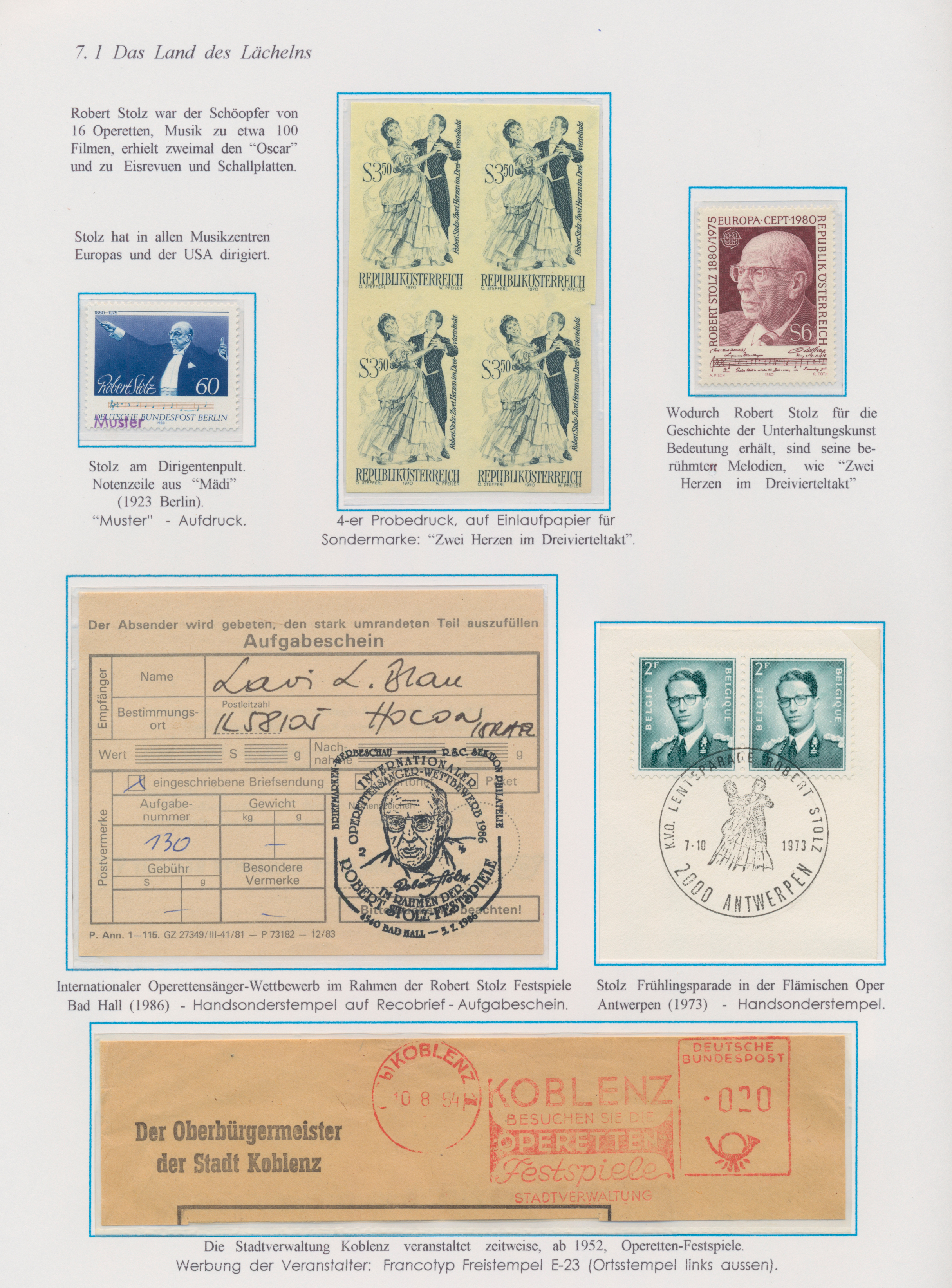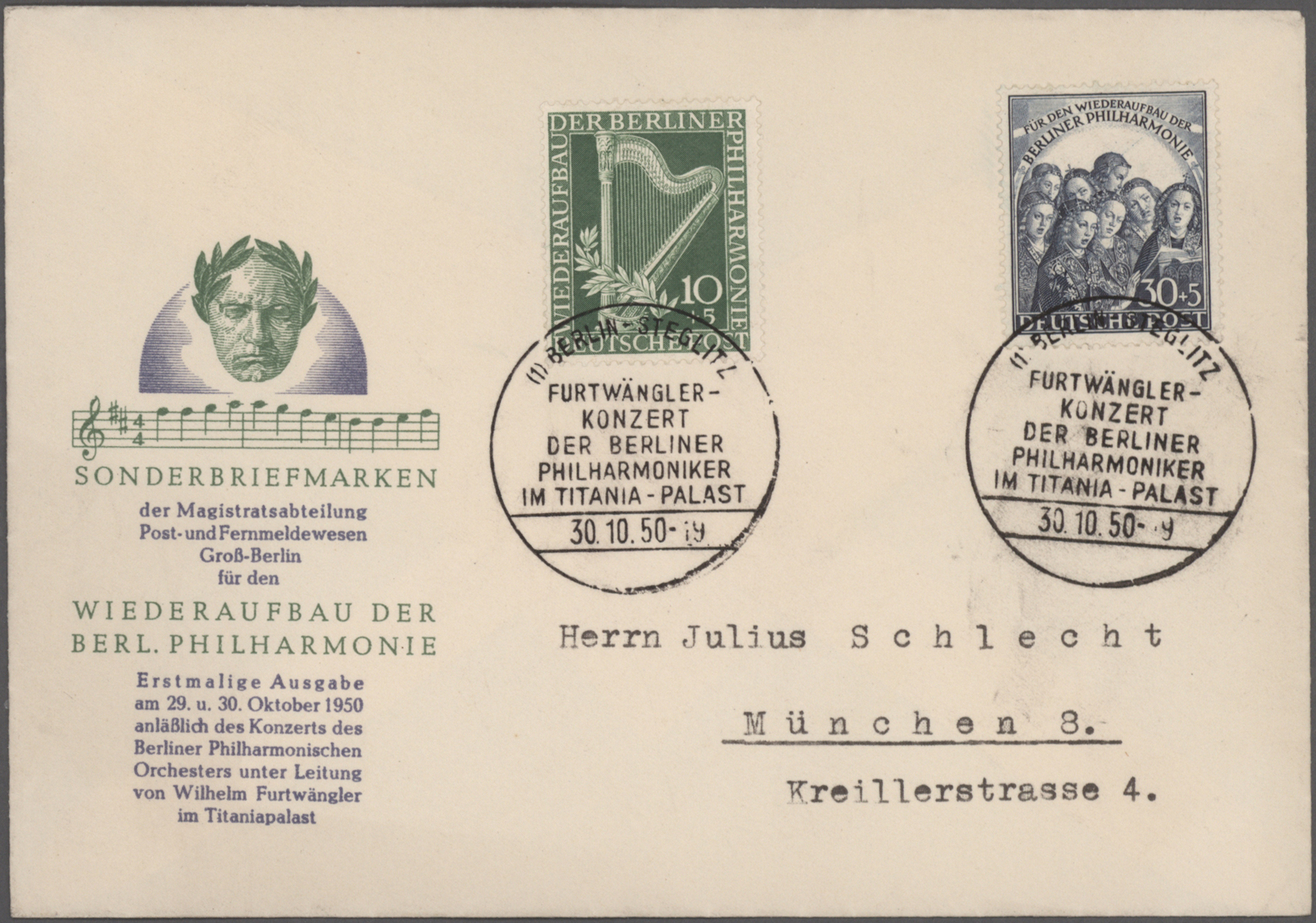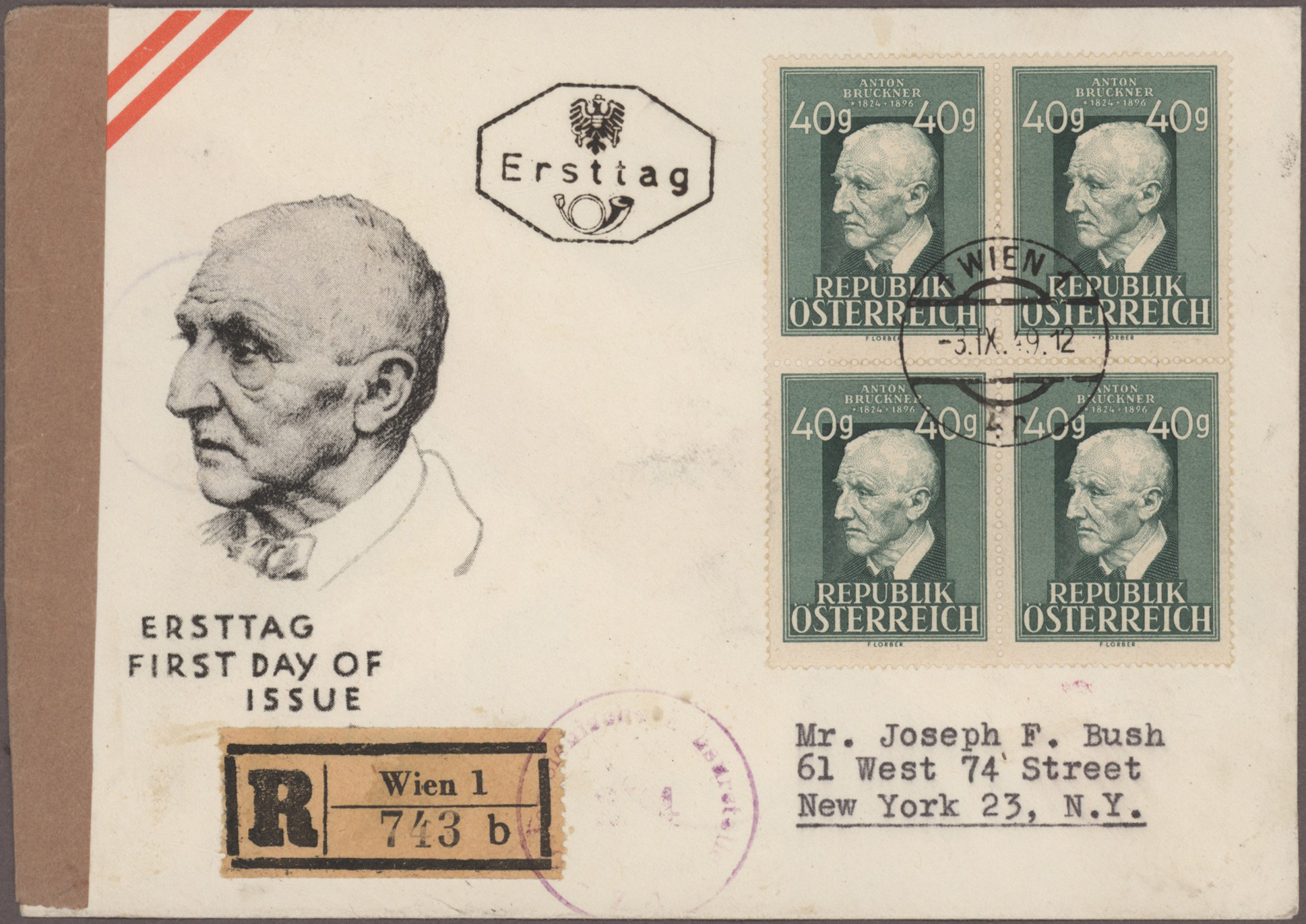 Gustav Mahler, Anton Bruckner, Joseph Haydn, Dirigenten Wilhelm Furtwängler und Herbert von Karajan, usw., mit guter Vielfalt an entsprechenden Frankaturen, Sonder- und Werbestempeln, (Privat-)Ganzsachen, besseren Belegen wie Ungarn Block 1 und