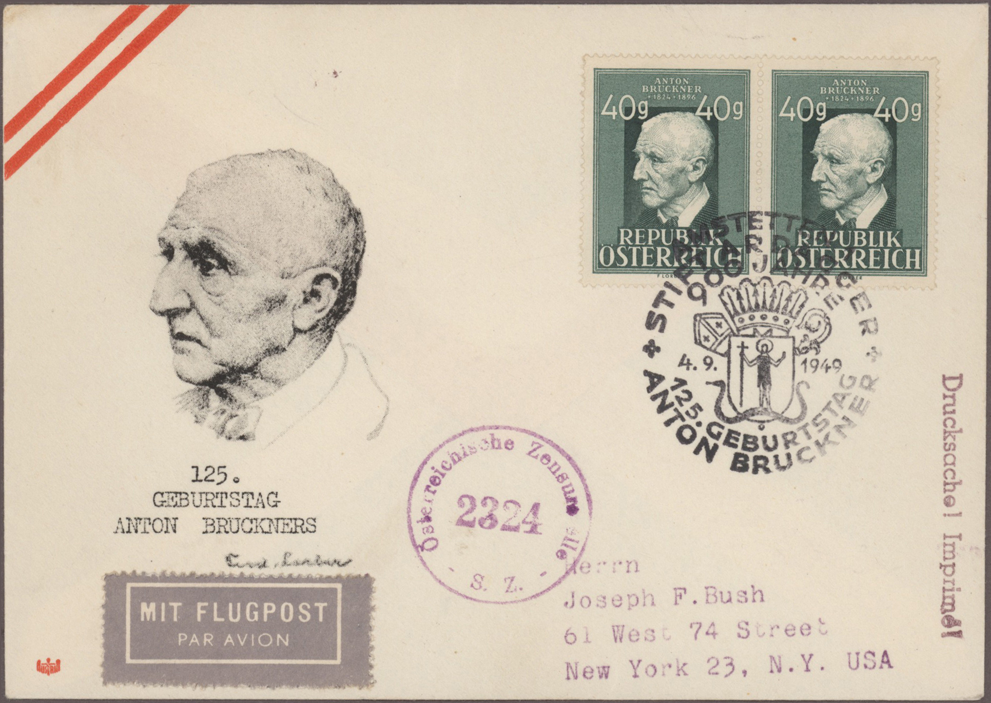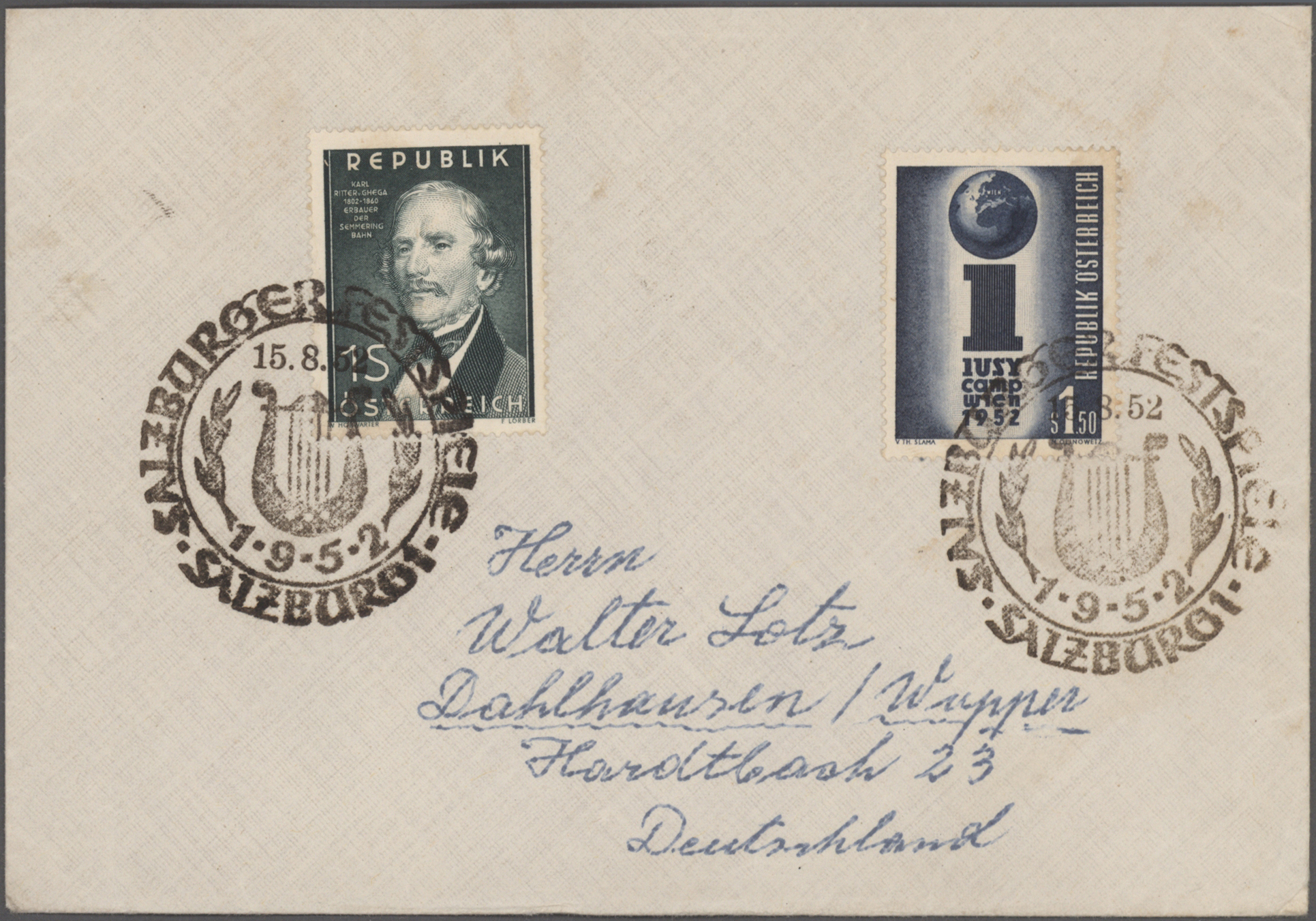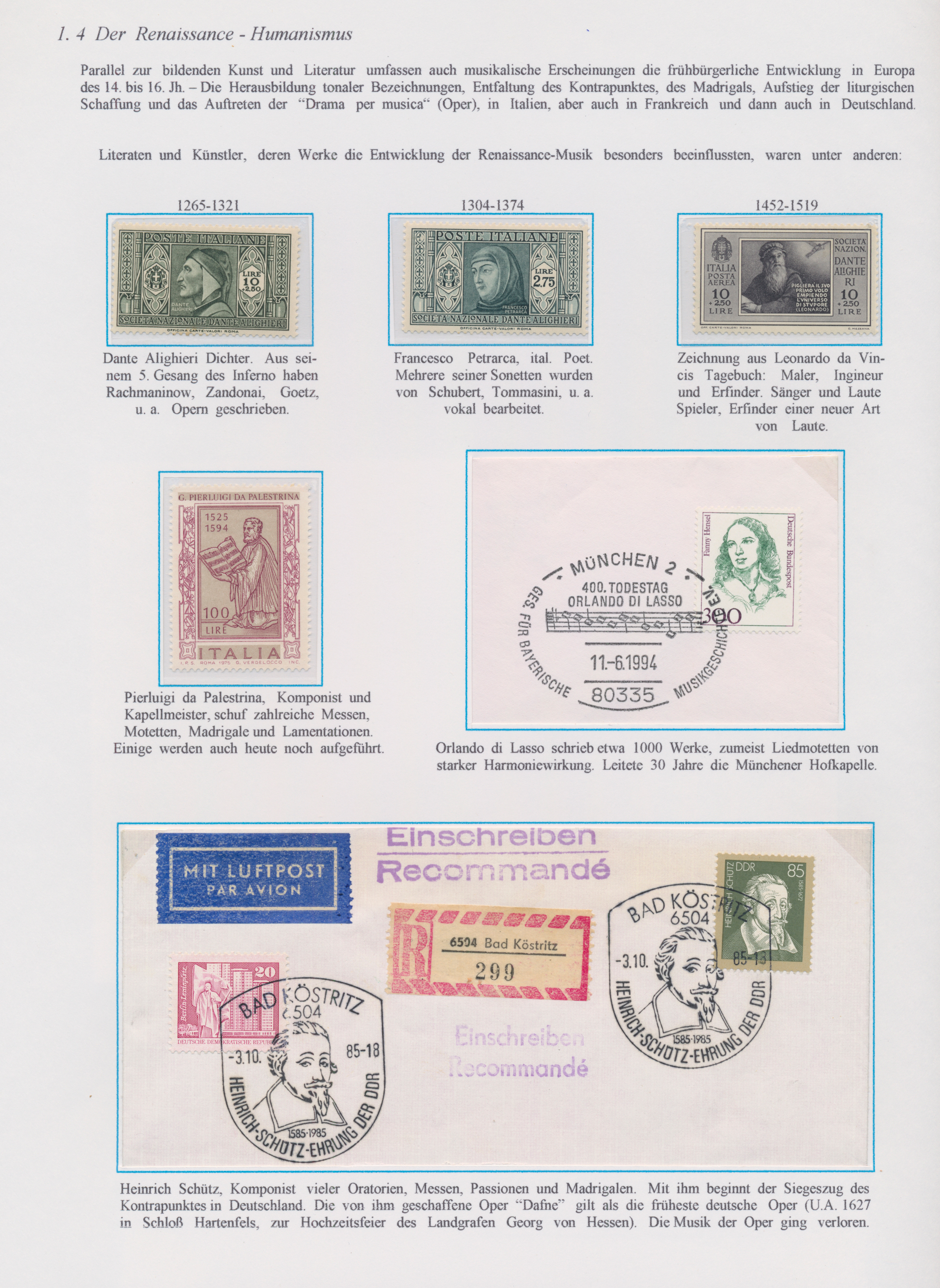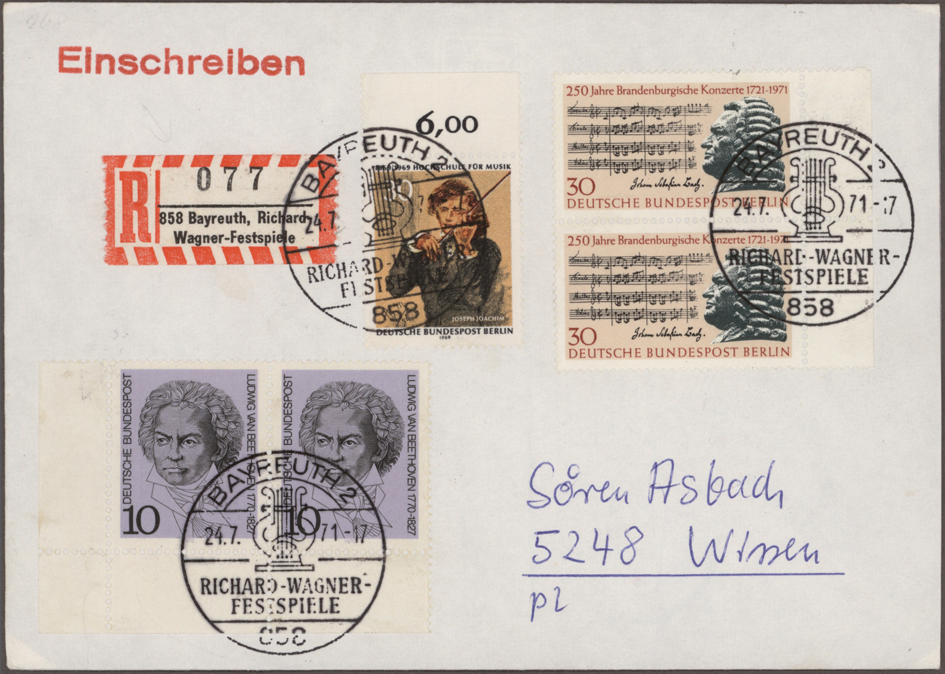 Gustav Mahler, Anton Bruckner, Joseph Haydn, Dirigenten Wilhelm Furtwängler und Herbert von Karajan, usw., mit guter Vielfalt an entsprechenden Frankaturen, Sonder- und Werbestempeln, (Privat-)Ganzsachen, besseren Belegen wie Ungarn Block 1 und
