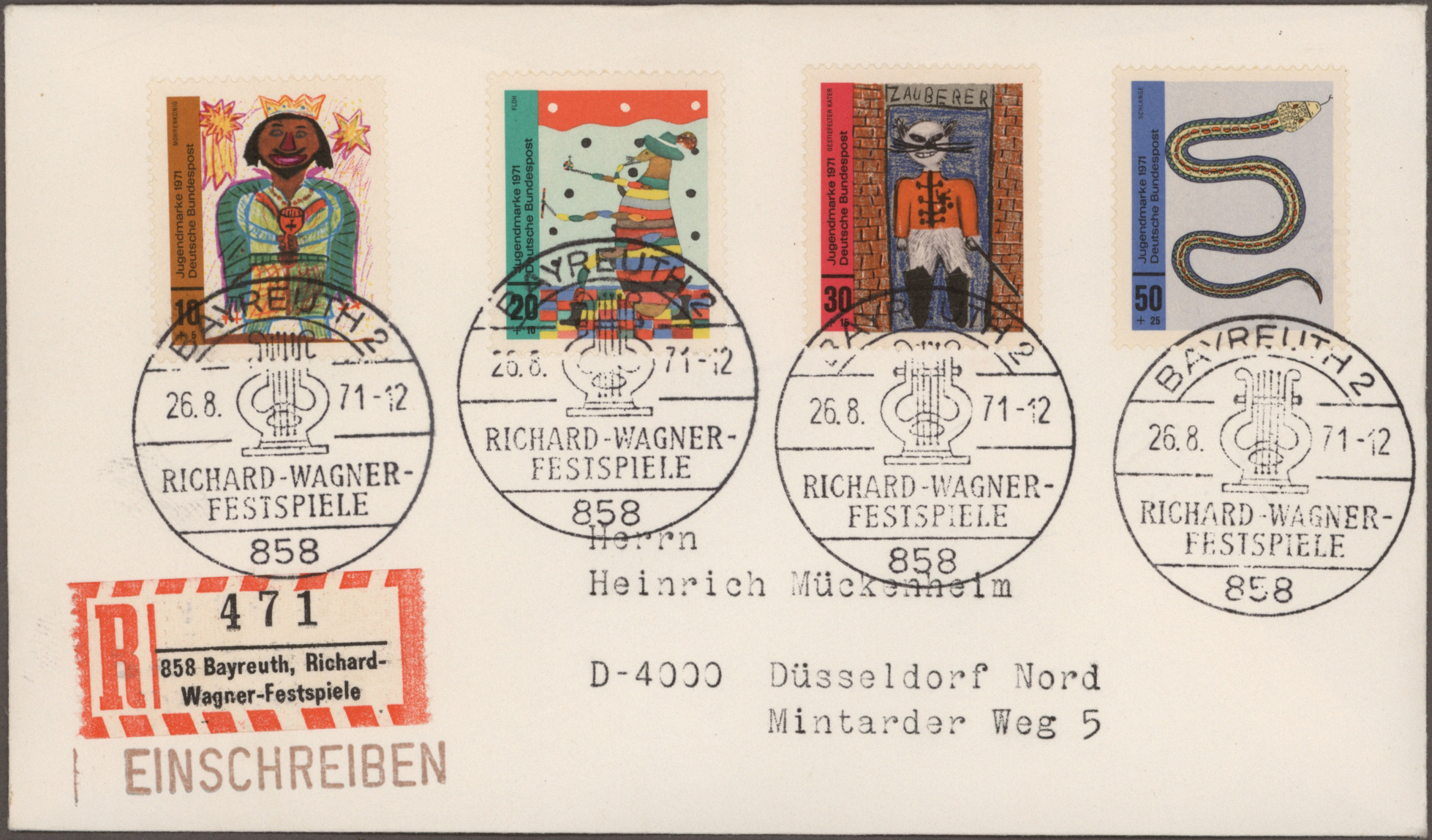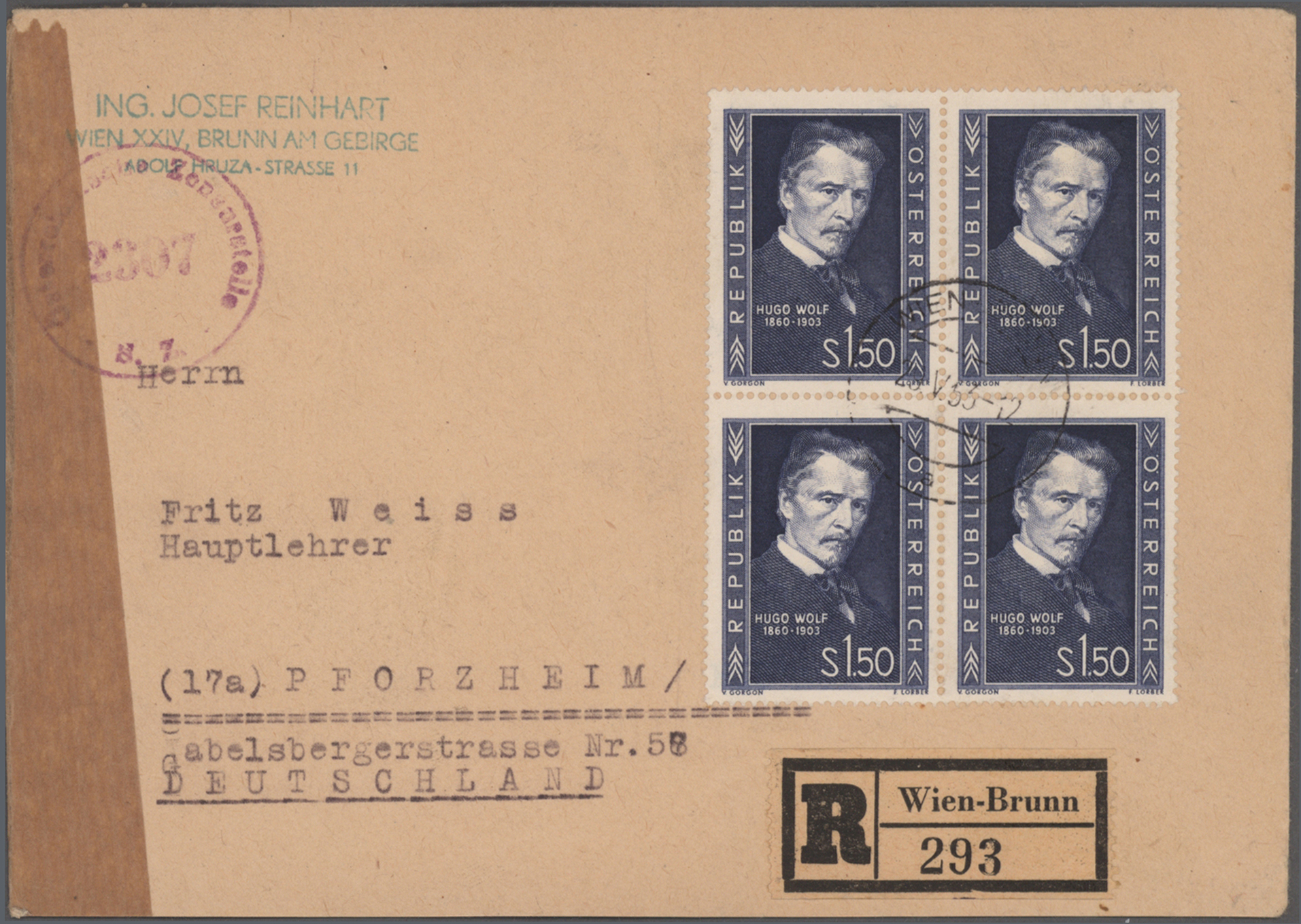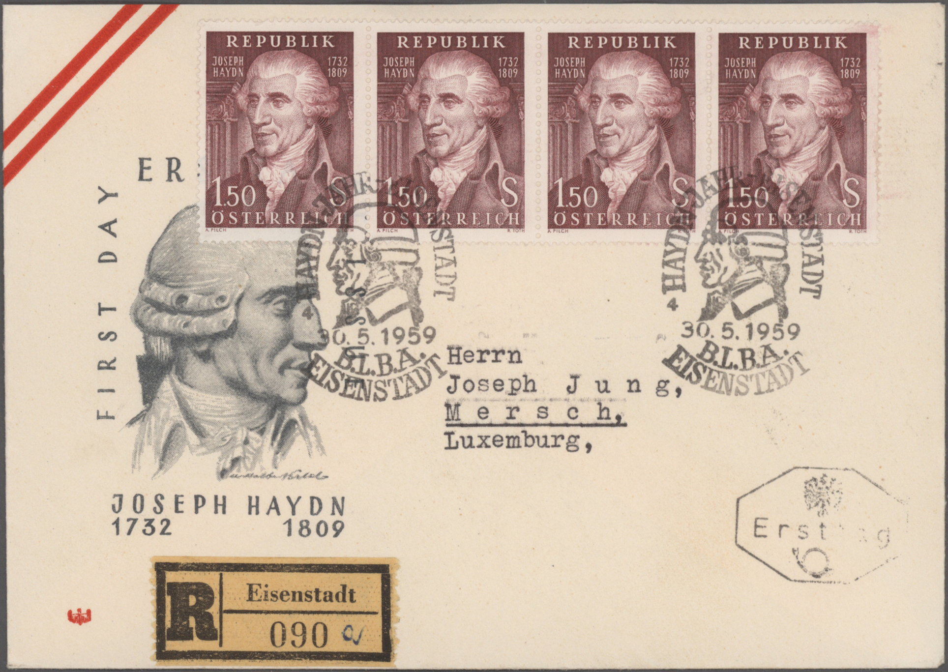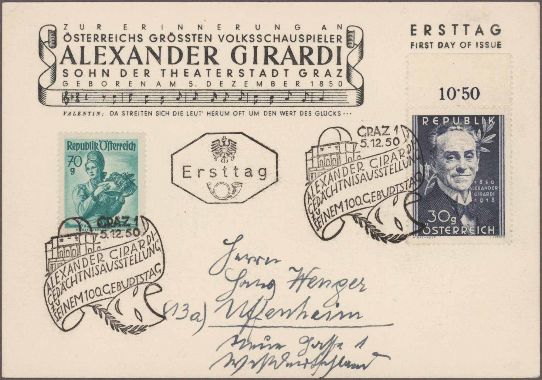 Gustav Mahler, Anton Bruckner, Joseph Haydn, Dirigenten Wilhelm Furtwängler und Herbert von Karajan, usw., mit guter Vielfalt an entsprechenden Frankaturen, Sonder- und Werbestempeln, (Privat-)Ganzsachen, besseren Belegen wie Ungarn Block 1 und