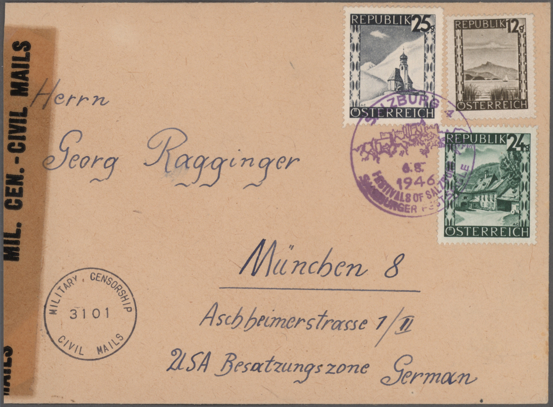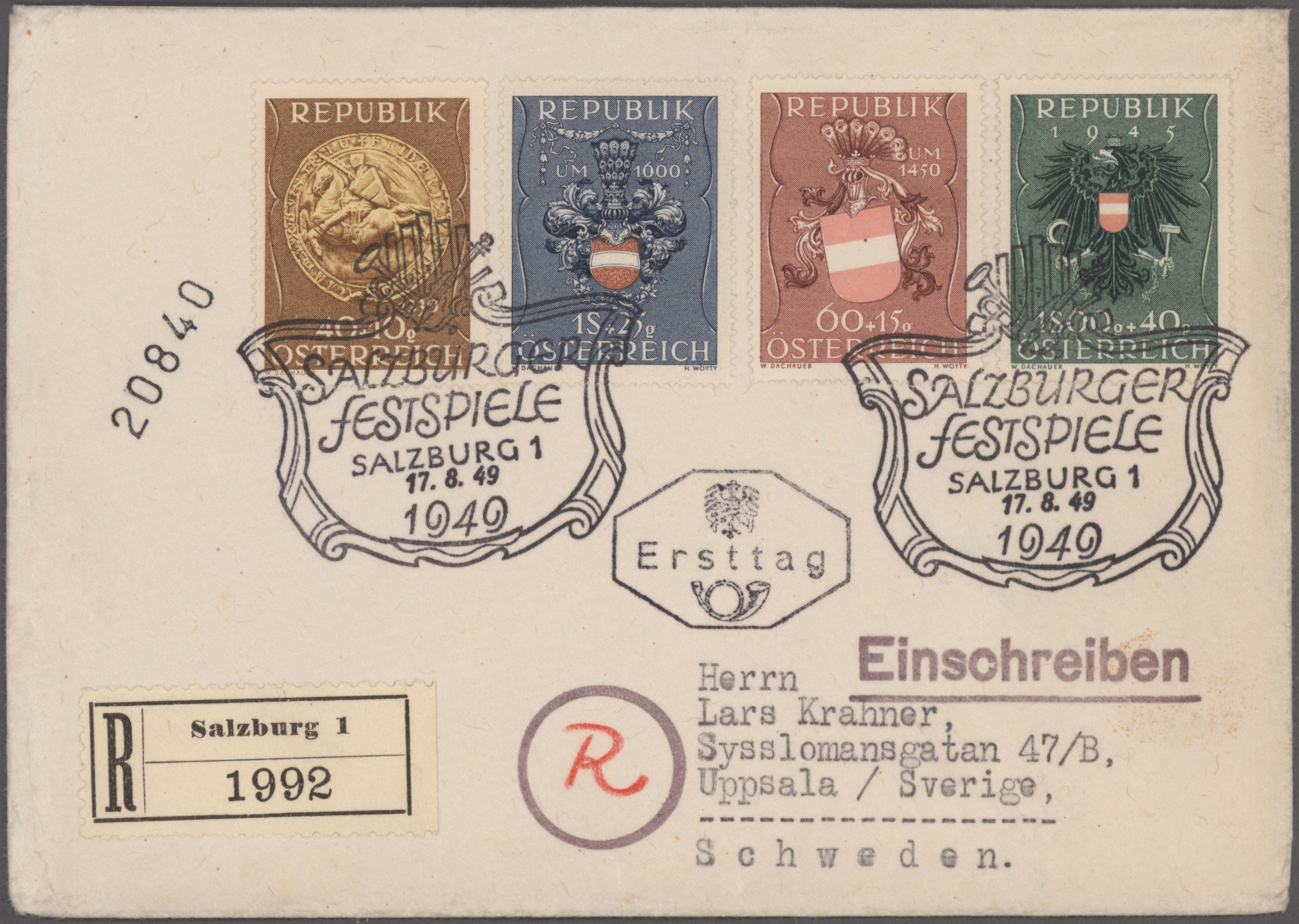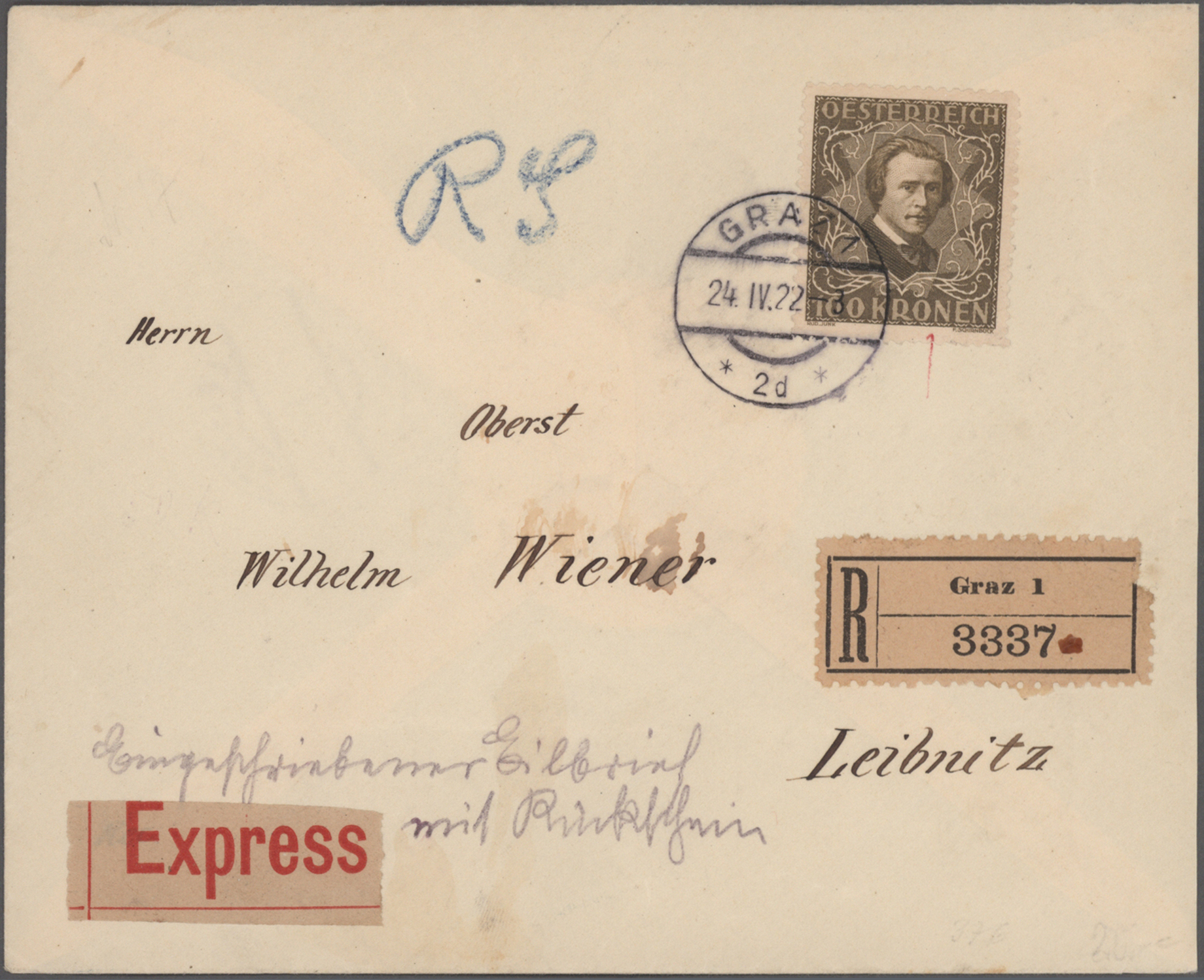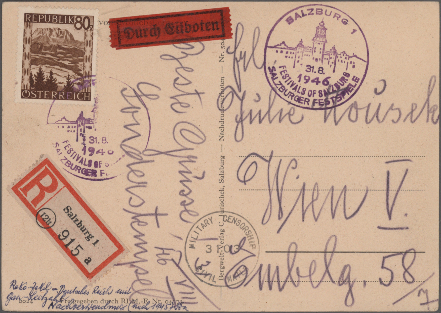 etlichen Freistemplern, R-Brief des Organisationskomitees mit rs. Absendereindruck, usw.