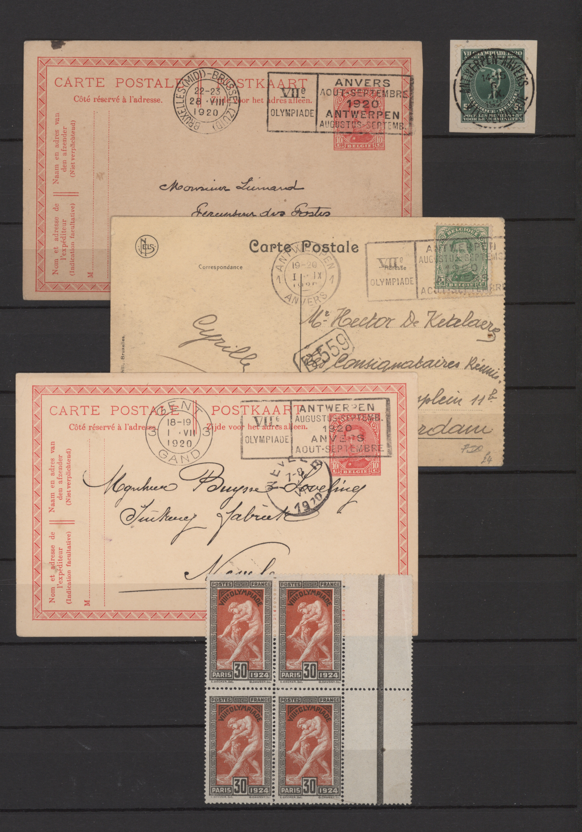 Antwerp machine cancellations, nice part 1936 Berlin incl. se-tenants, France Coubertin stamp imperf. pair and epreuve, etc.
