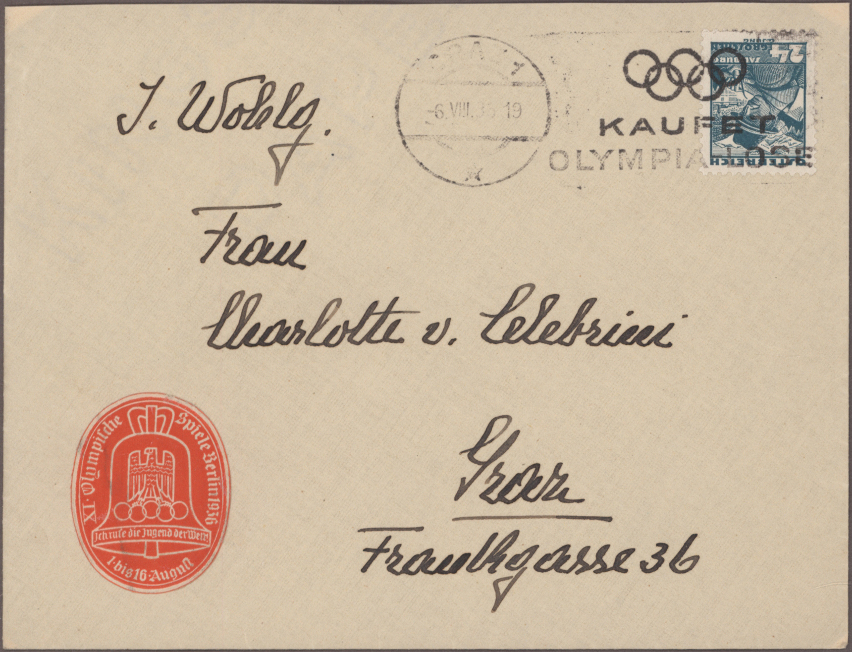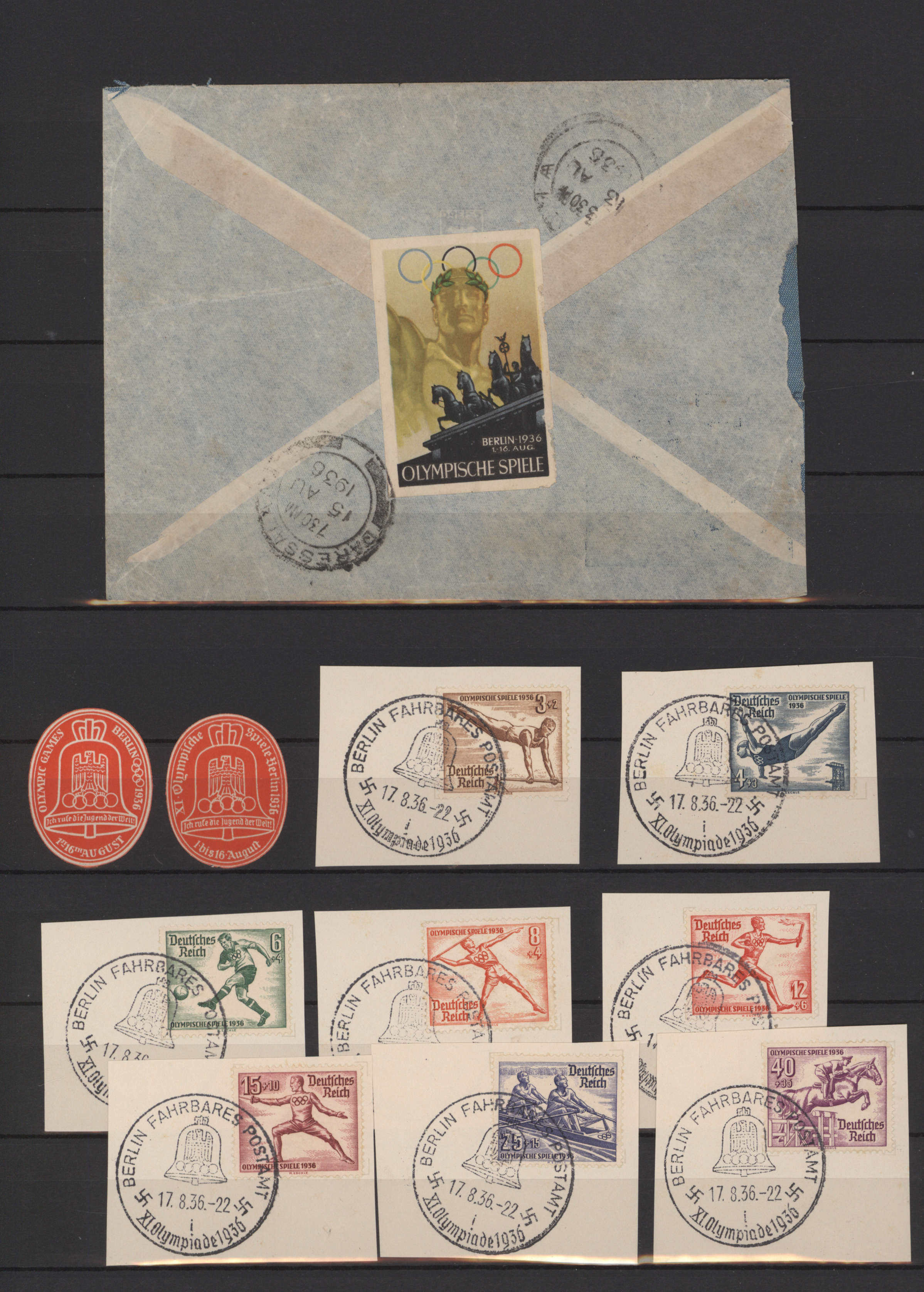 1936, Olympische Spiele Berlin, vielseitige Sammlung von ca. 160 Briefen und Karten mit entsprechenden Frankaturen, Sonder- und Werbestempeln, R-Zetteln,