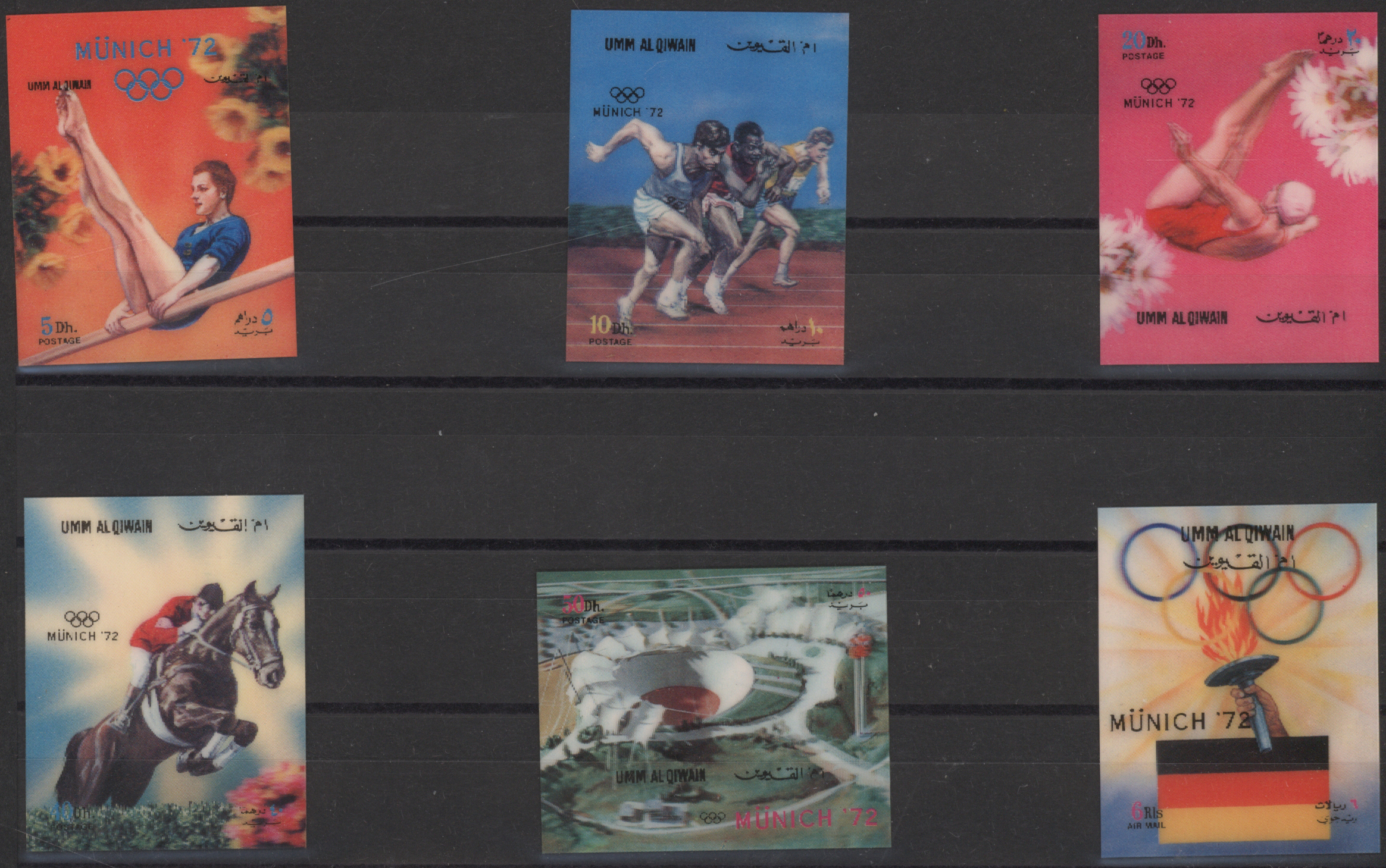 Plastic coated 3D-Stamps with motives of the olympic games 1972 Munich and Sapporo. Comprising 12 values 500 times each about 50 times Block 45