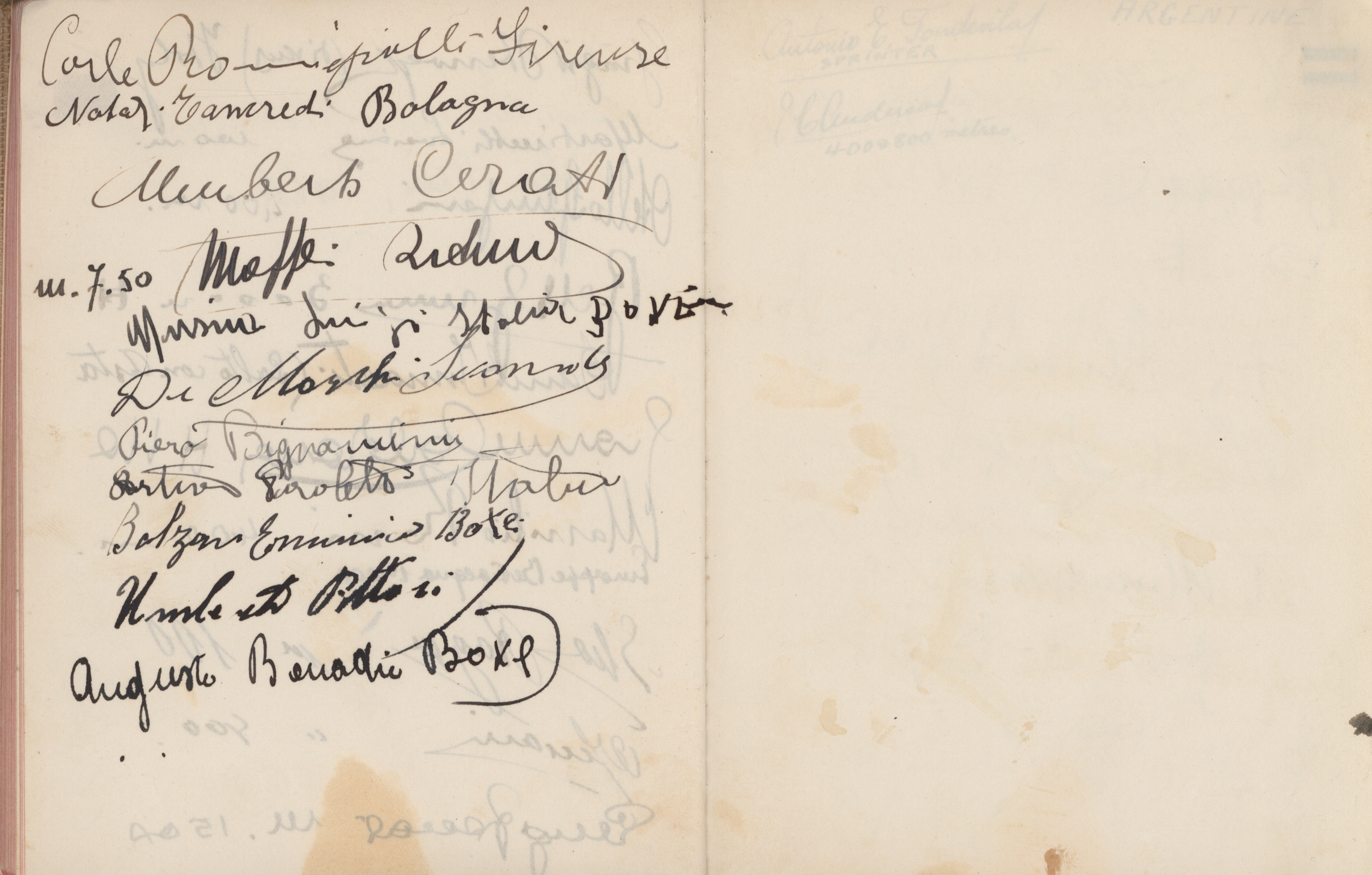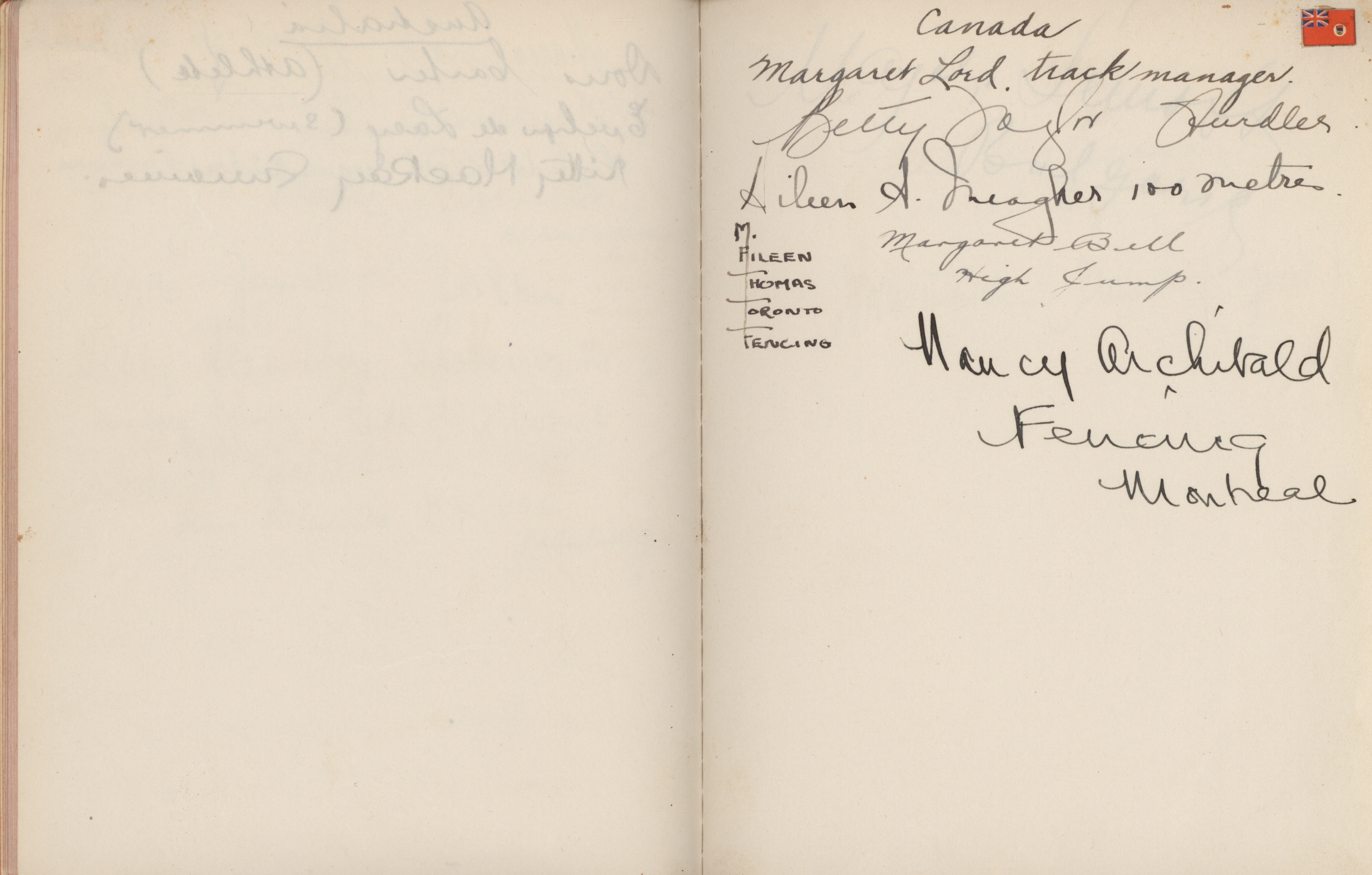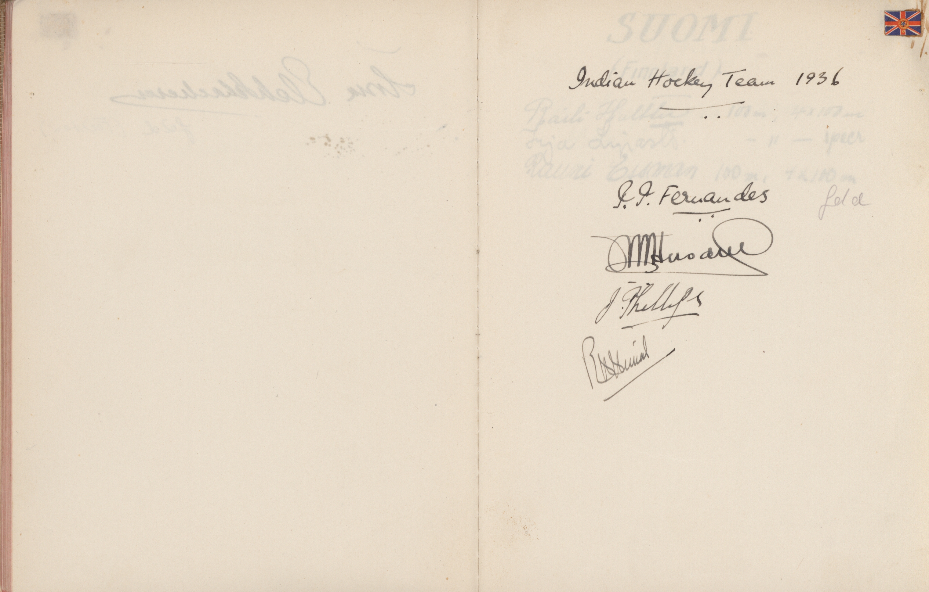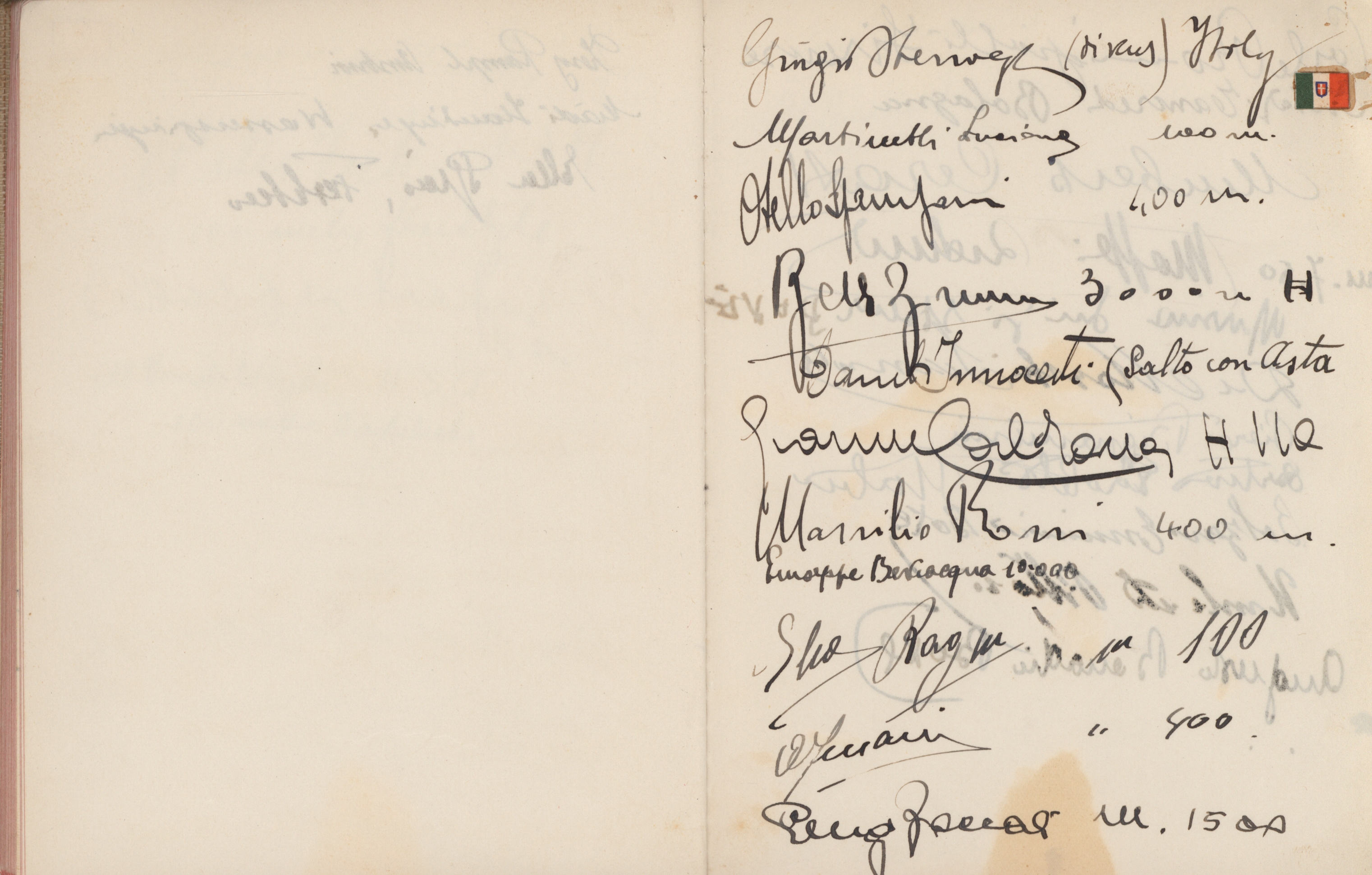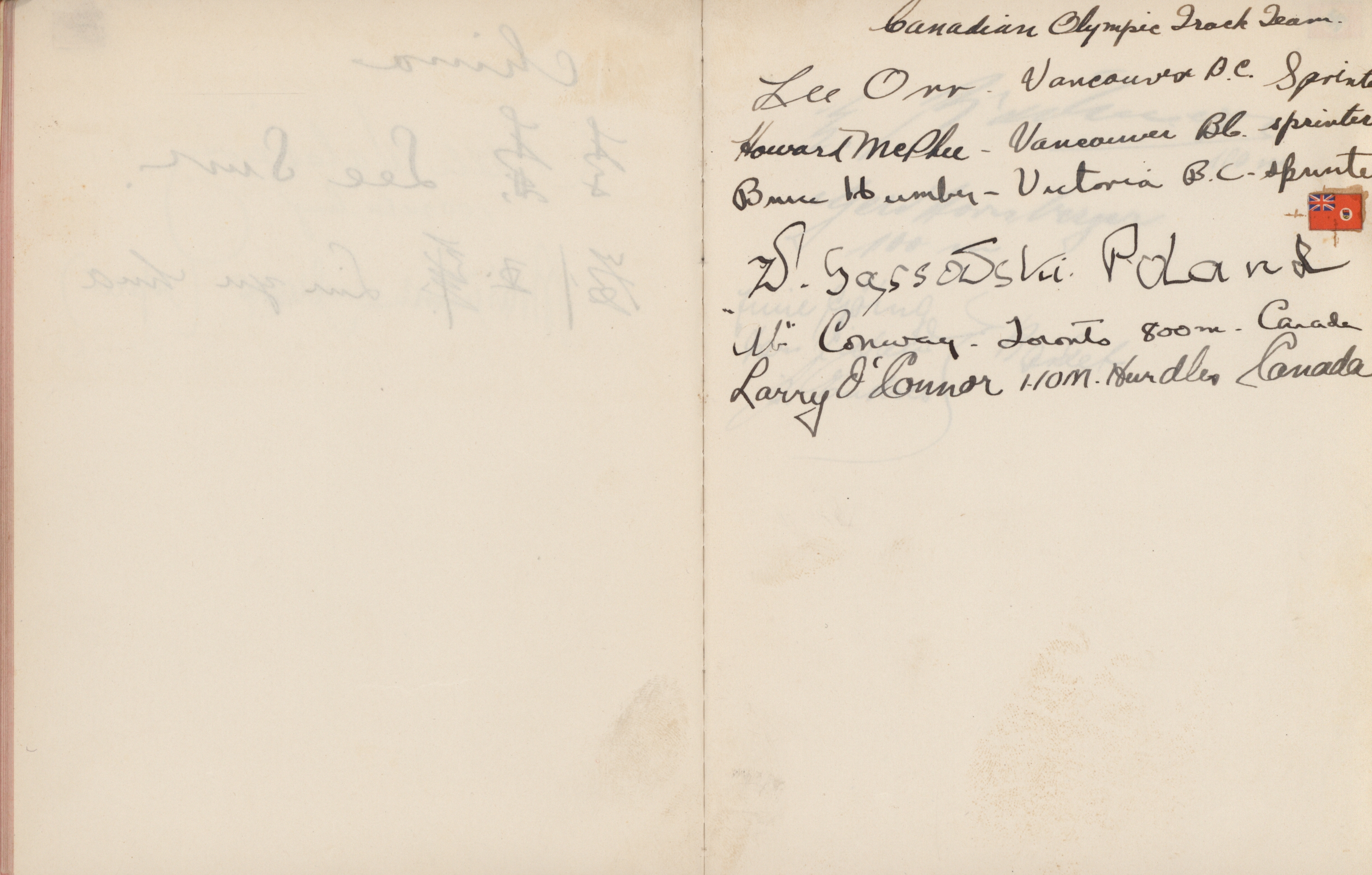 signatures of the athletes and some Nazi celebrities. Among them are the Olympia champions: Jesse Owens, USA (100m, 200m, long jump), Helen Stephens, USA (100m), Gisela Mauermayer, Germany (Discus), Tilly Fleischer, Germany (Javelin), Ilona Elek,