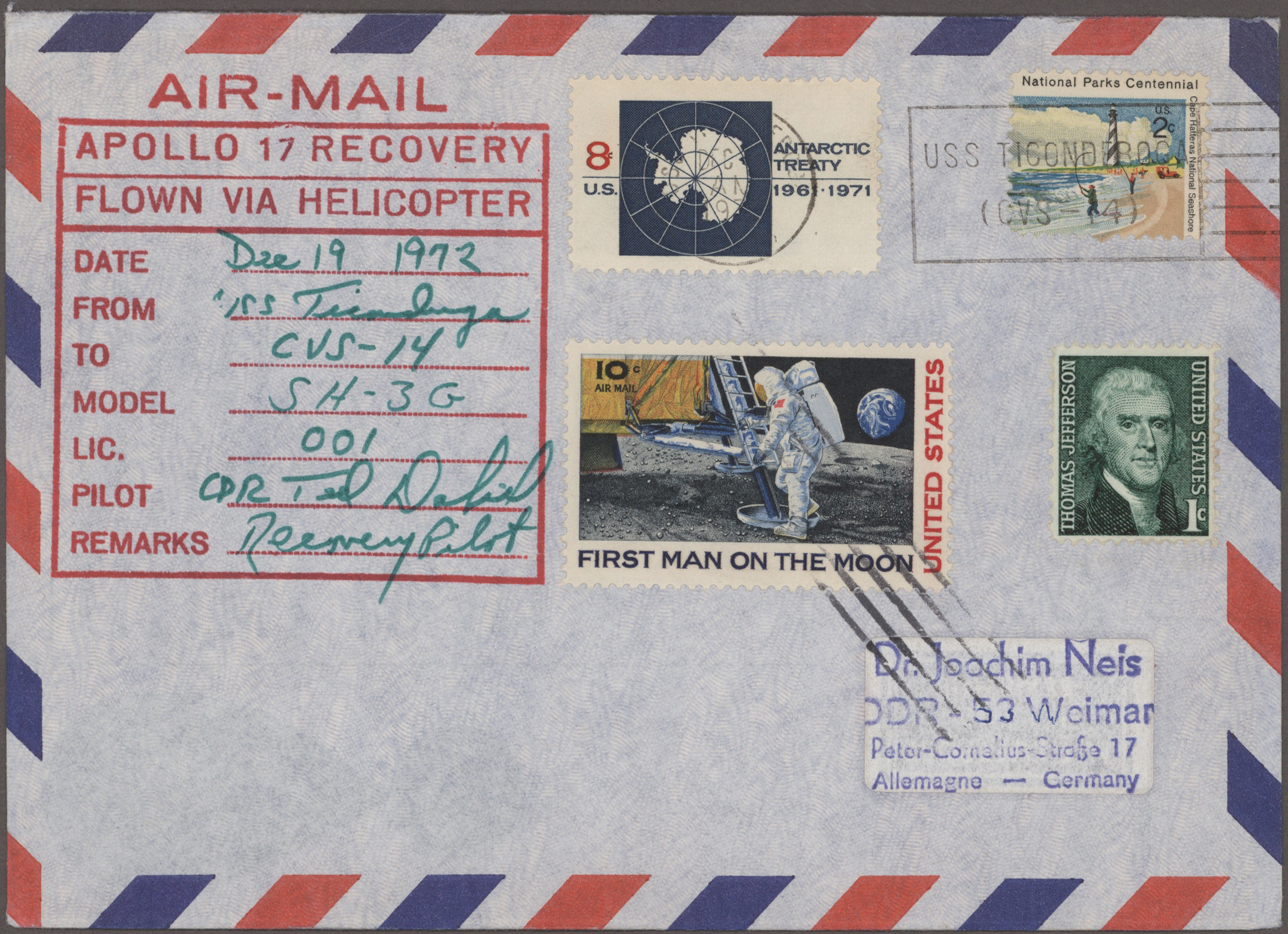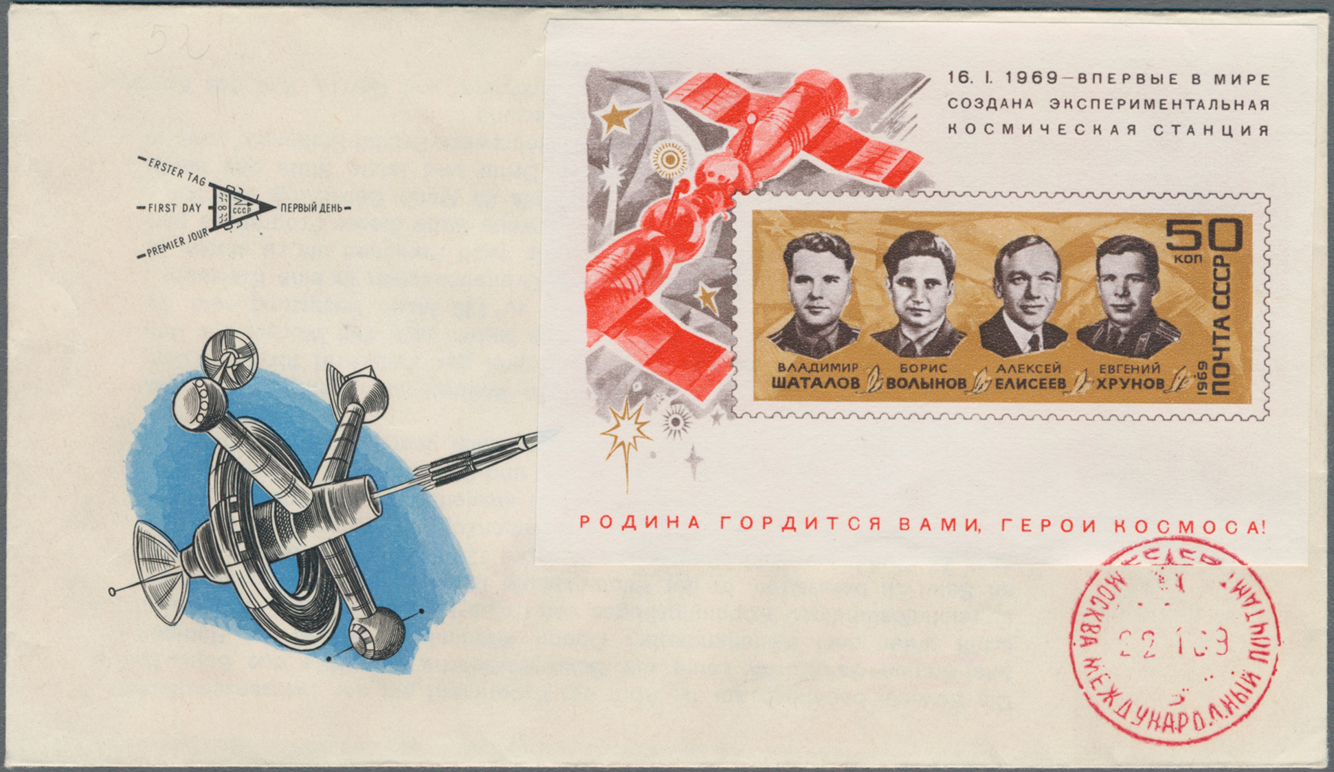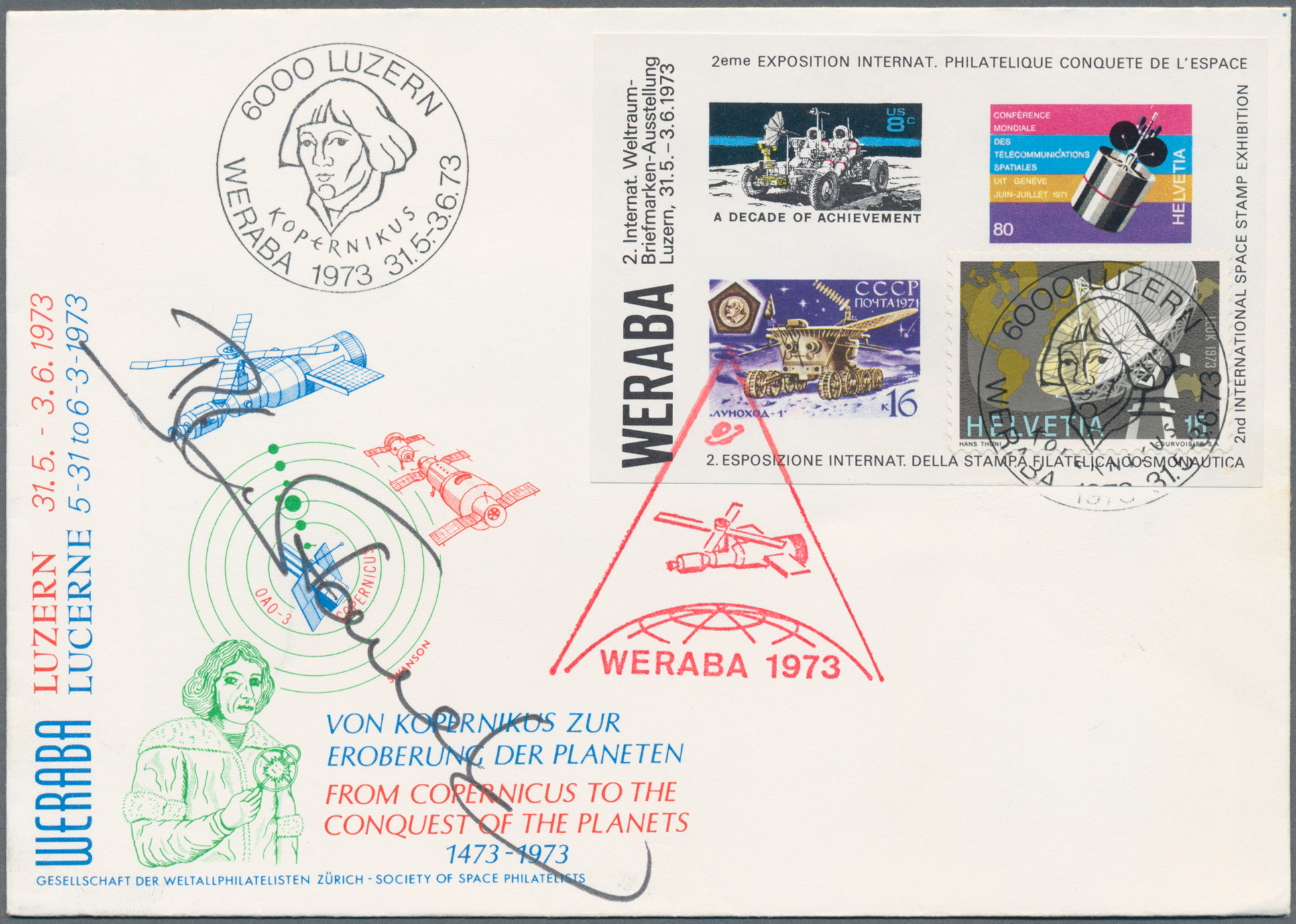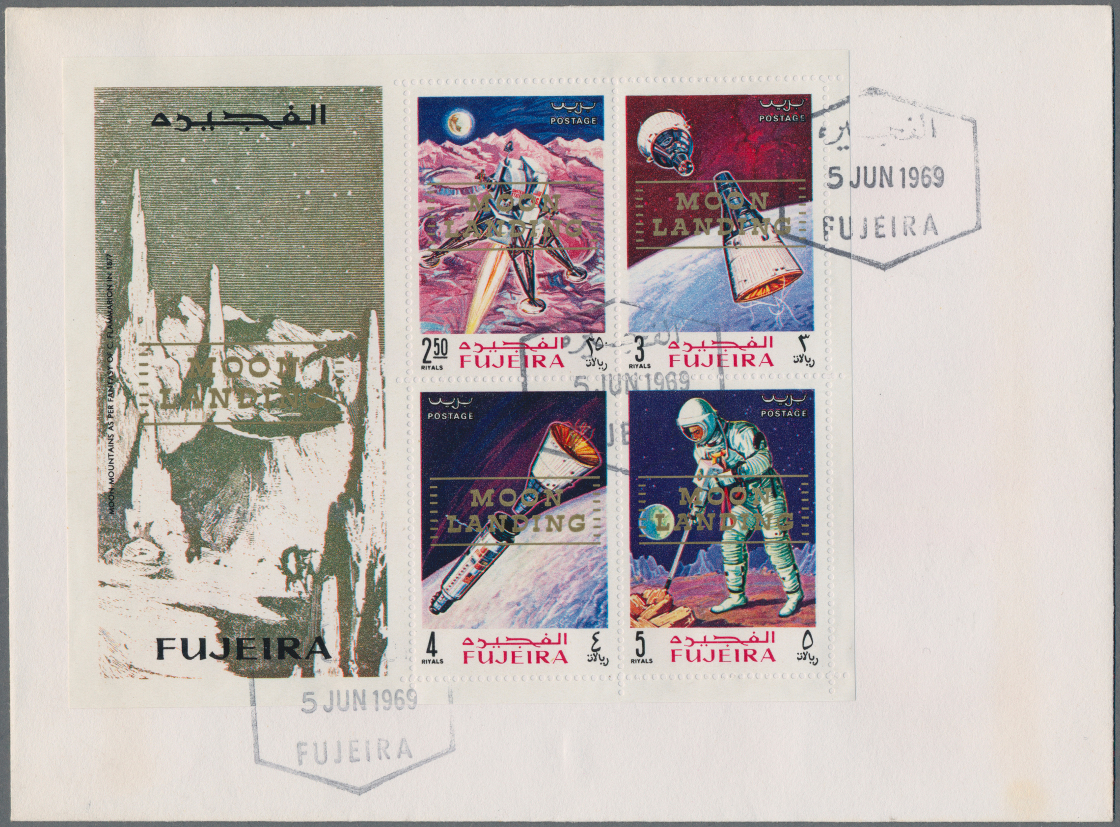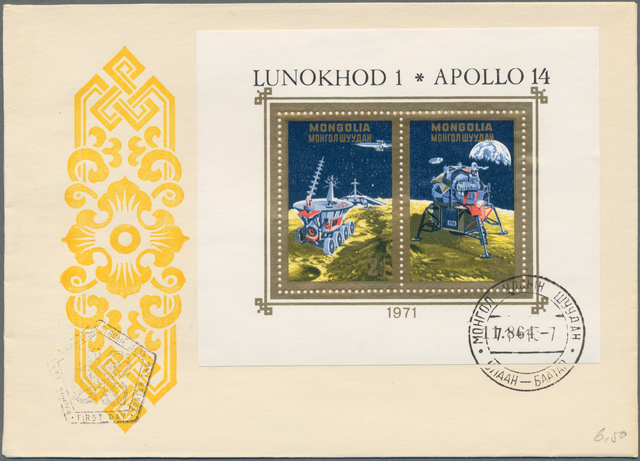 envelope neatly cancelled 1.3.69 (Michel states the 1.3.69 as first day for Bl. 139, for all the others the 10.8.69) // Apollo 16, complete set perf./imperf. (1014/1020, Bl. 301 A/B), set of seven de luxe sheets and souvenir sheet perf./imperf. on