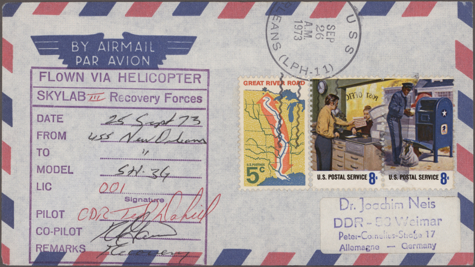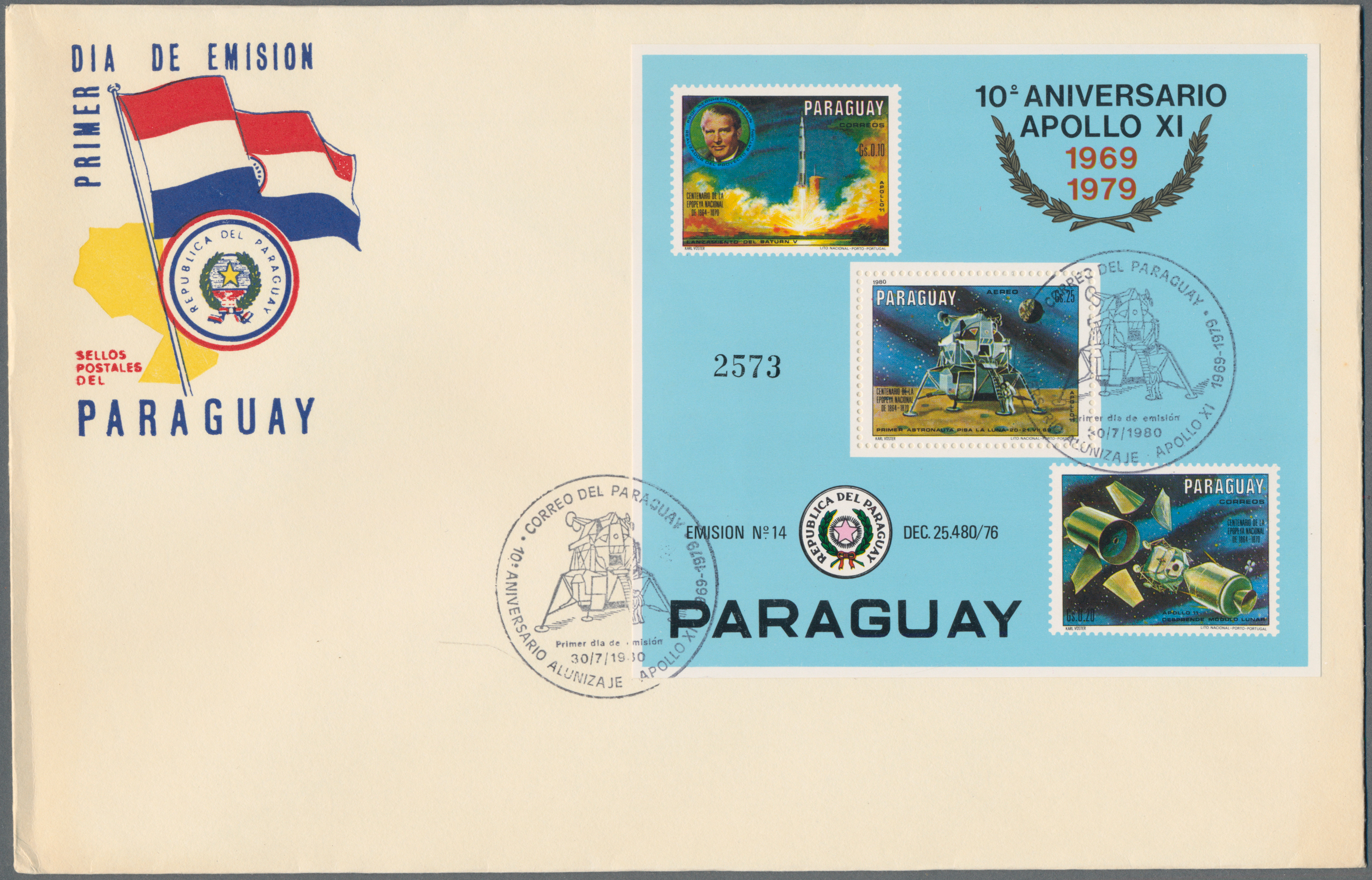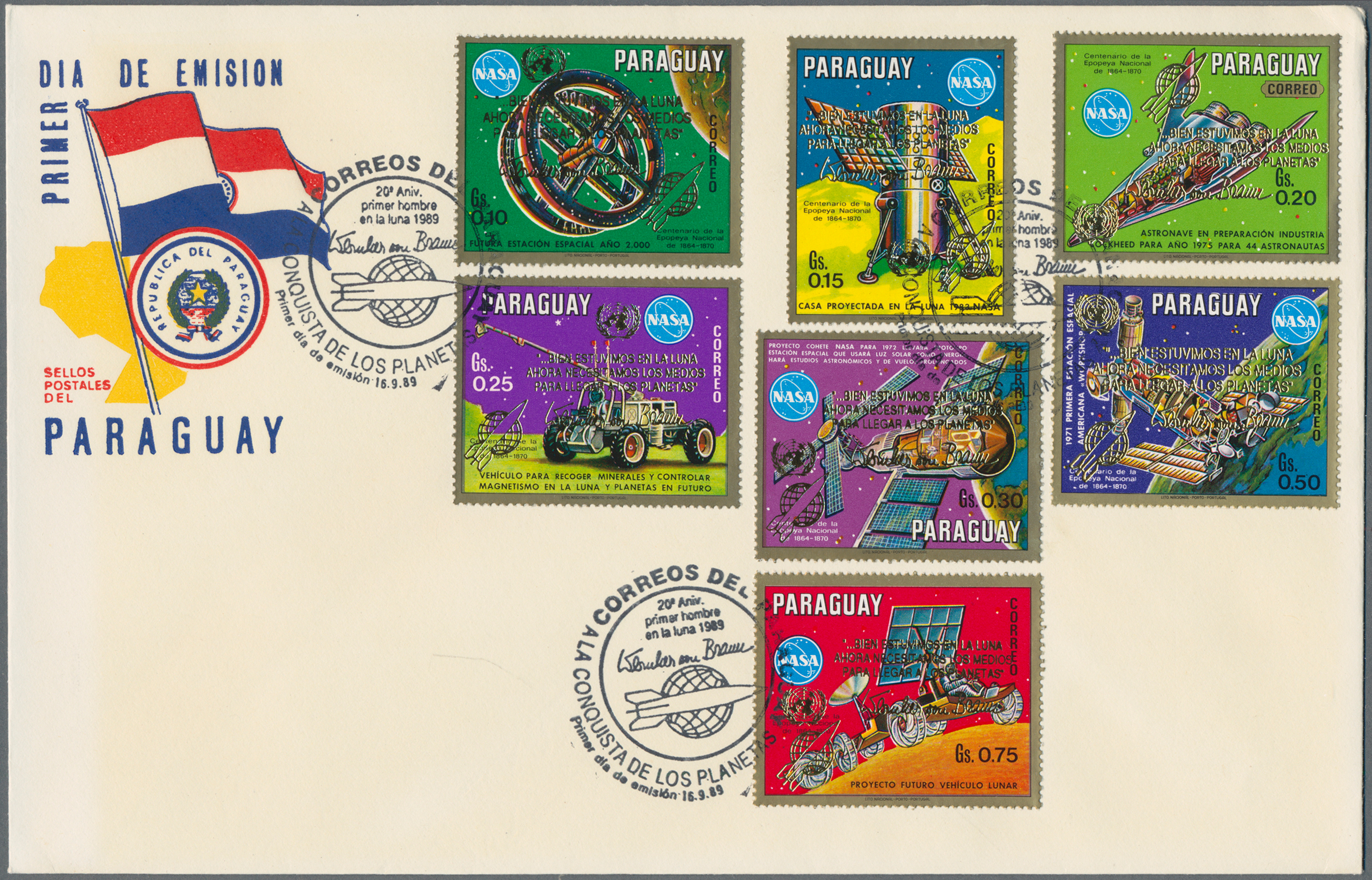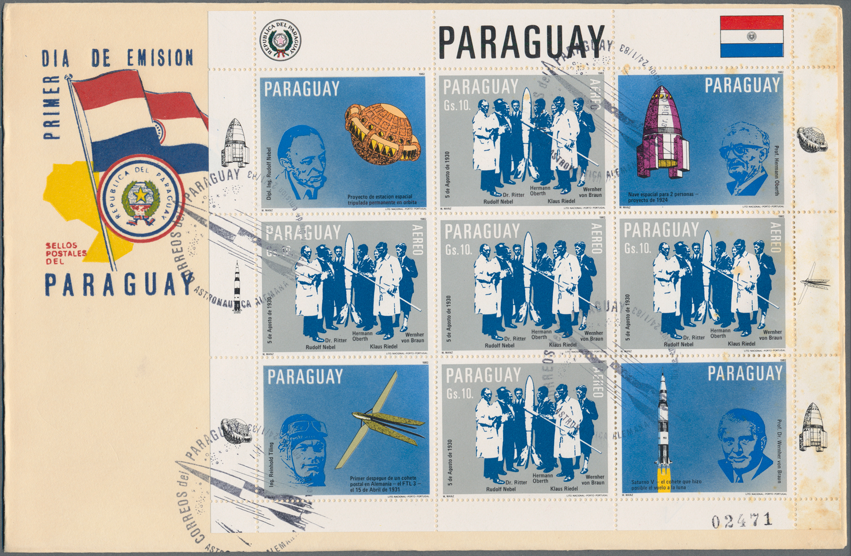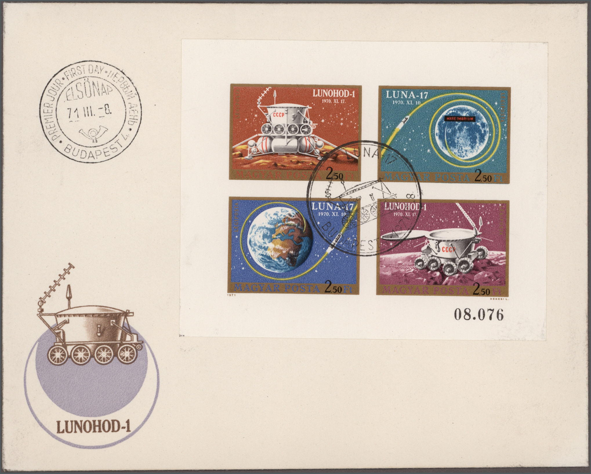 envelope neatly cancelled 1.3.69 (Michel states the 1.3.69 as first day for Bl. 139, for all the others the 10.8.69) // Apollo 16, complete set perf./imperf. (1014/1020, Bl. 301 A/B), set of seven de luxe sheets and souvenir sheet perf./imperf. on