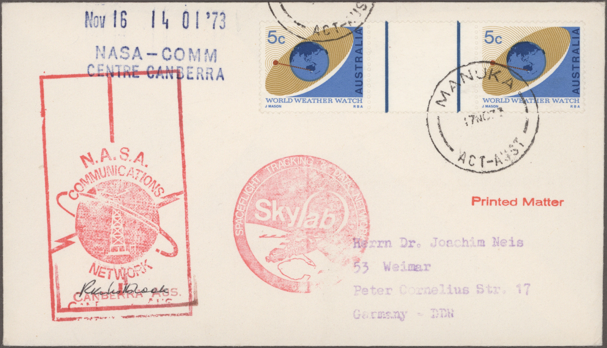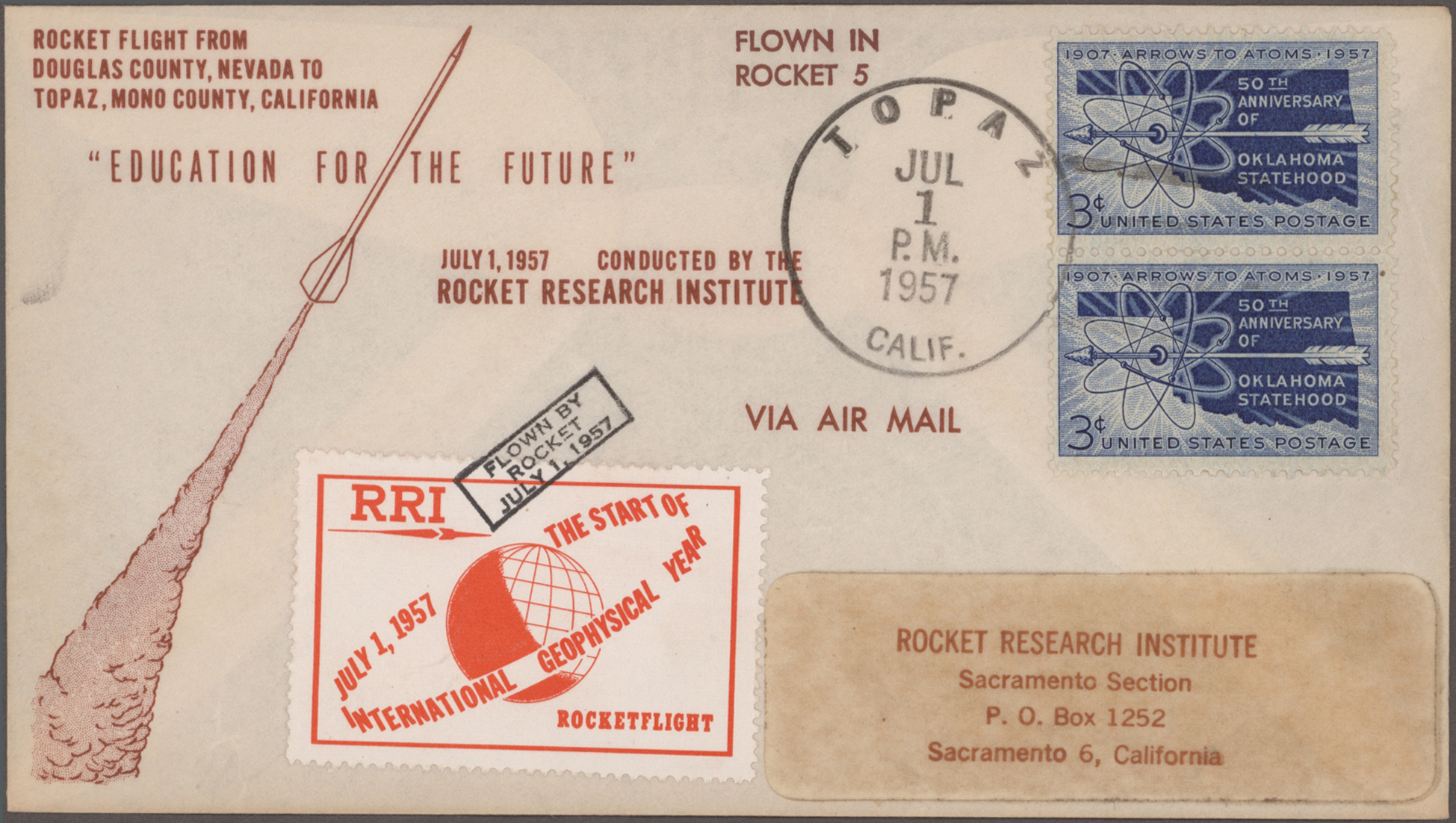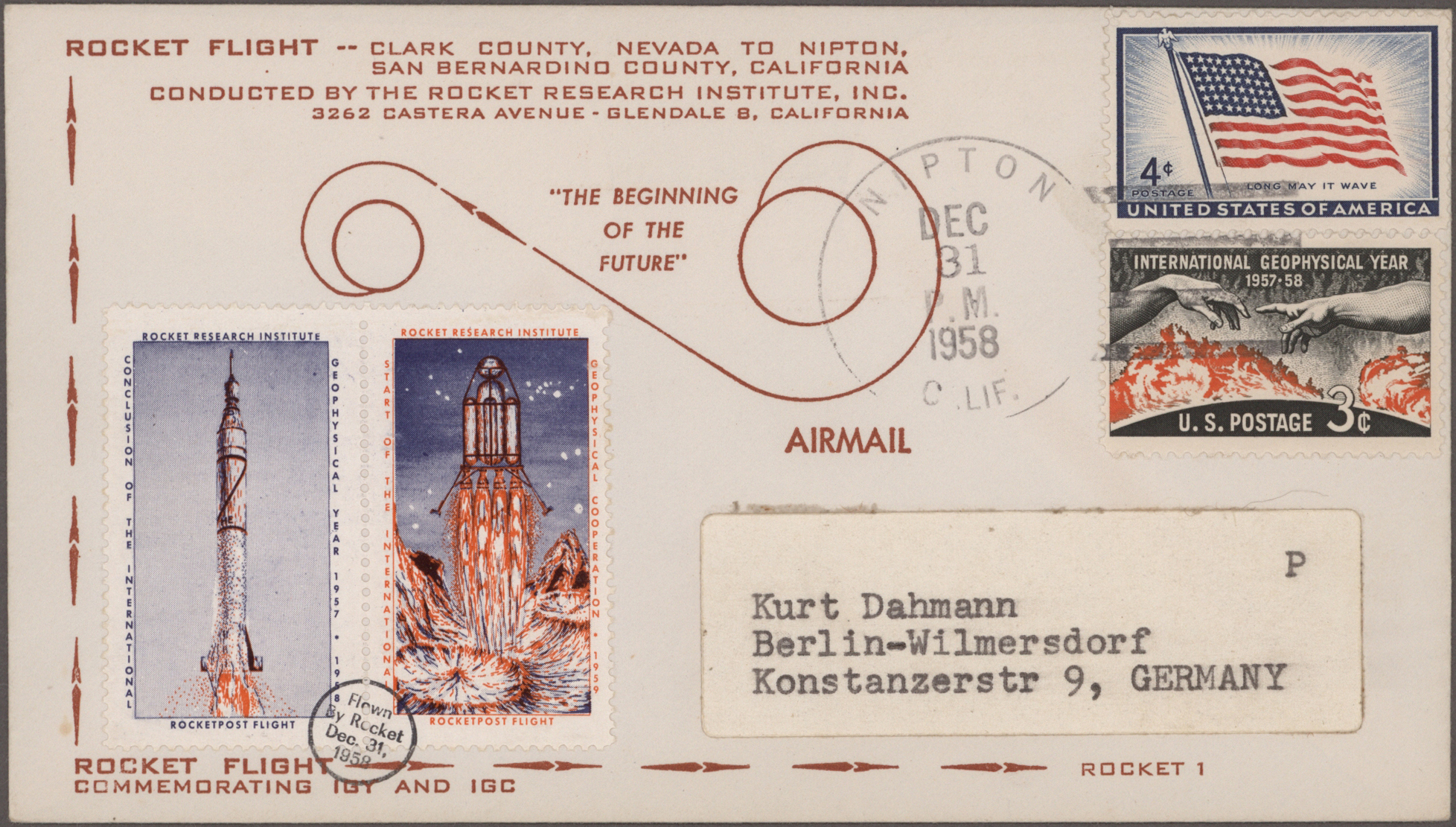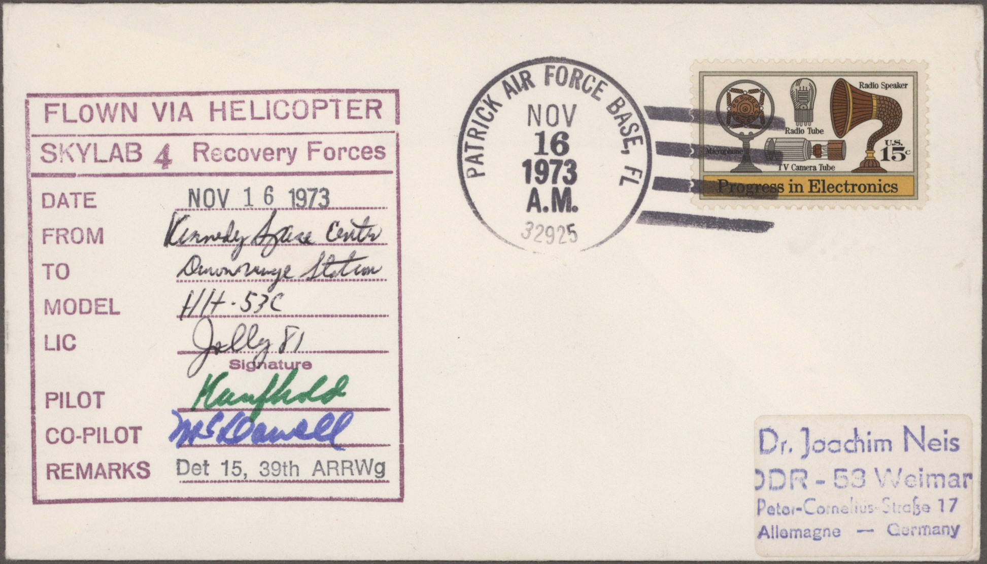 seven airmail f.d.c. 24.8.71 to Germany // U.S. Space Achievements (2637/2652 A/B), complete set of 16 de luxe sheets perf./imperf. each (=32 de luxe sheets) on eight f.d.c. 31 MAR 1973. These items are very rarely seen used on cover!
