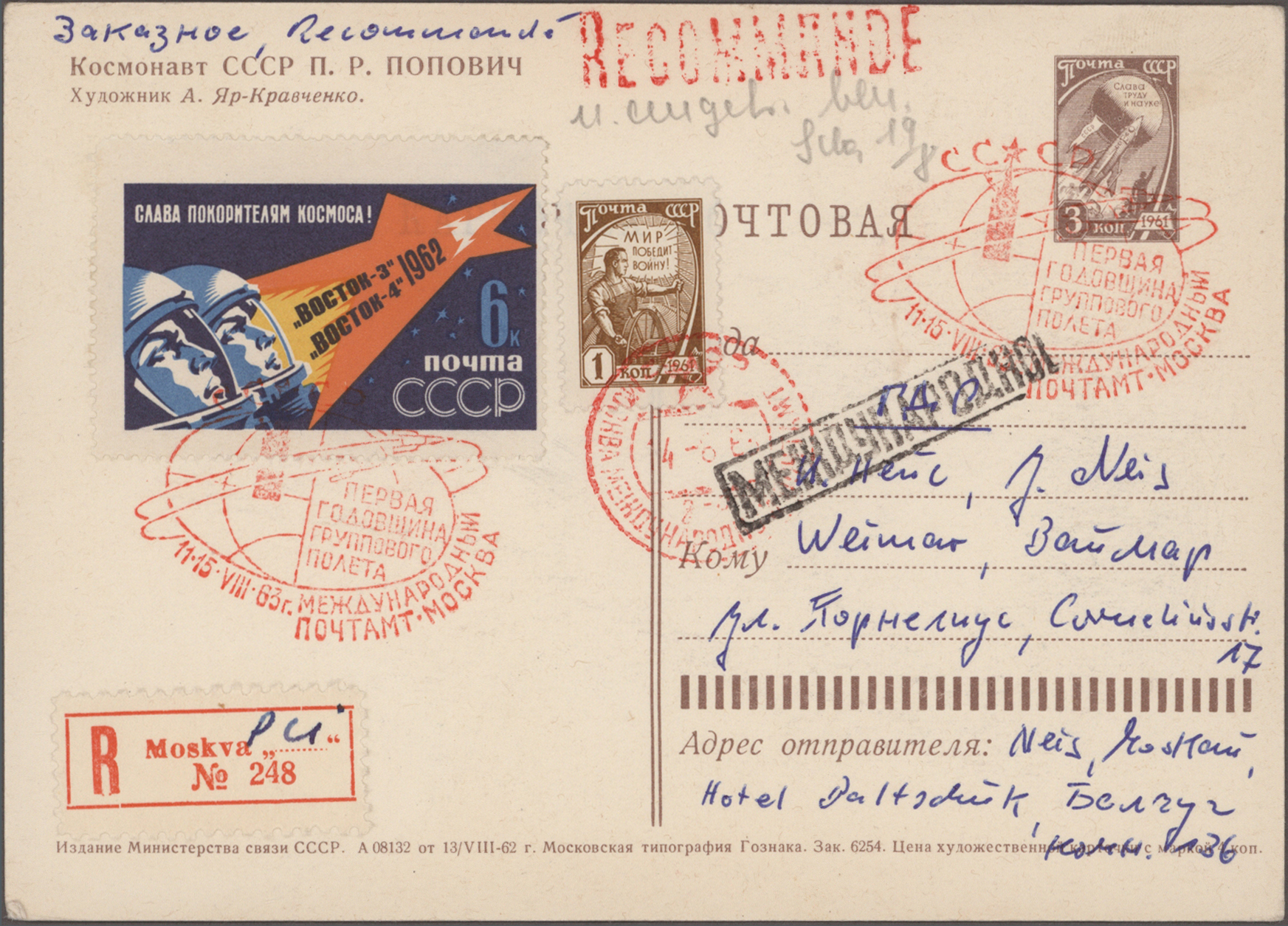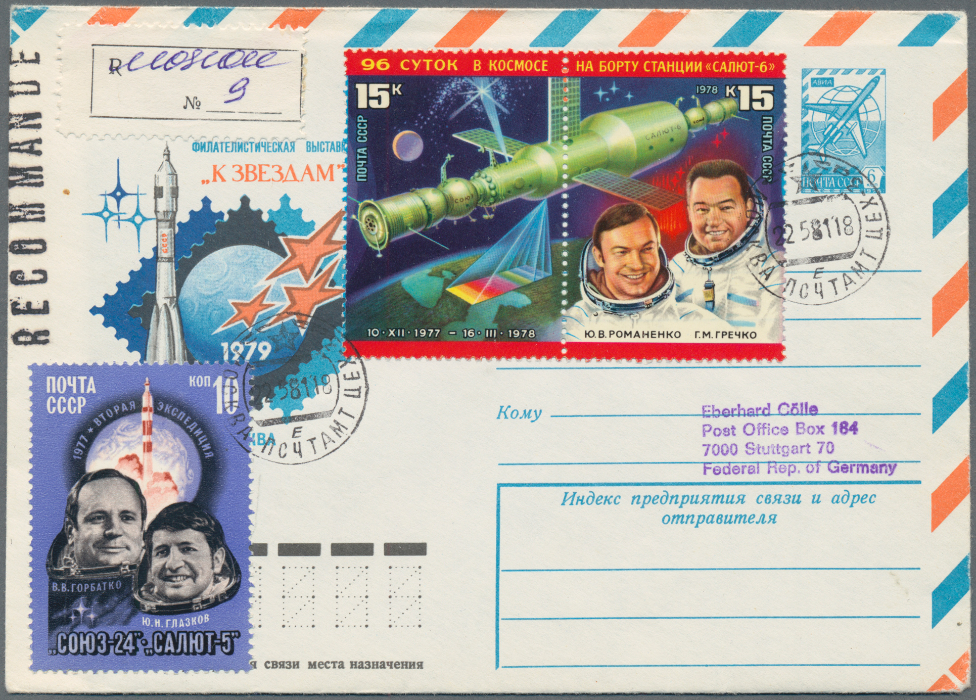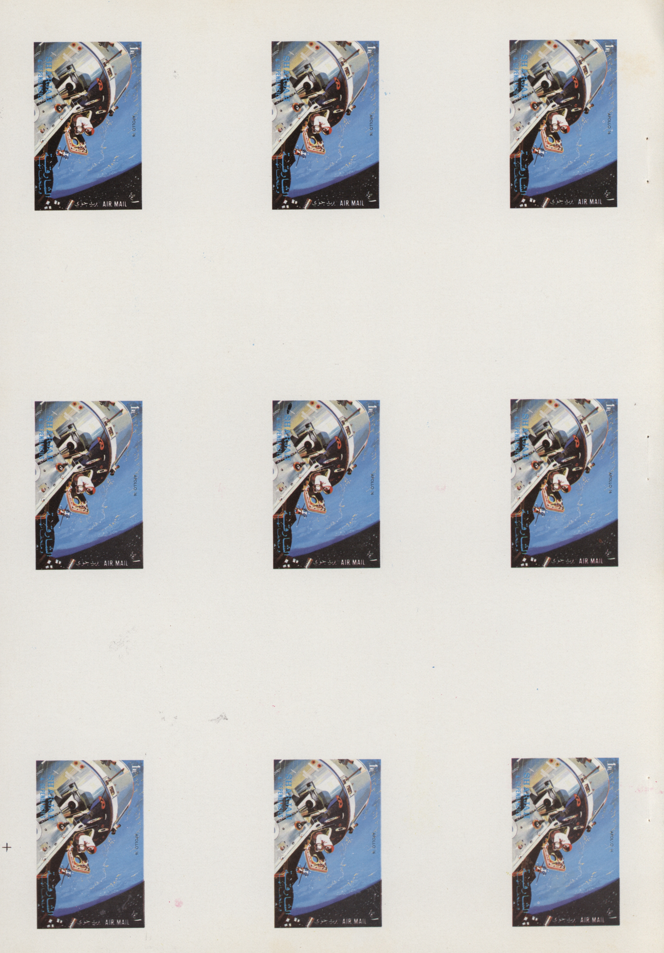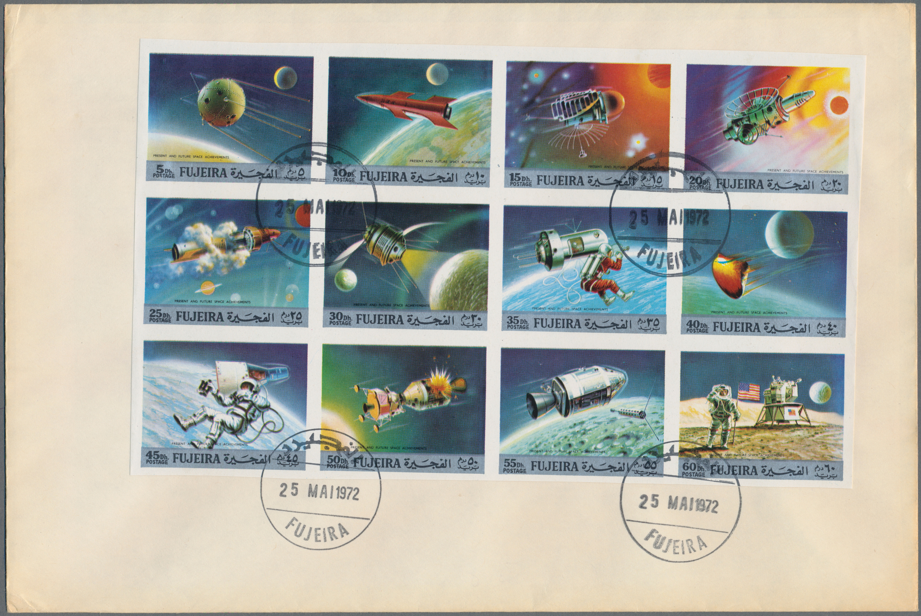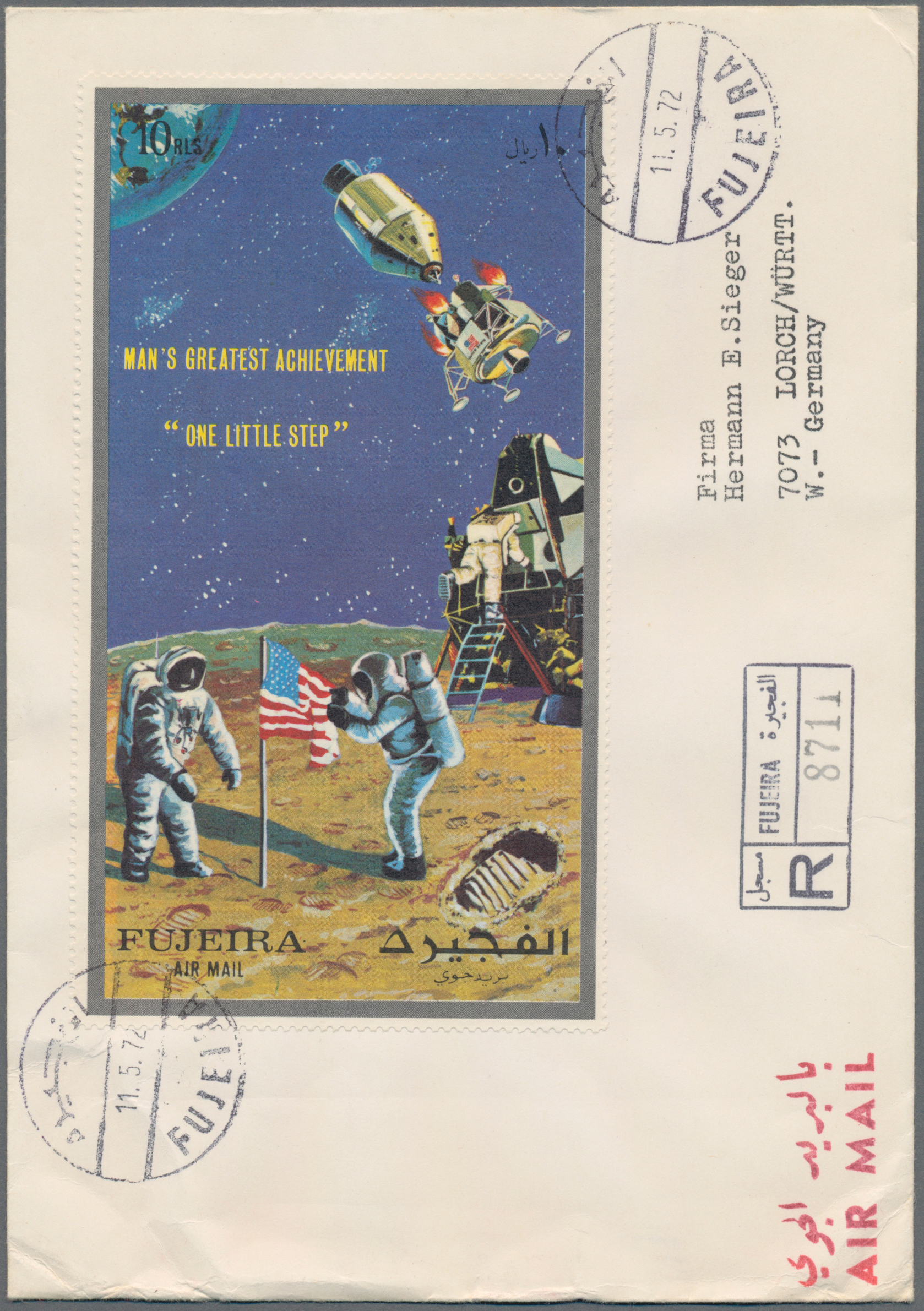 1969/1973, Ajman, group of 19 covers with "SPACE" frankings: Apollo 9+10/Gagarin (Bl. 139/142), four souvenir sheets with overprint, each on unaddressed