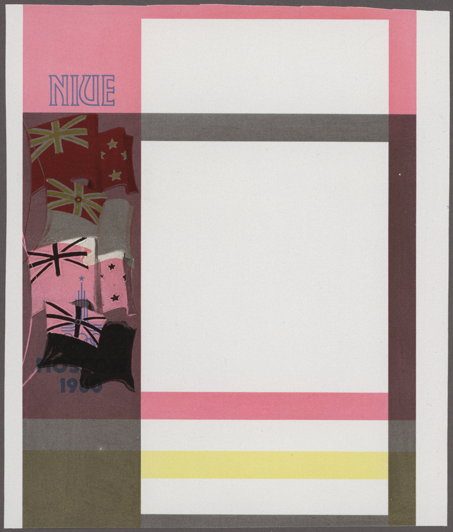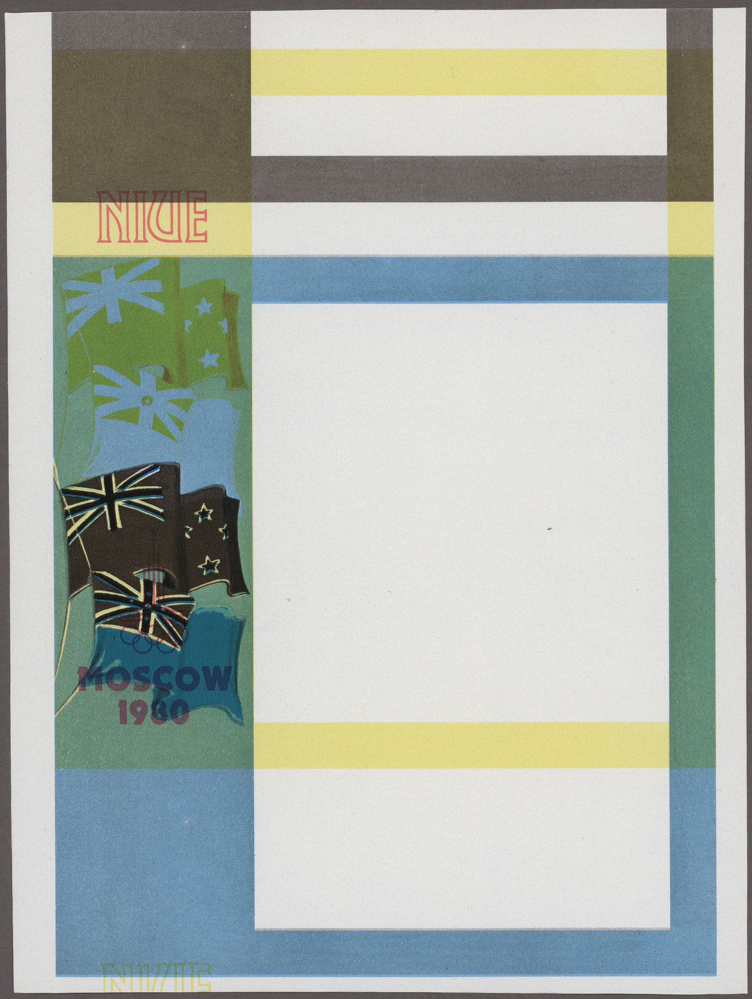 1980, Niue, Olympic Games Moscow, souvenir sheet, 100 combined colour proof sheets (frame and stamps separately), in addition 53 colour proofs of frame