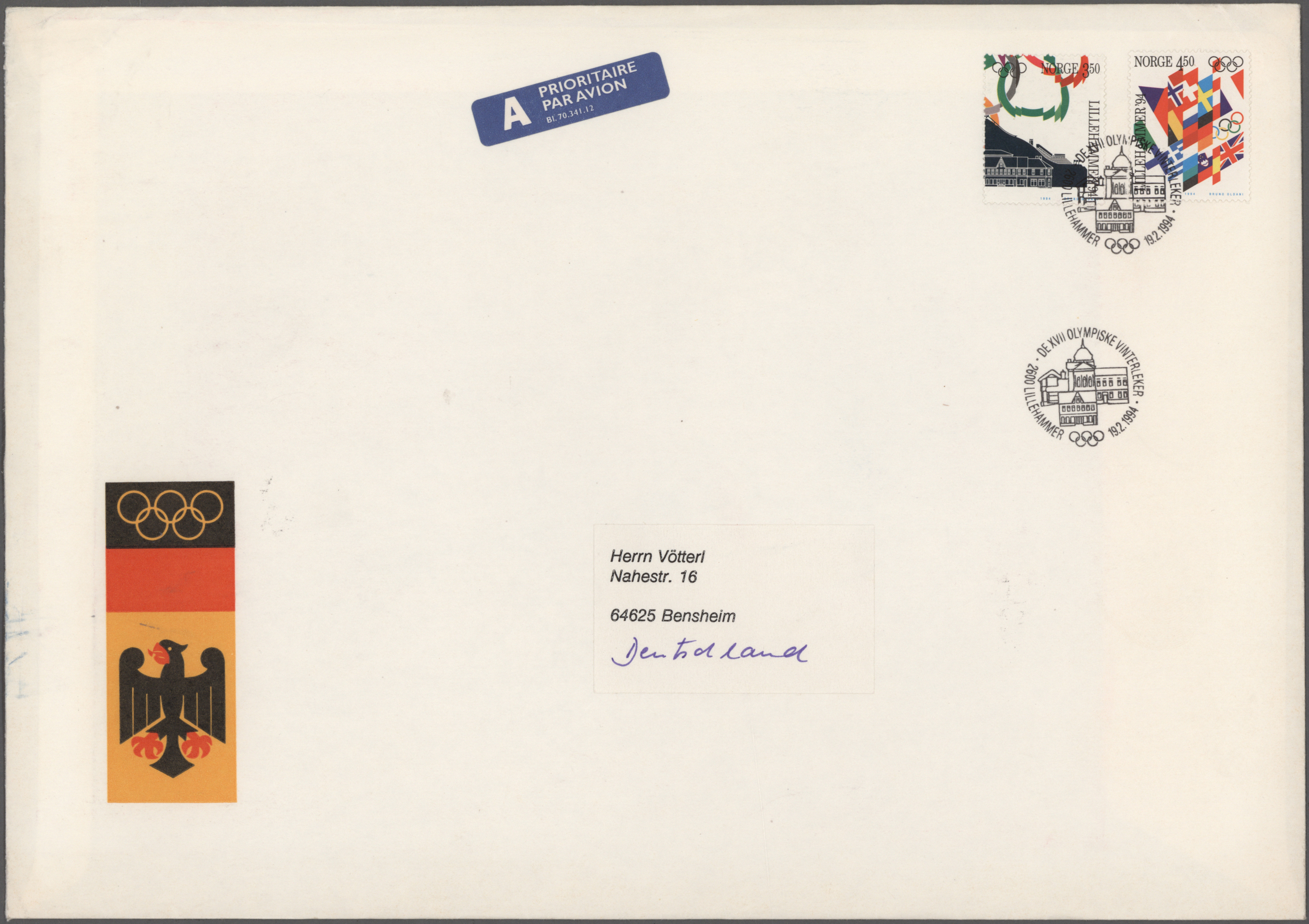 Contains also some interesting additional covers, e.g. Zeppelin mail Olympiafahrt Berlin 1936. Completely arranged on self-designed album sheets in 3 "Lighthouse" binders. Untouched since about 1963, in very good condition! ÷ OLYMPISCHE SPIELE der