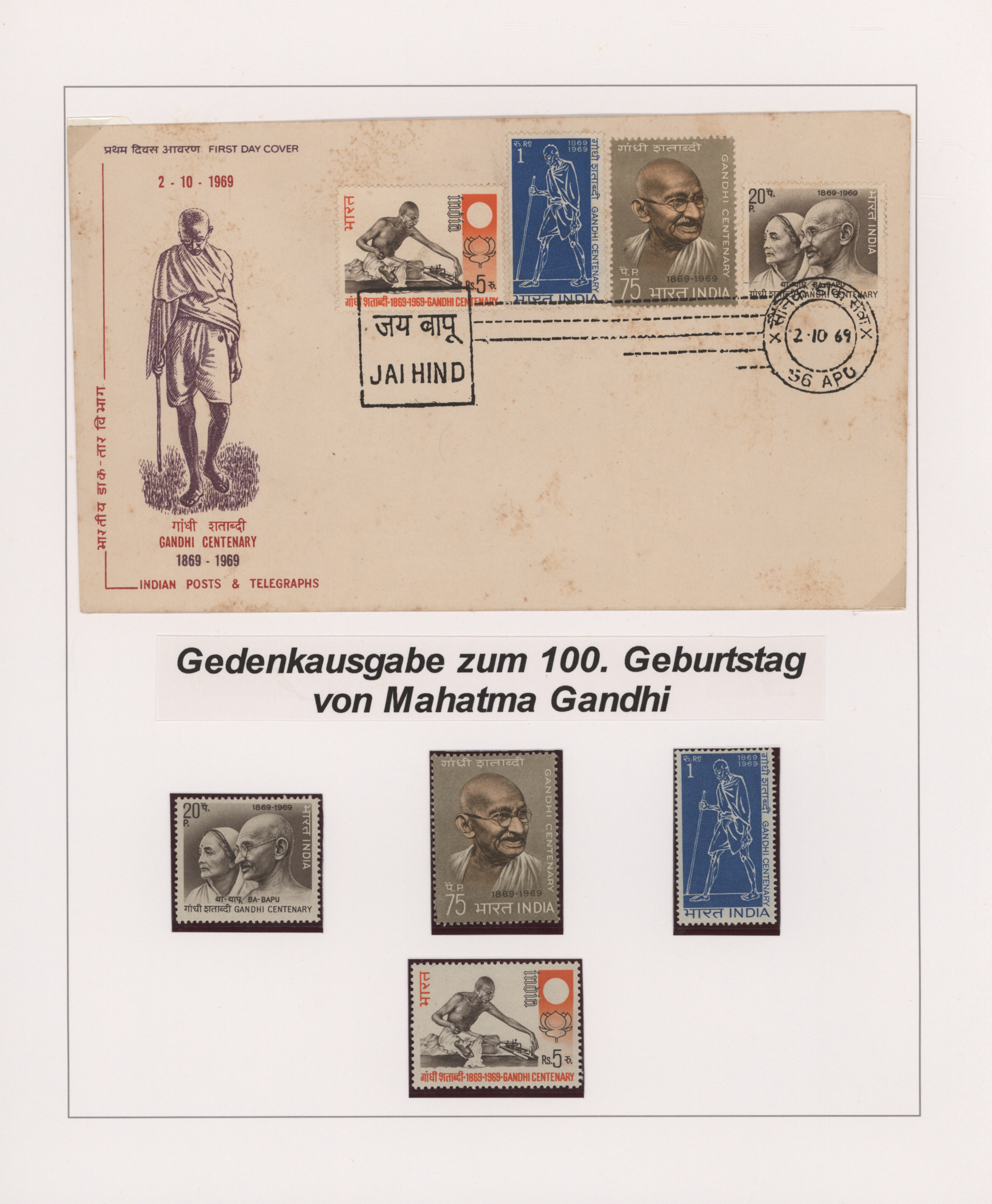 1950's-modern - MAHATMA GANDHI: Specialized memorial collection with mint and used stamps, covers and postcards from India and various countires