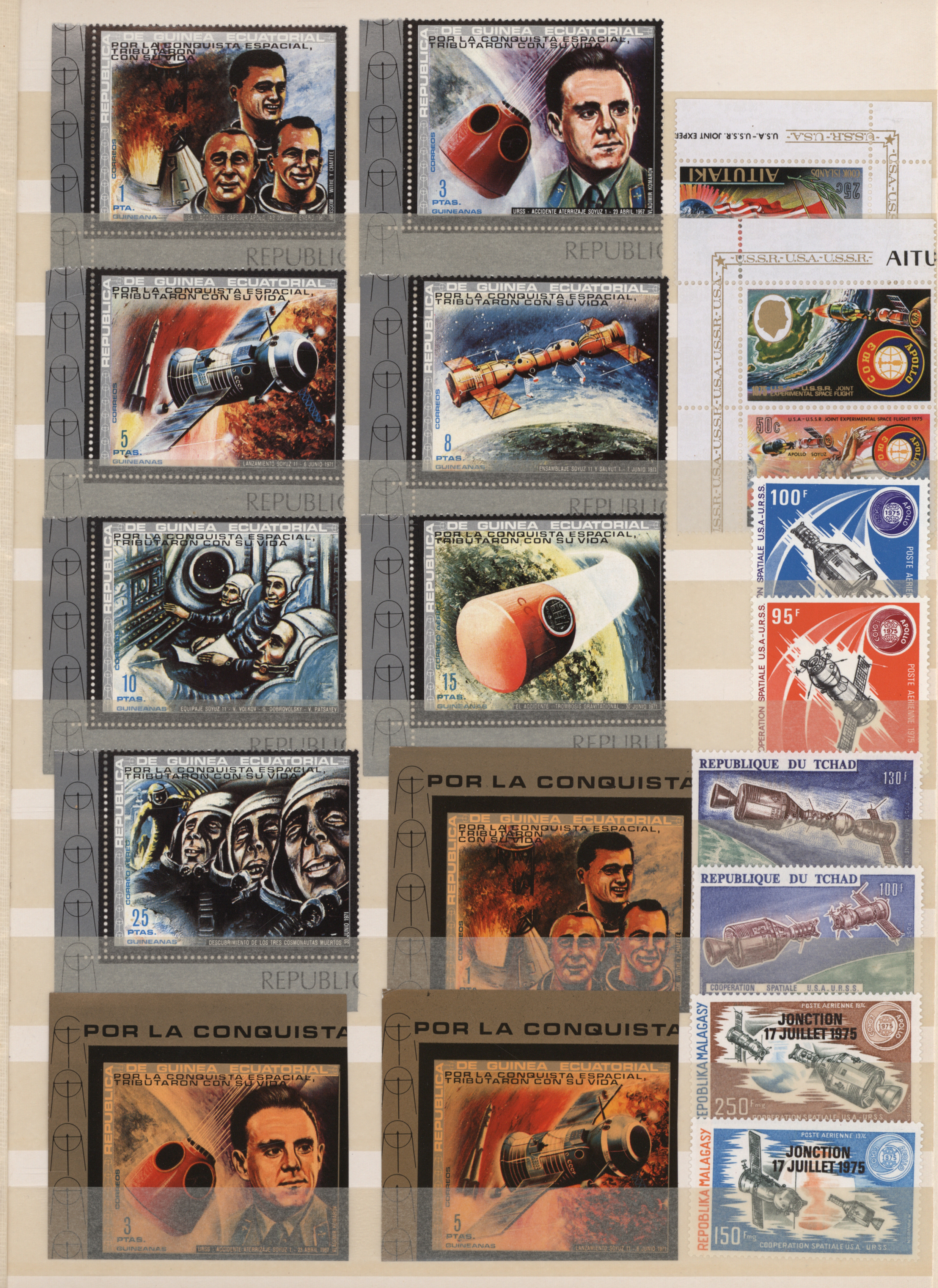 covers), bearing perf./imperf. stamps, de luxe sheets and souvenir sheets, with reference to American Astronauts, Pioneer, Skylab, Apollo 14 and 17. Detailed inventory see www.