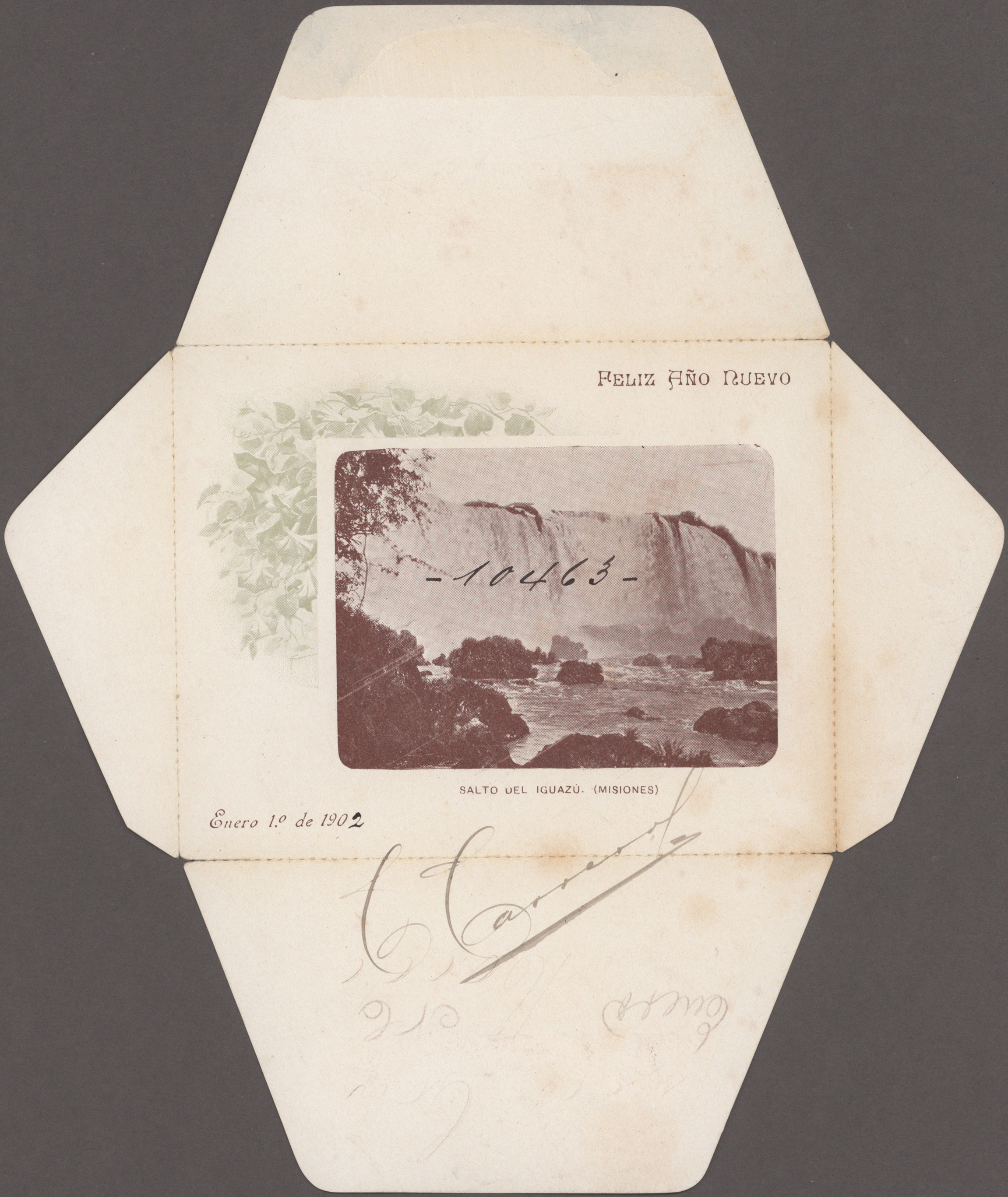 IGUAZÚ-Wasserfälle in Argentinien: Drei verschiedene Ansichtskarten sowie ein Ganzsachenumschlag 5c. (gebraucht) mit Abbildung innen.