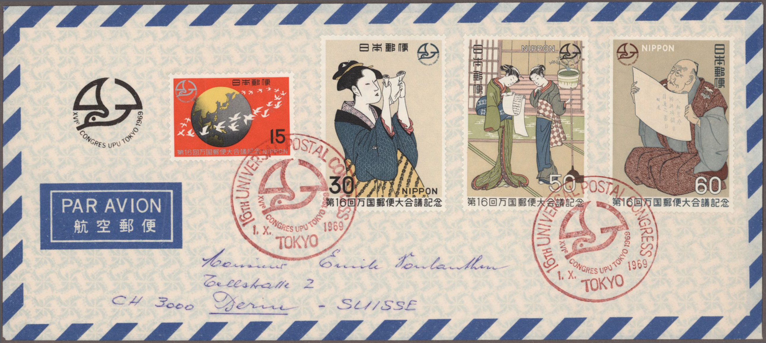 1969, 16th UPU Congress Tokyo, balance of issued stamps and commemorative covers/cards (more than 100), plus some presentation