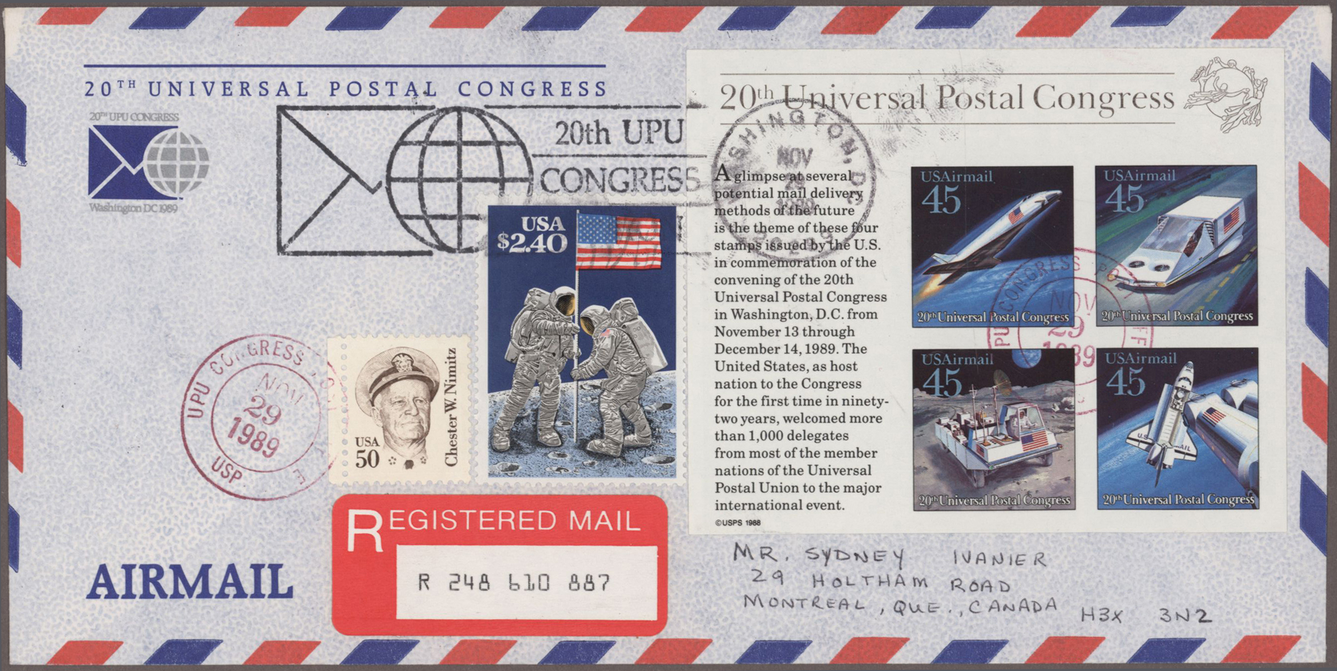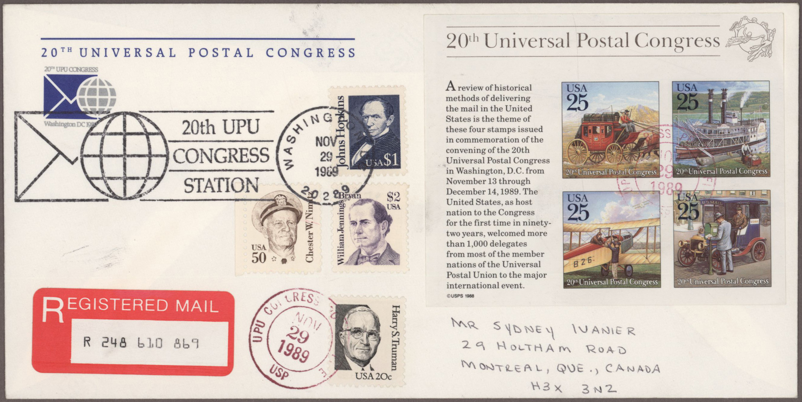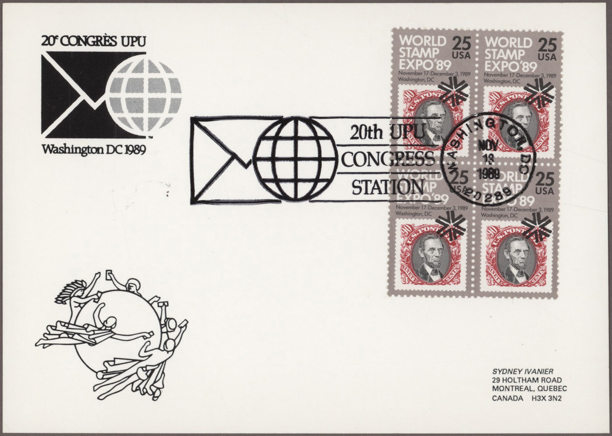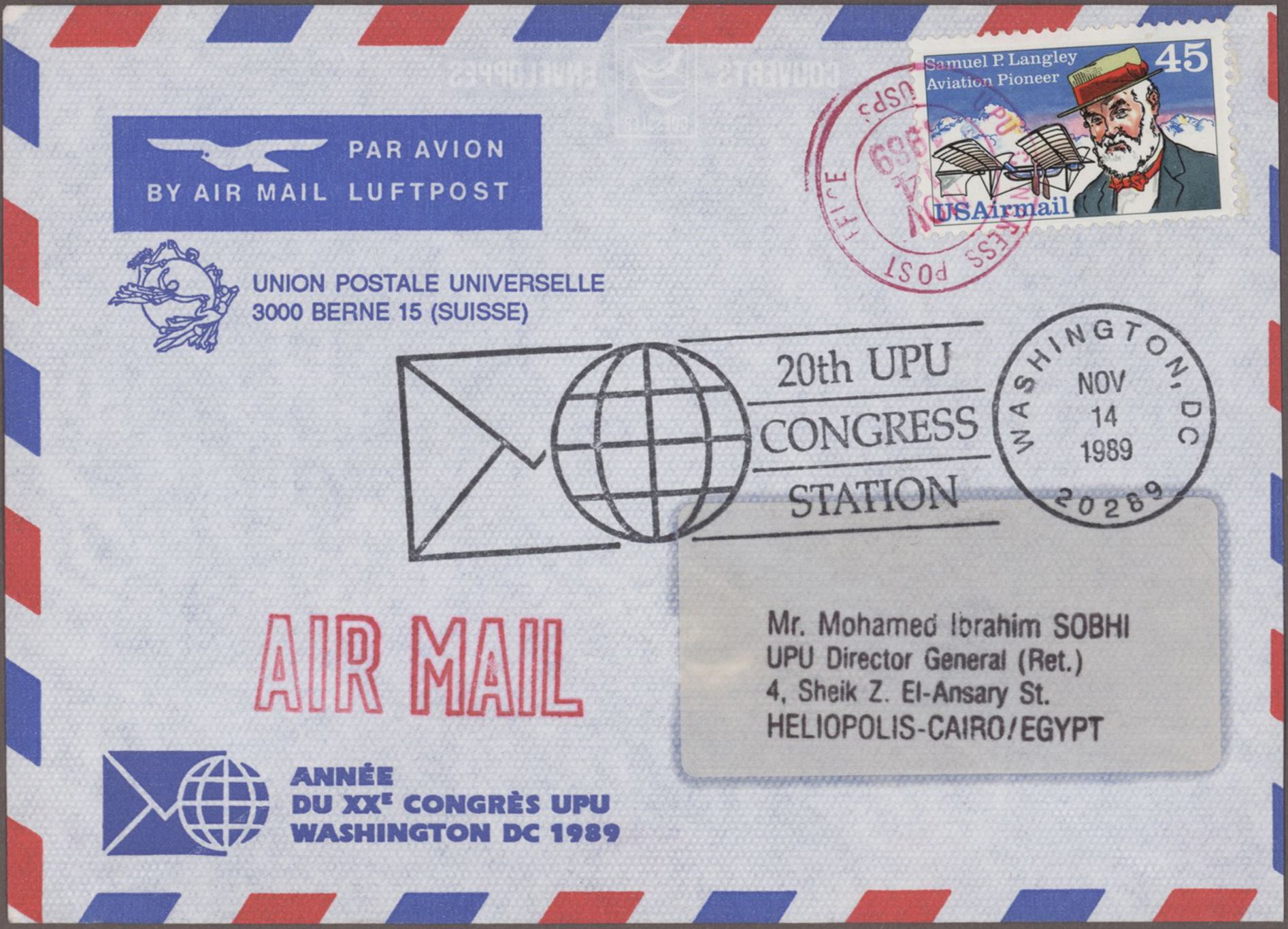 1989, 20th UPU Congress Washington, assortment of apprx. 60 covers/cards, comprising cacheted envelopes, related frankings and special event