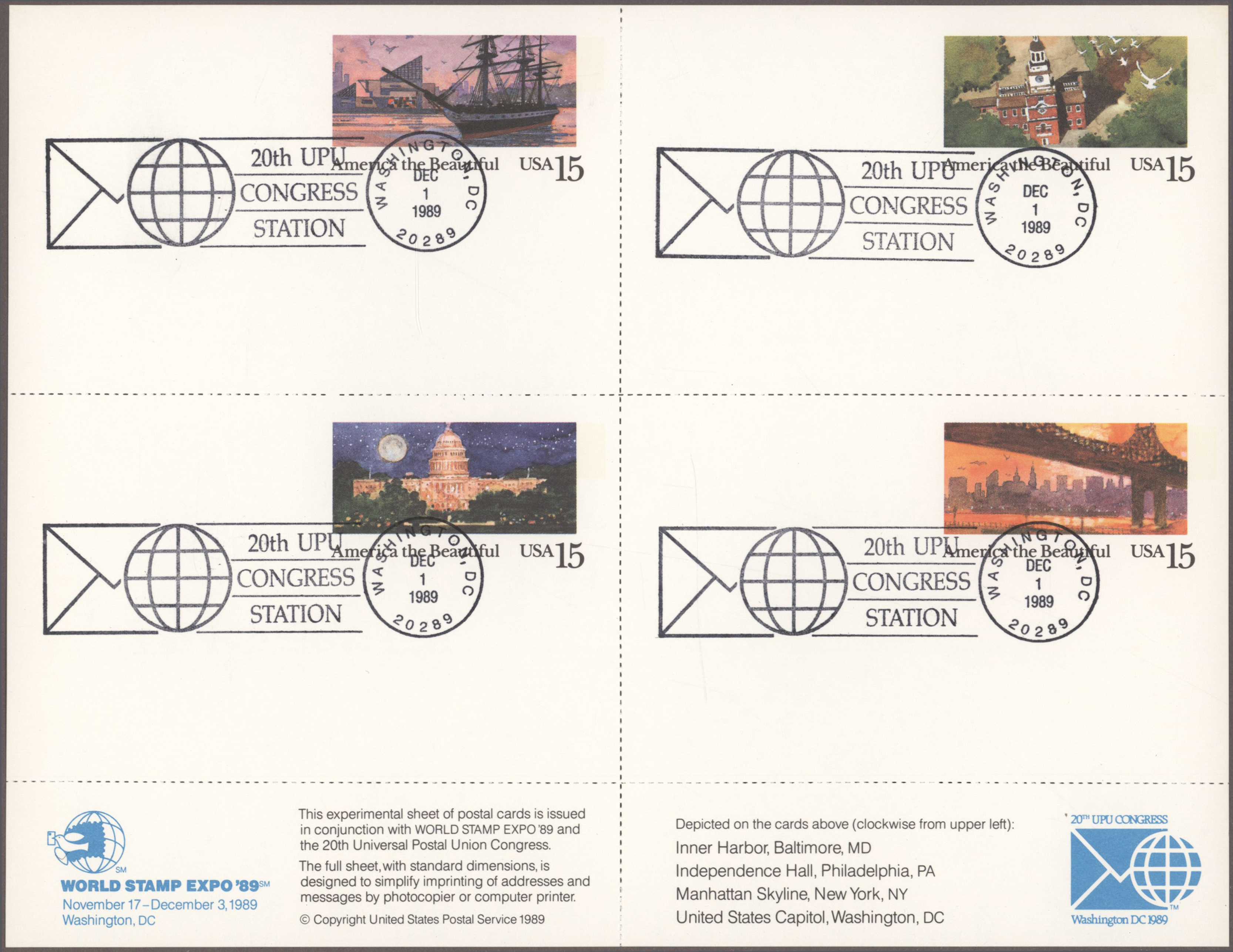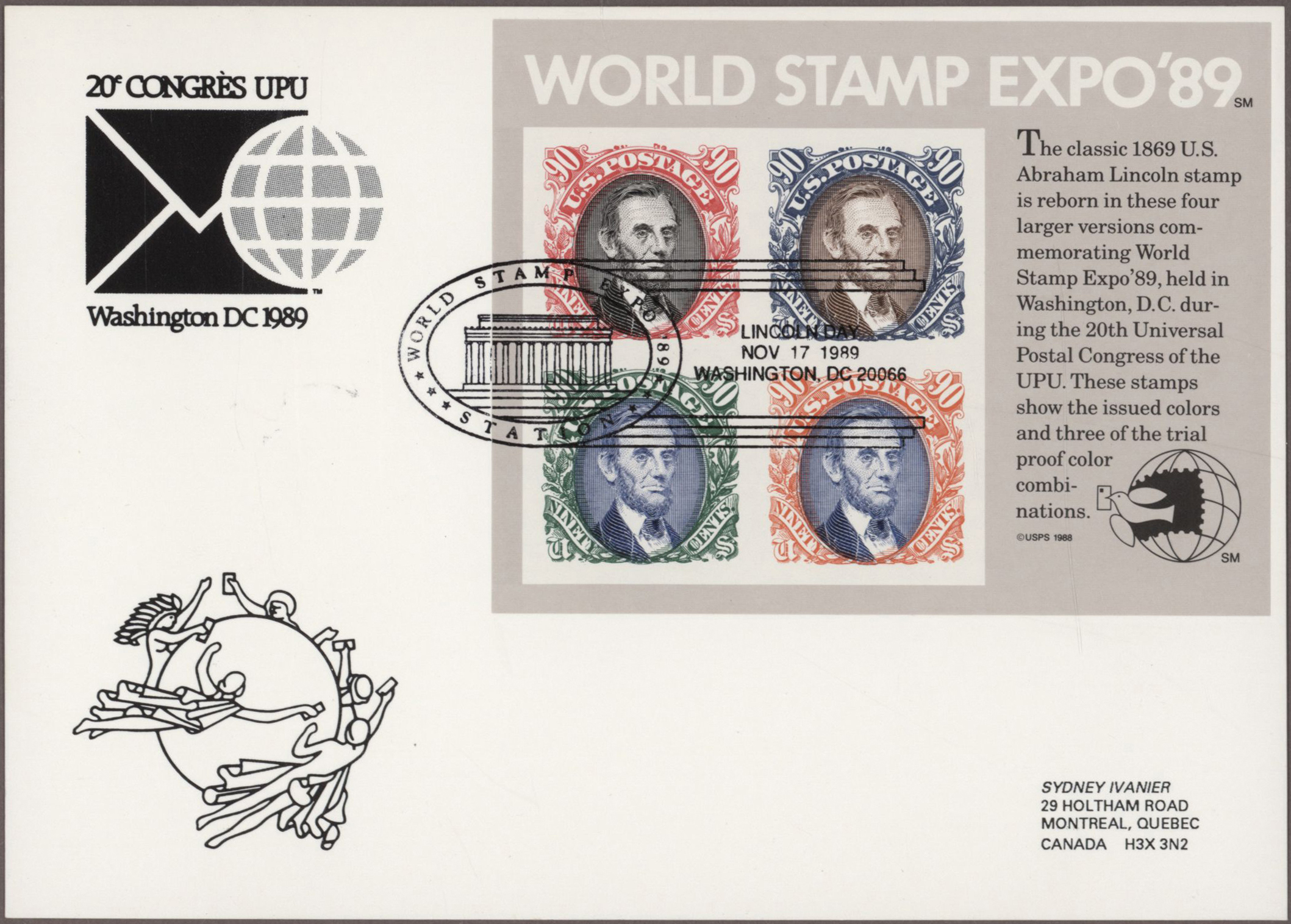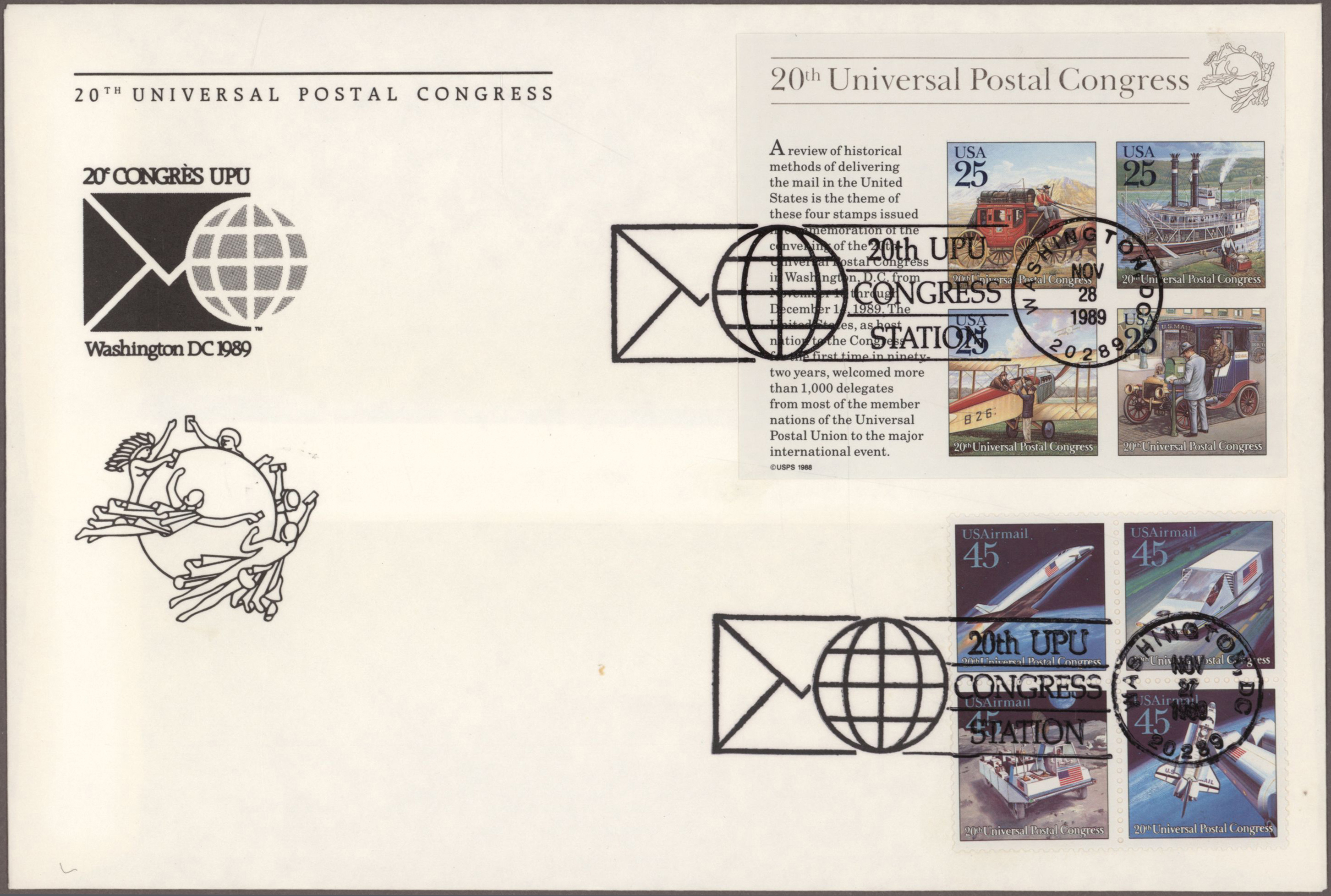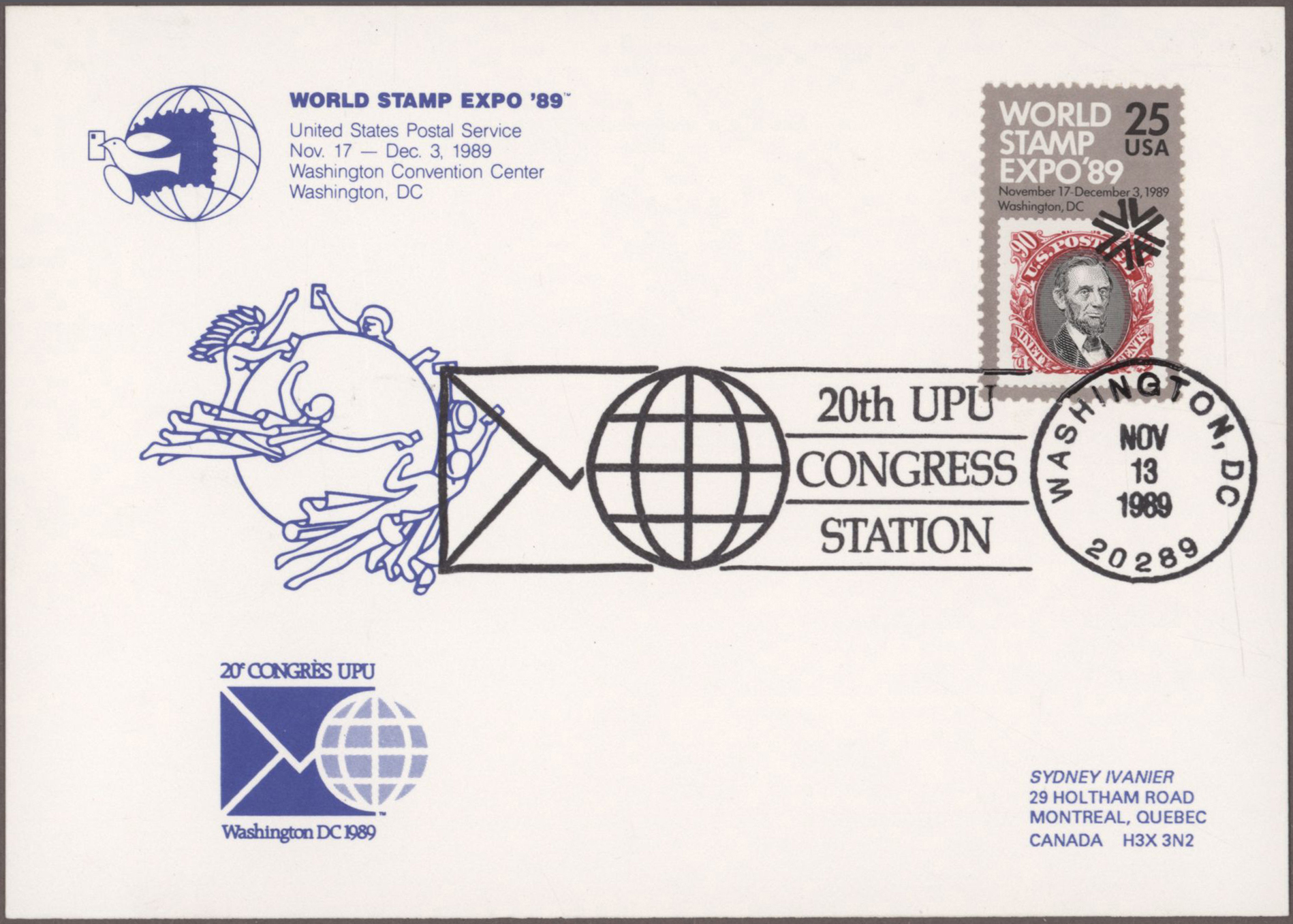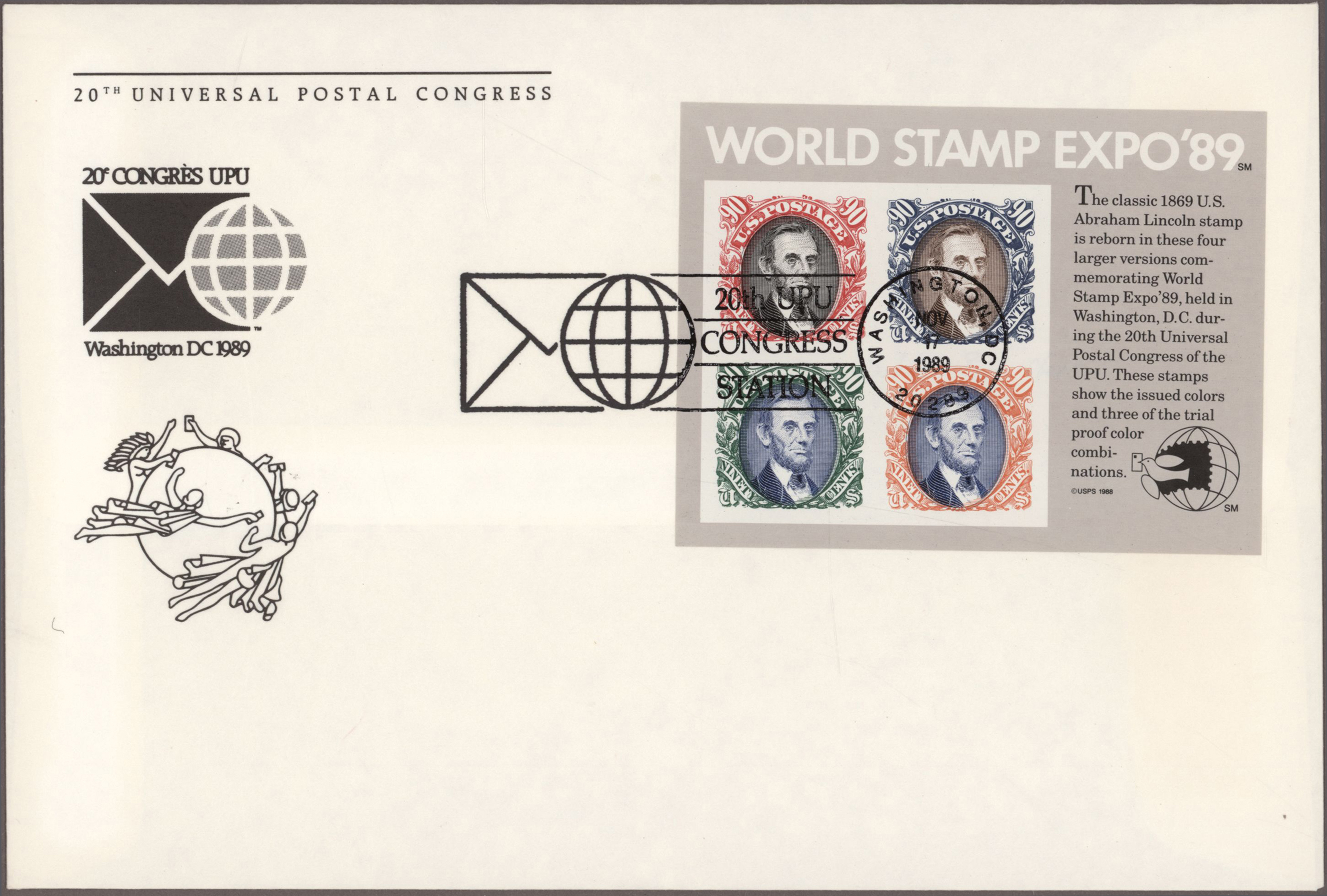 1989, 20th UPU Congress Washington/World Stamp Expo, specialised assortment of apprx. 250 commemorative covers/cards/stationeries, bearing