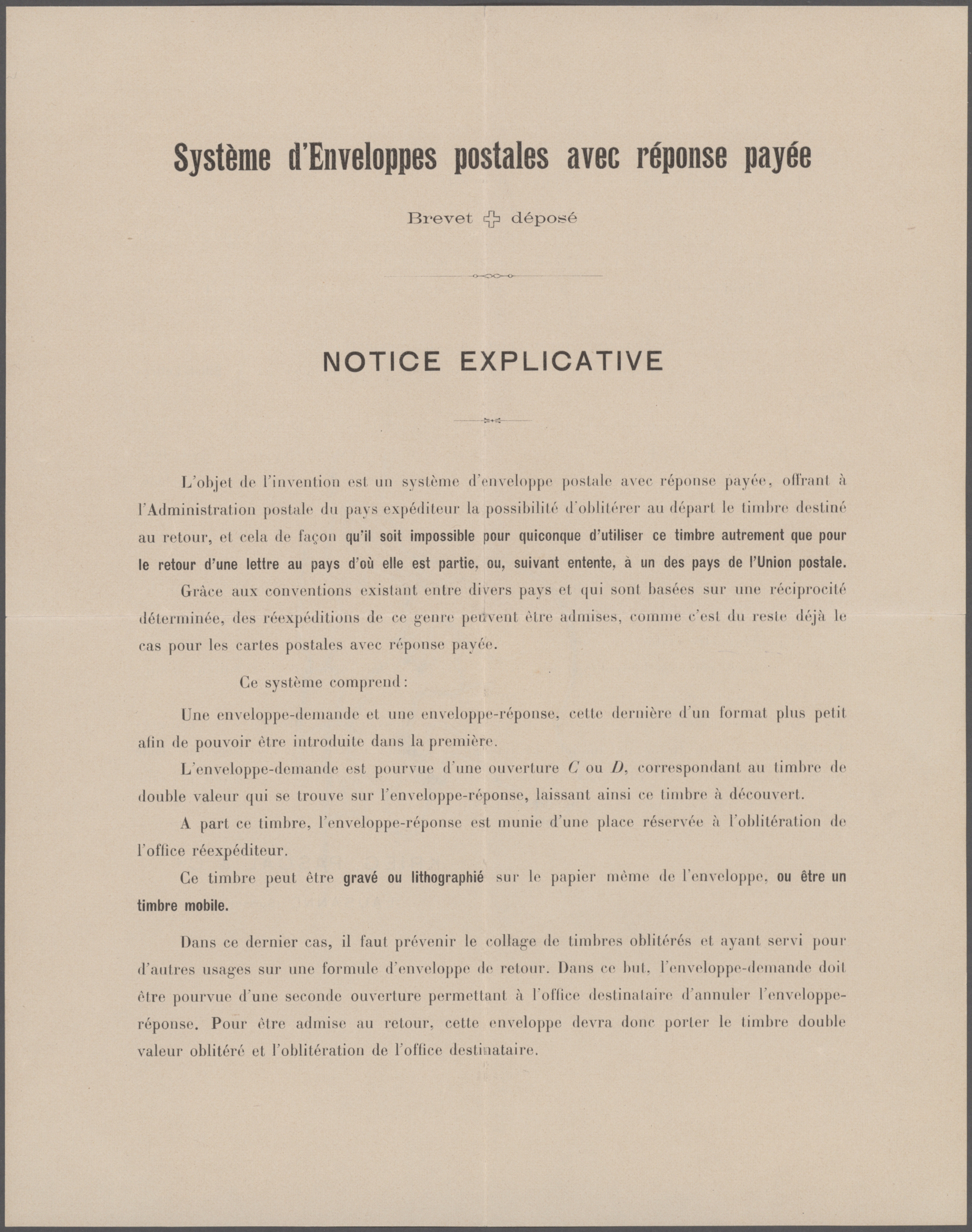 France & Belgium to the 1906 UPU Congress for the planned introduction of IRCs (International Reply Coupons); in addition explanatory note of Krieg, Pascal & Cie, Lausanne, Switzerland. Rare!