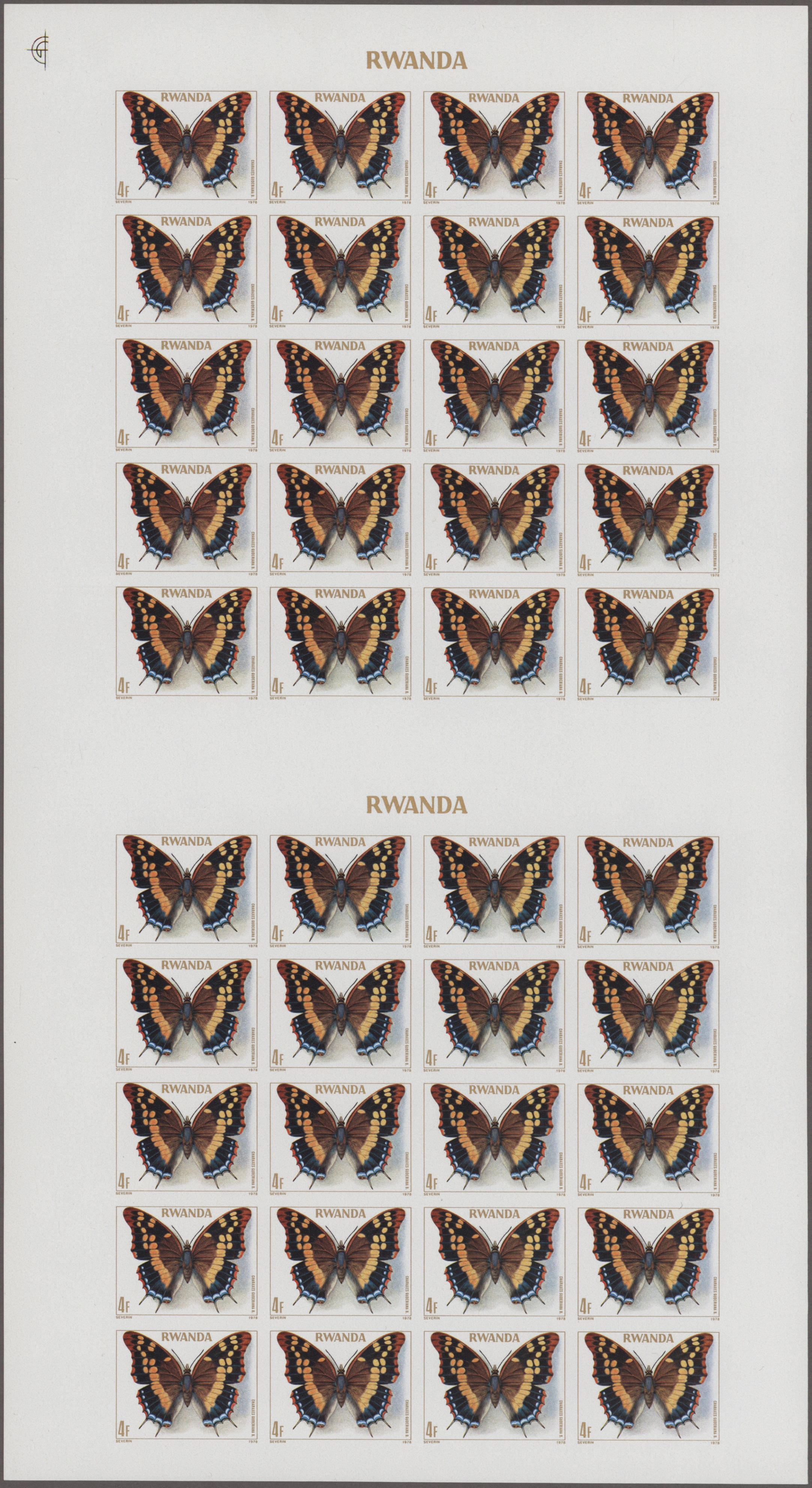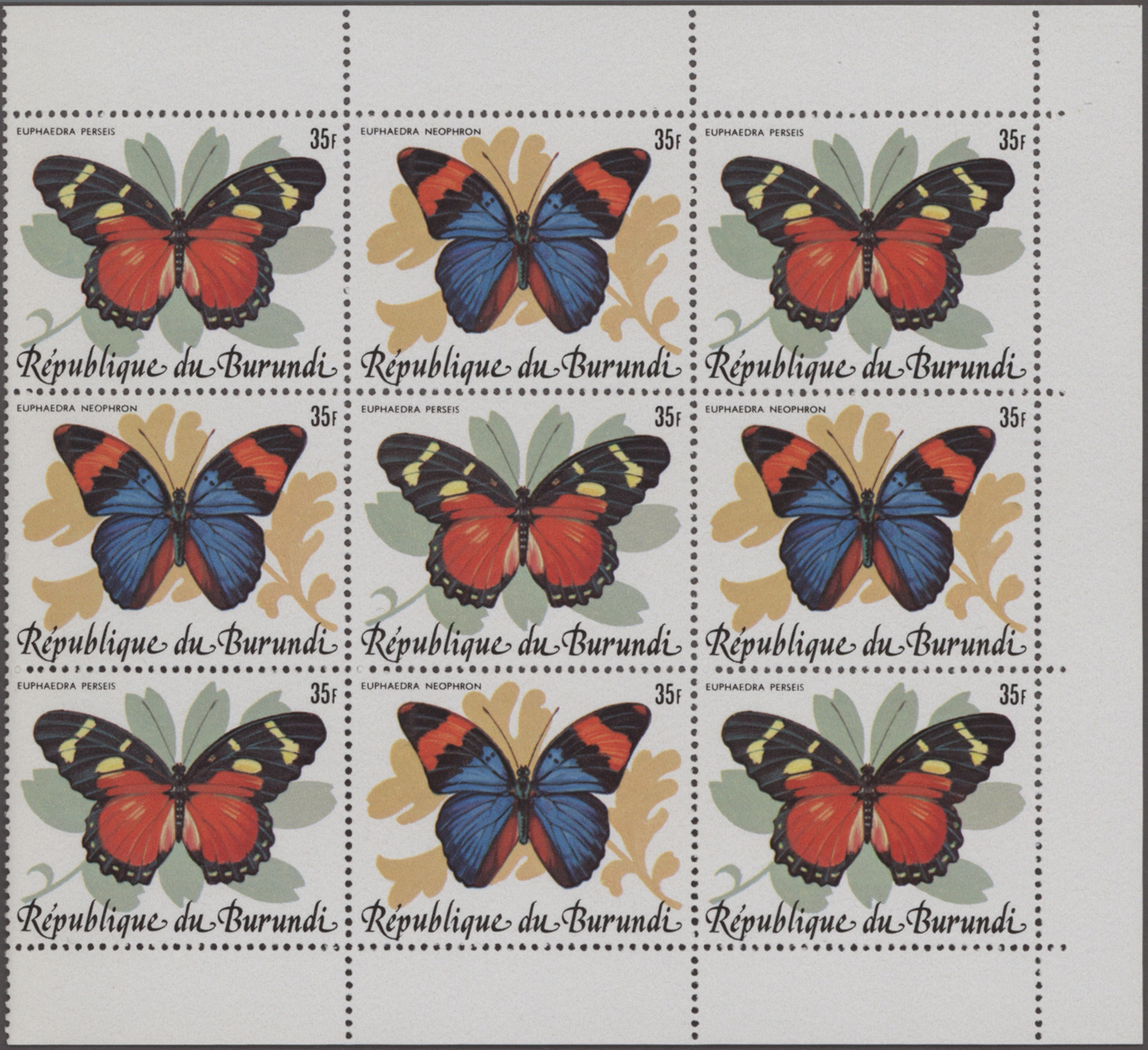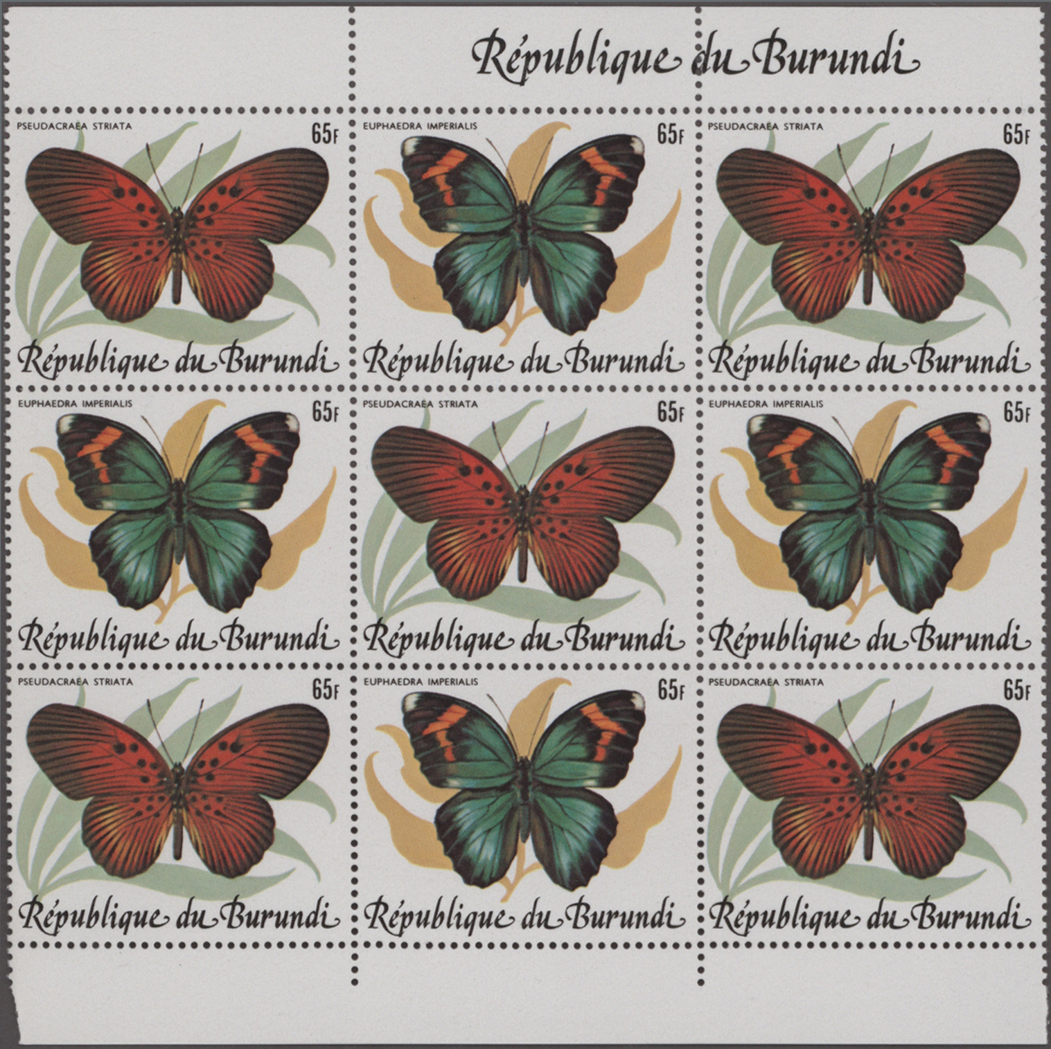 1984, butterflies, Burundi 150 complete sets of 10 on 50 folded sheets MHN. Mi. cat value 25.500€