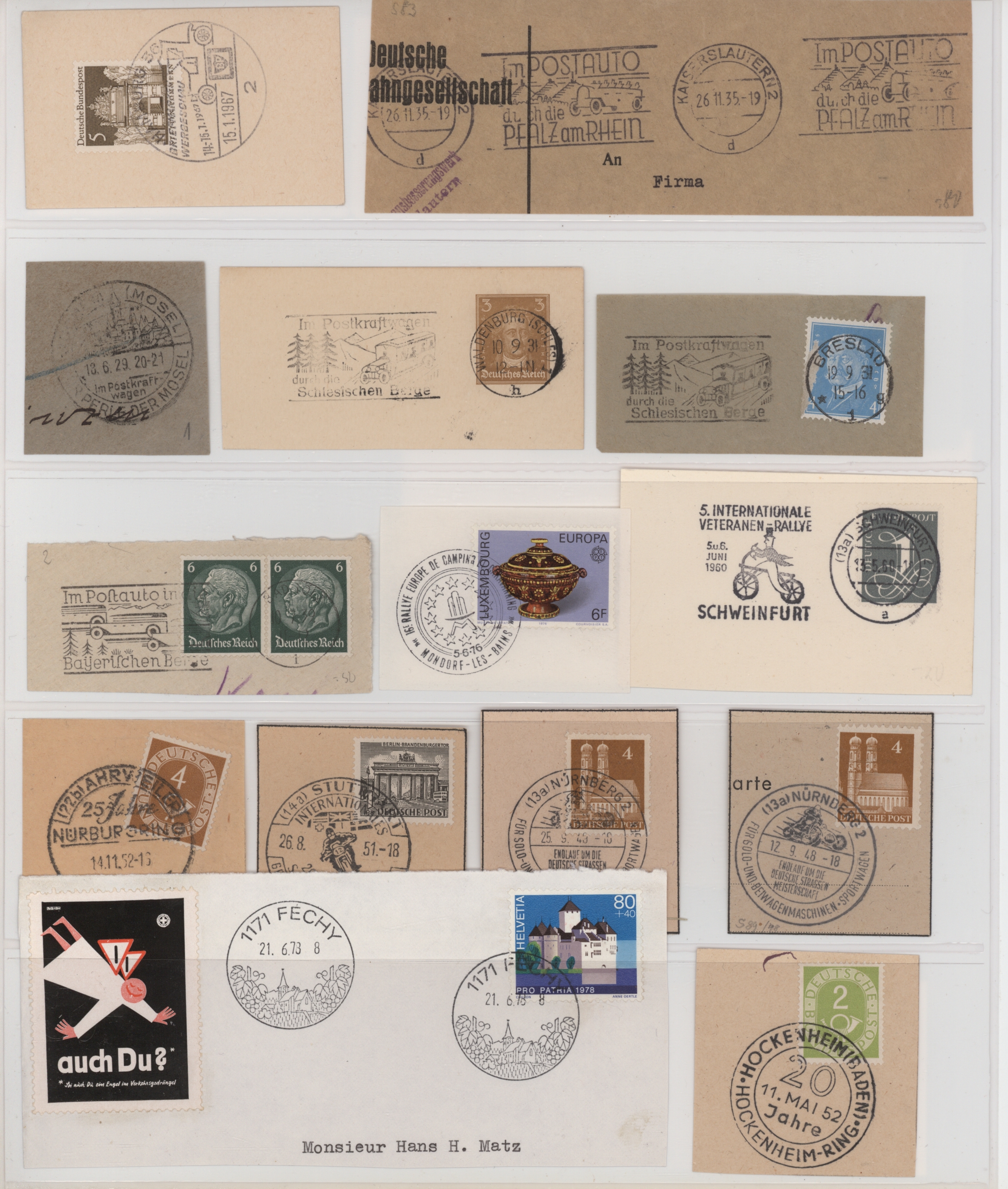 weitere Sonder- und Werbestempel, Bild- und Privat-Ganzsachen, Freistempler, auch mit den Thematiken Kraftstoff, Lastverkehr, Versicherung, Automobilausstellungen usw.