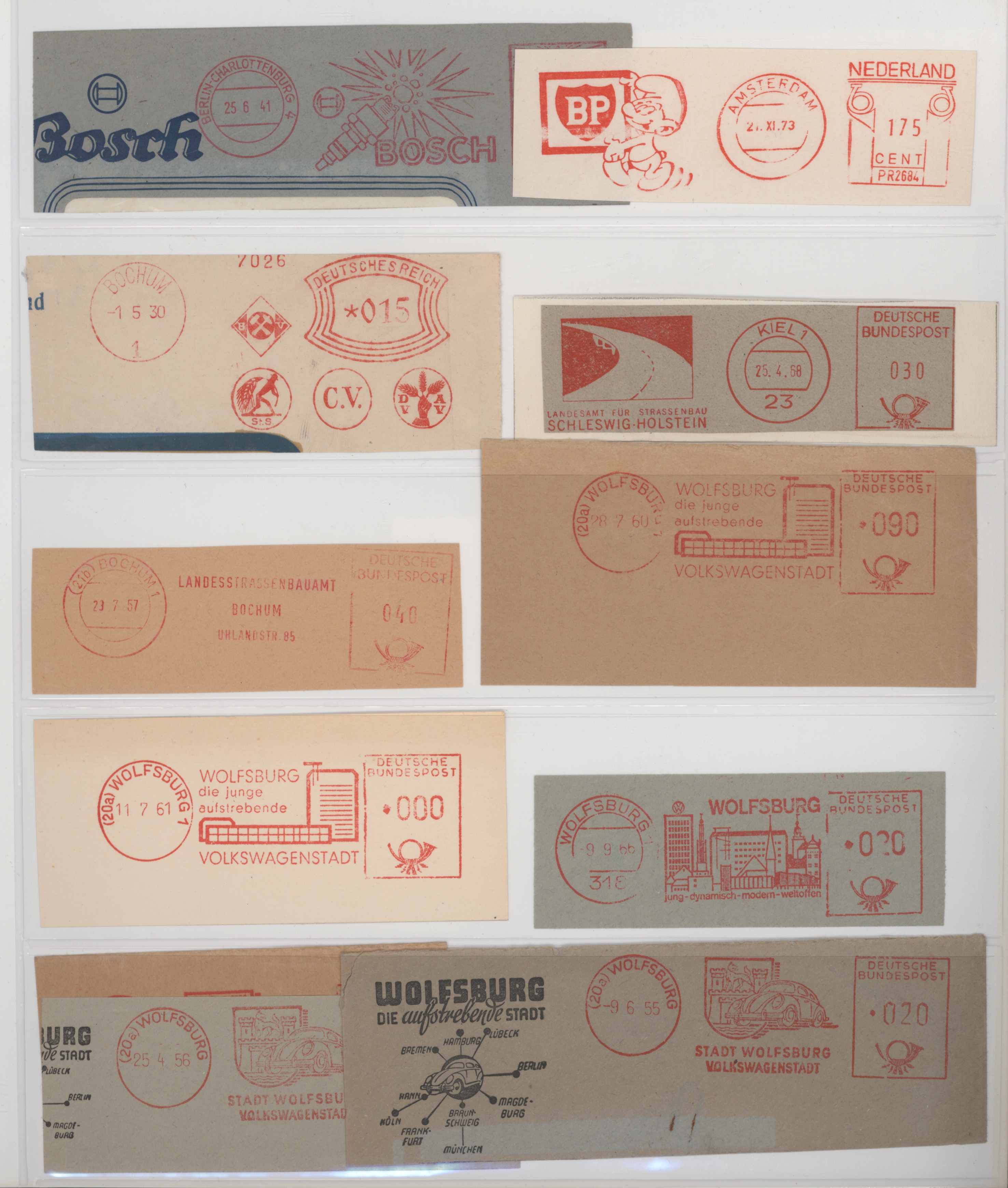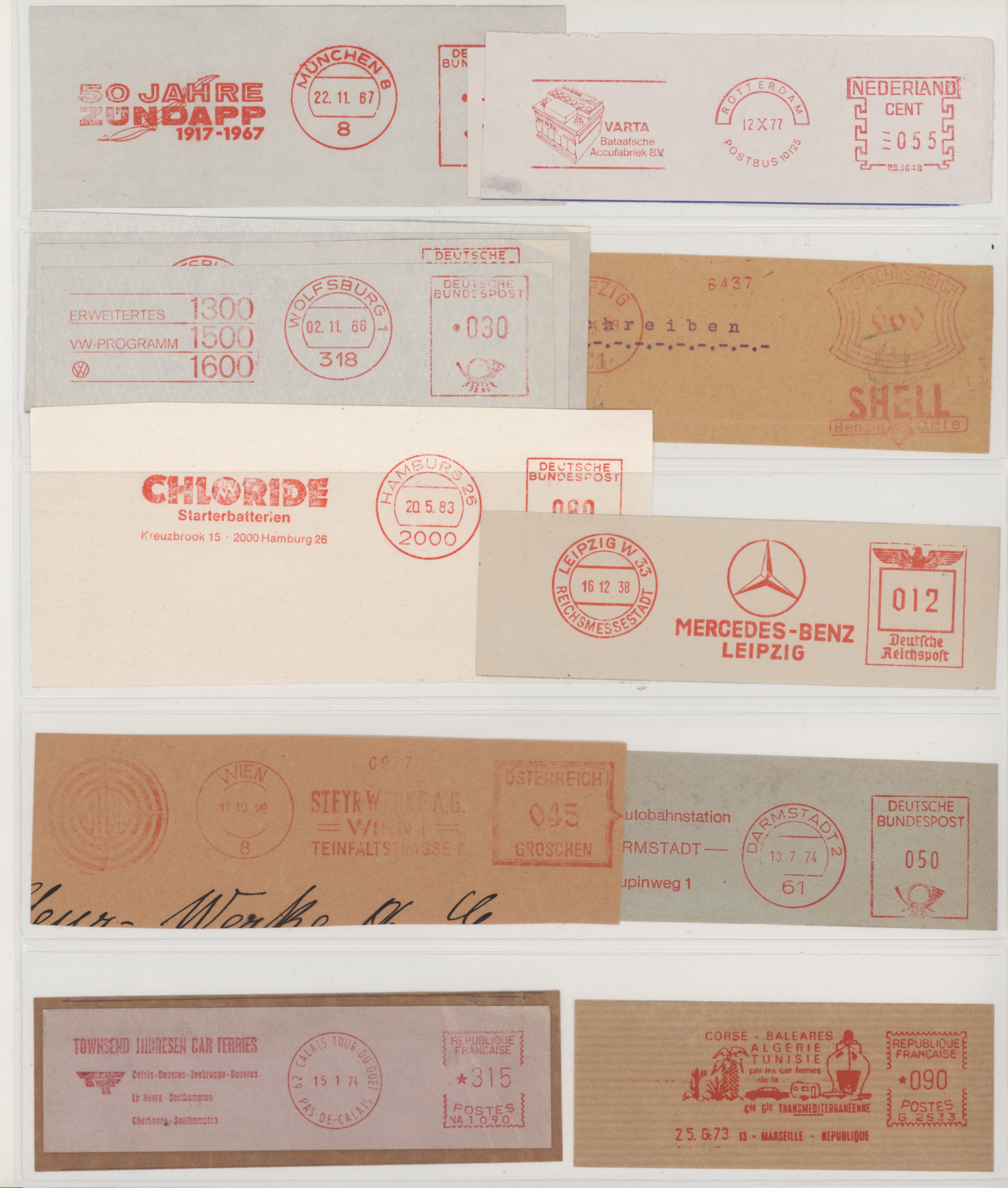 1930/1980 (ca.), collection of apprx. 700 pieces/cutouts, mainly meter marks, some bearing adhesives with special event and slogan marks.