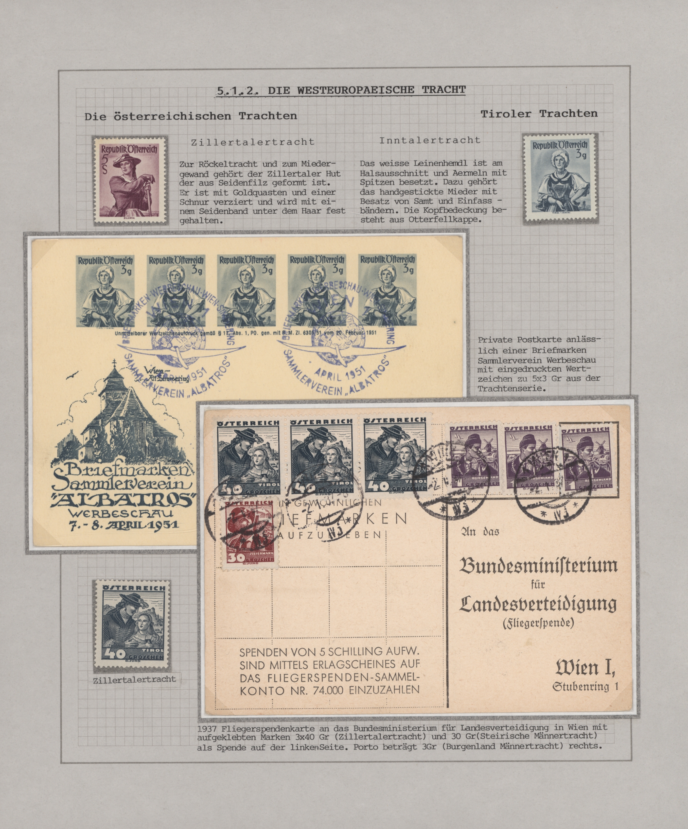 1945, France 4fr. "Liberation of Alsace/Lorraine" (Costumes), lot of ten ppc franked on picture side.