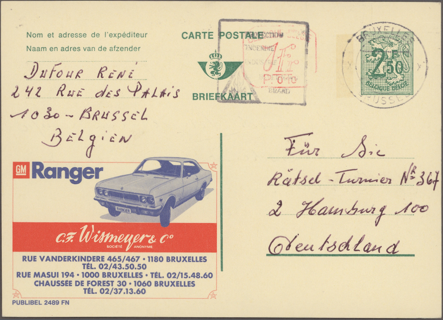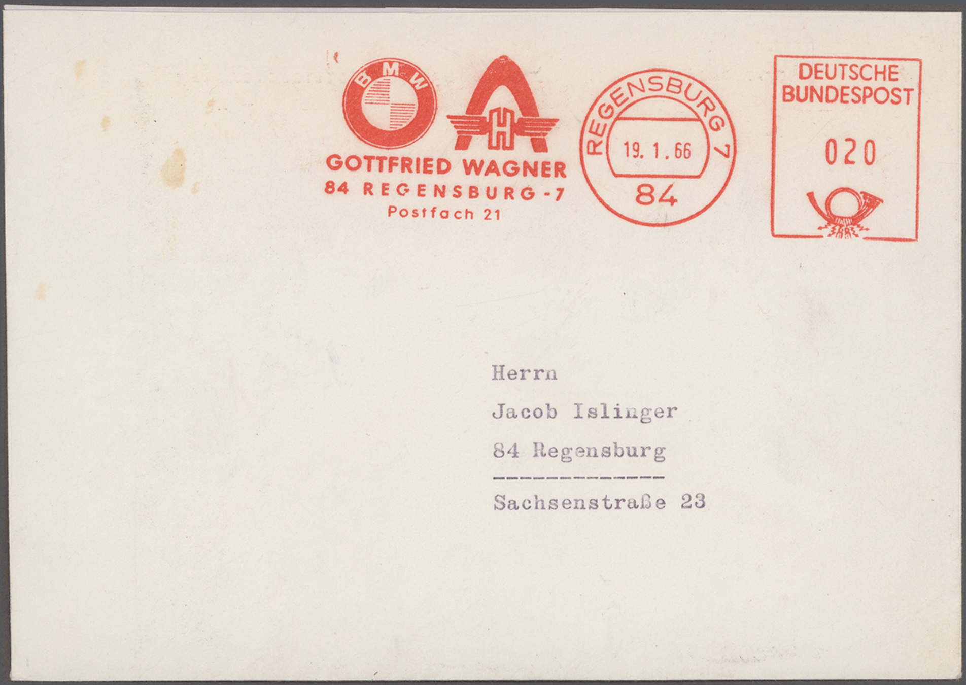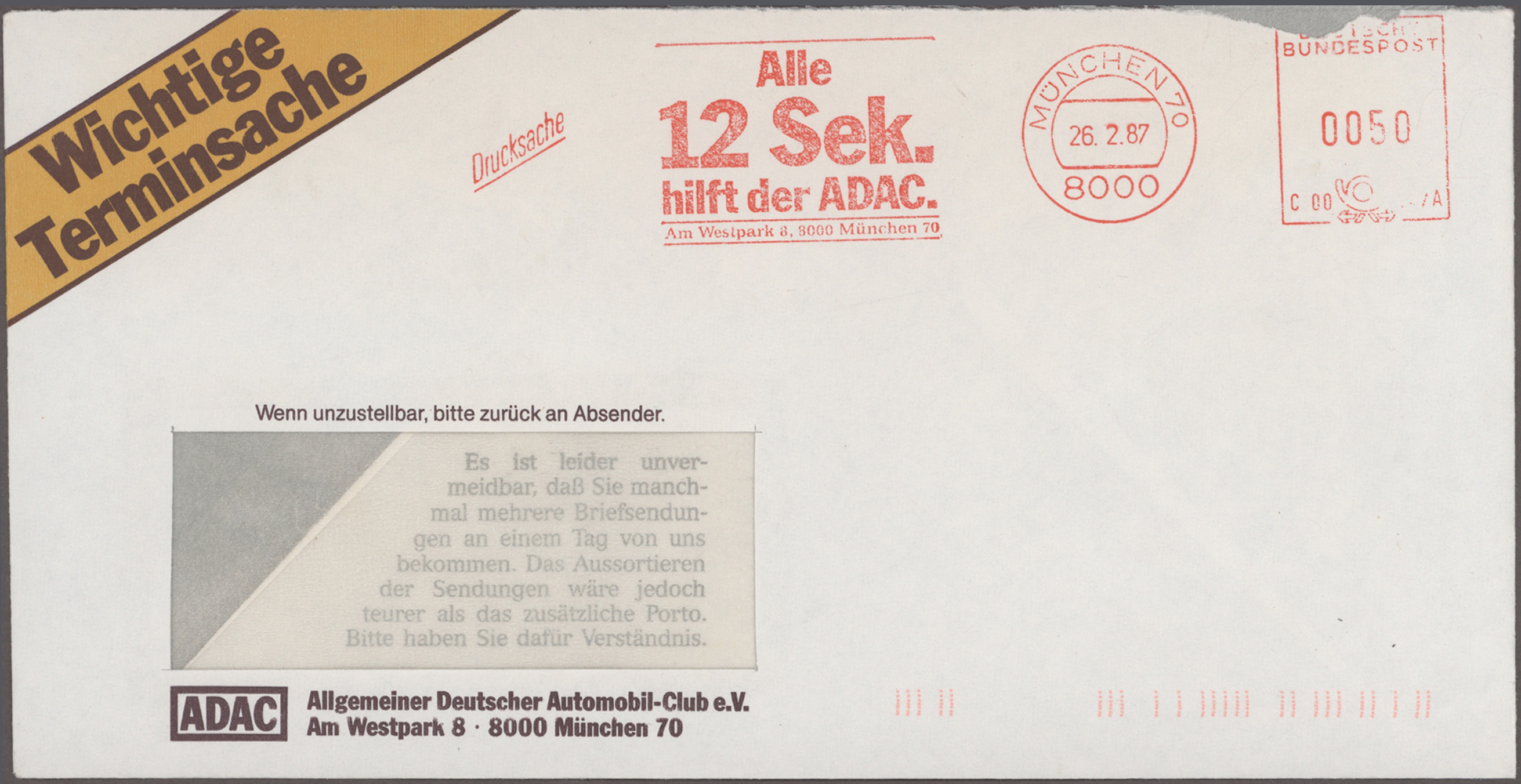 Condition: Cover/Mk/postal stationery This lot is "Gebotslos". The Minimum Bid is 20 €, it will be sold at the HIGHEST BID (not one bidding step above the second highest bid). (1068336) (Image)