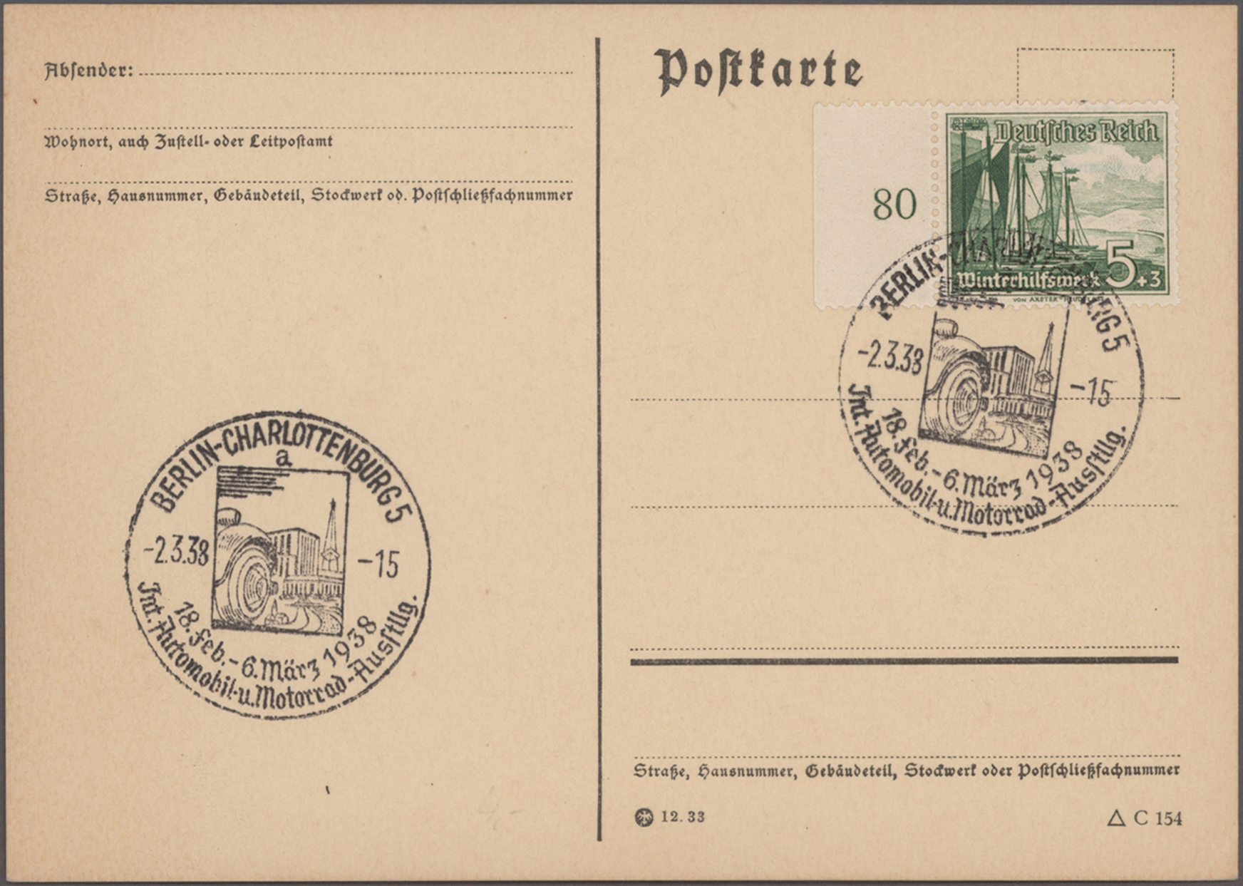 Switzerland, Liechtenstein, Austria, Sweden and the UK. A true eye-candy item is the original monochrome 1938 Berlin Motor Show pictorial card featuring the famous Mercedes-Benz W125 (which had achieved a maximum speed of 432.7 km/h)!