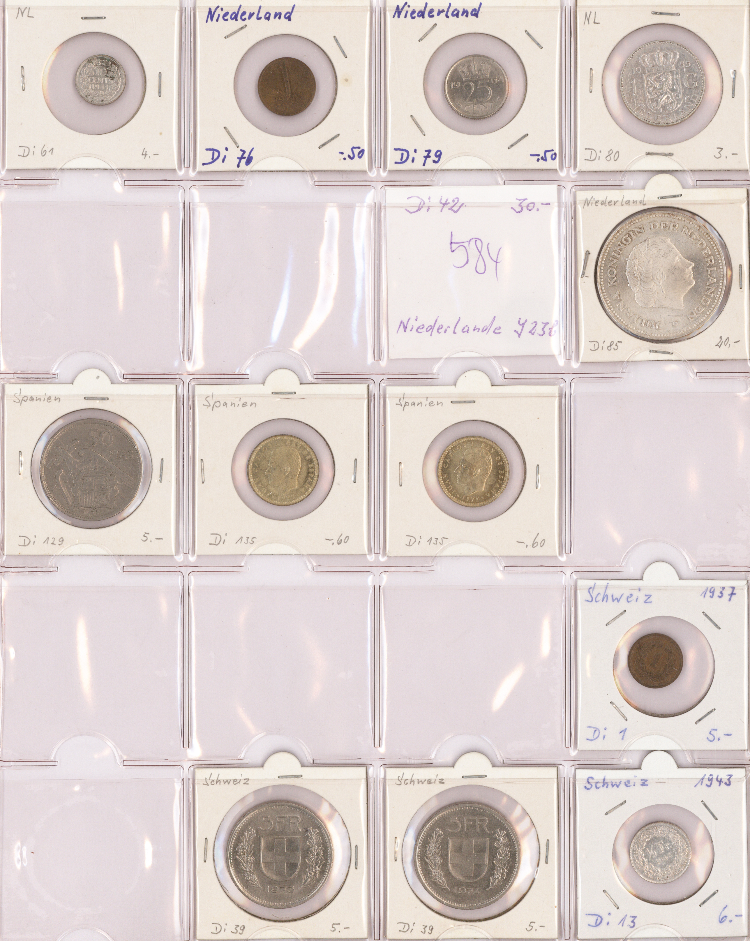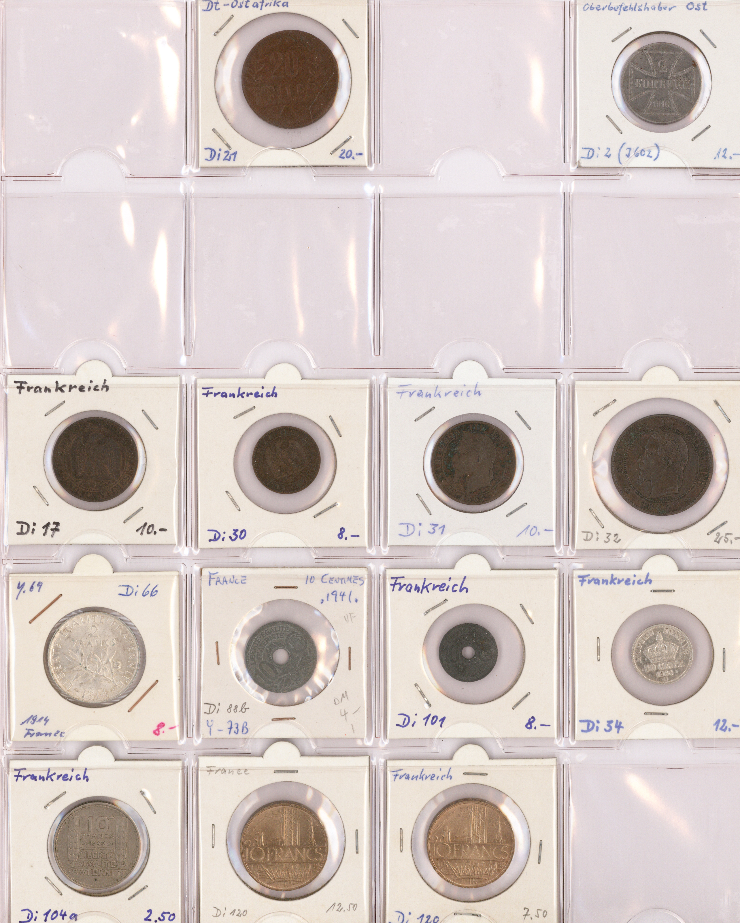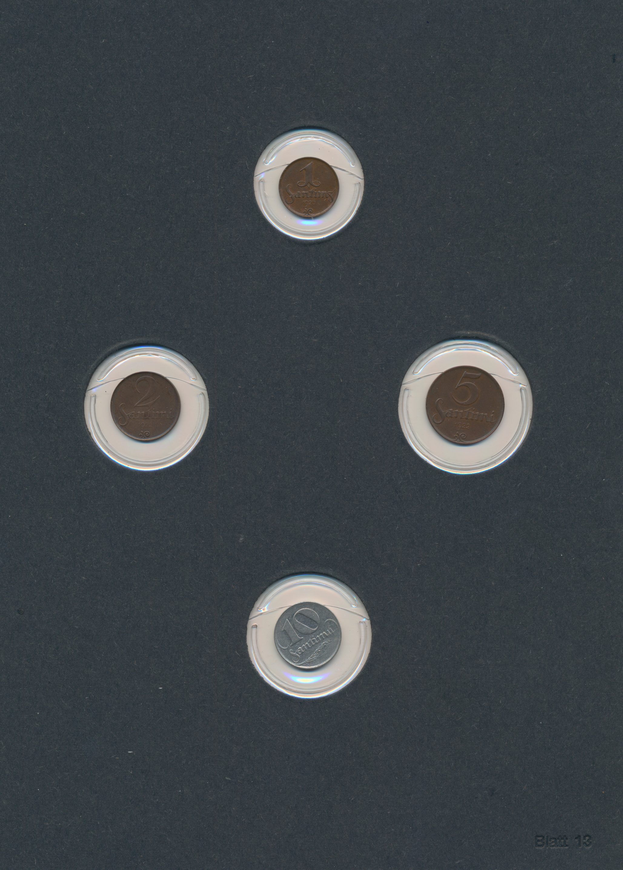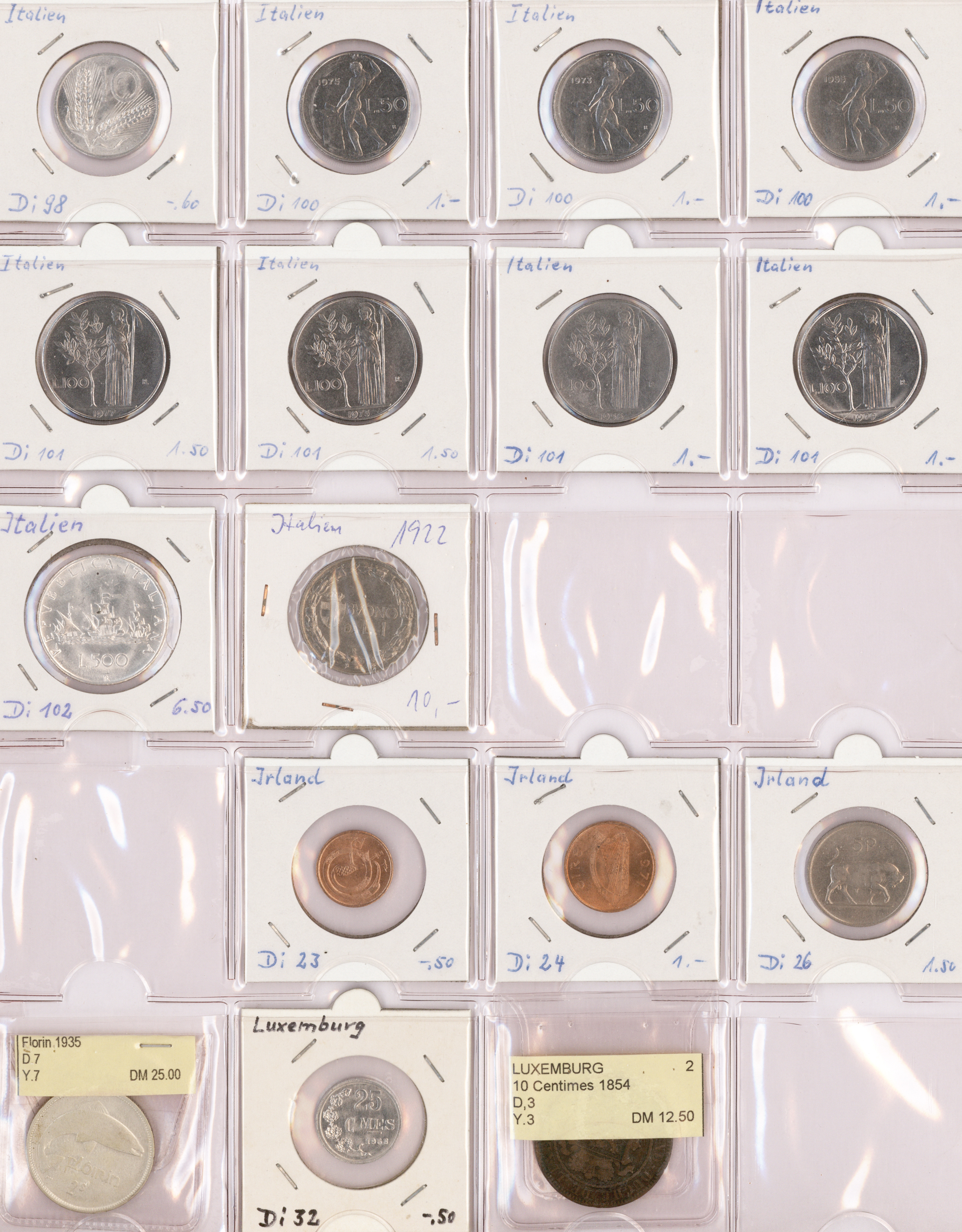 Album und einige hundert lose Münzen, welche für den Weiterverkauf vorbereitet wurden. Im Album sind die (über 200) Münzen in Münzrähmchen untergebracht und beschriftet.