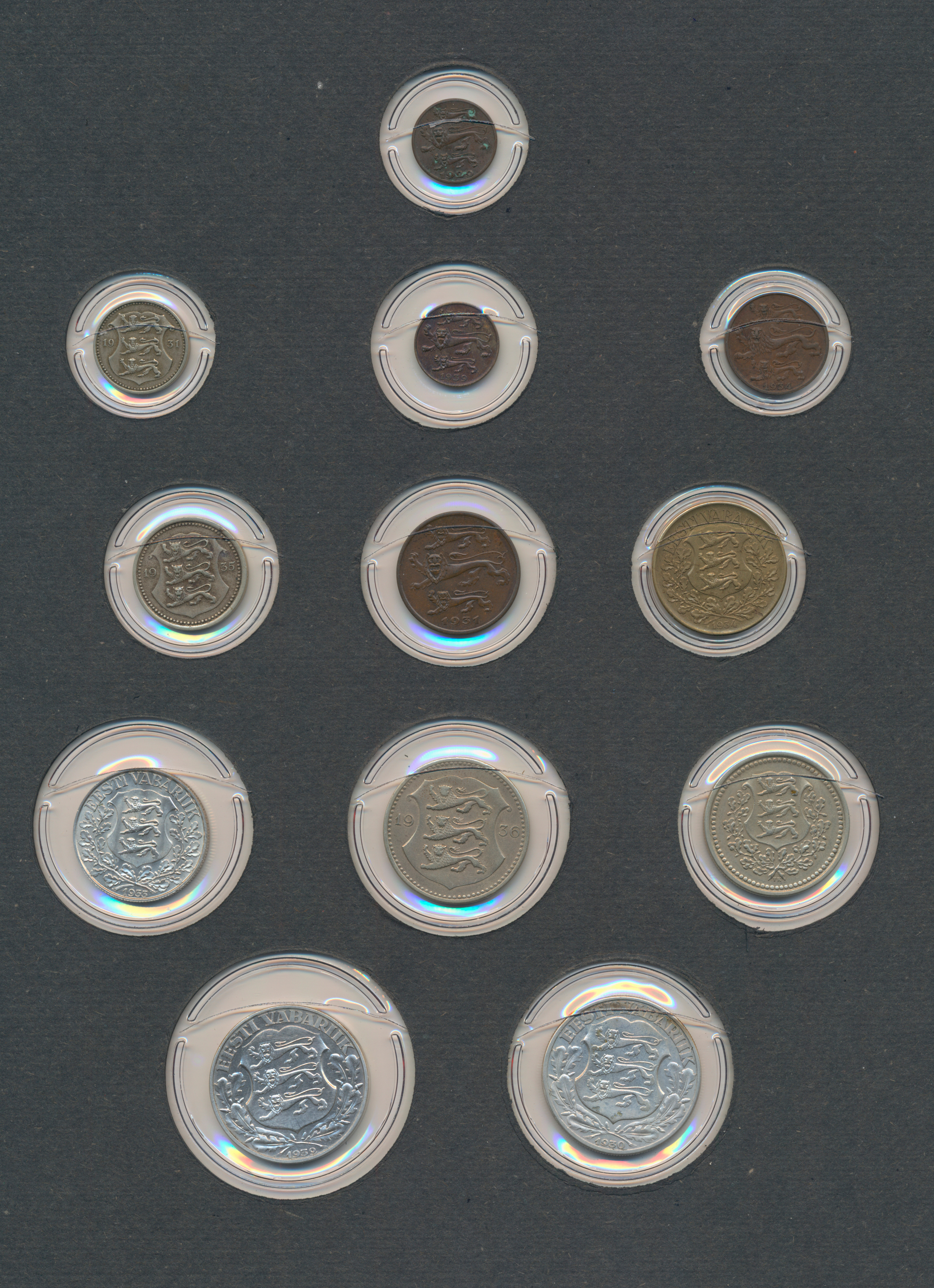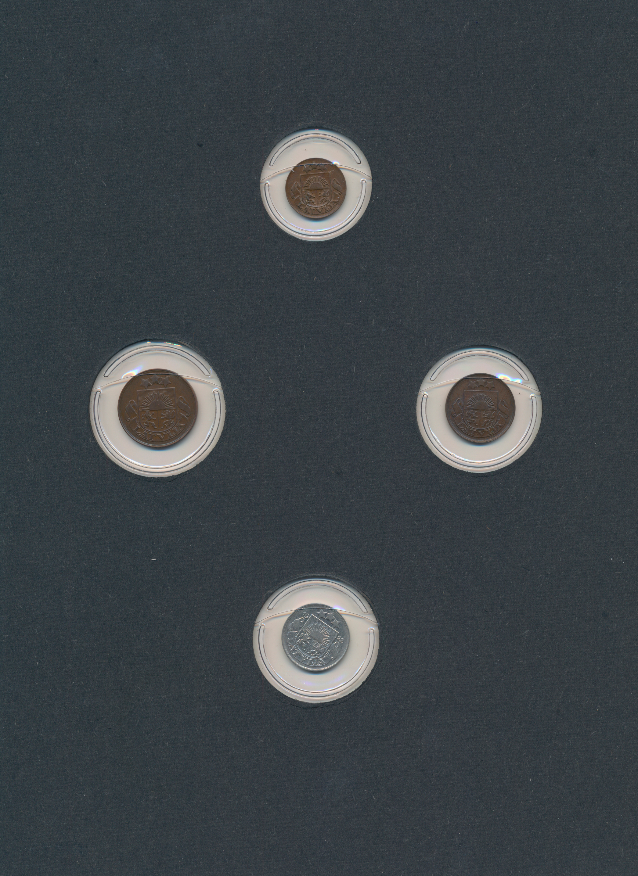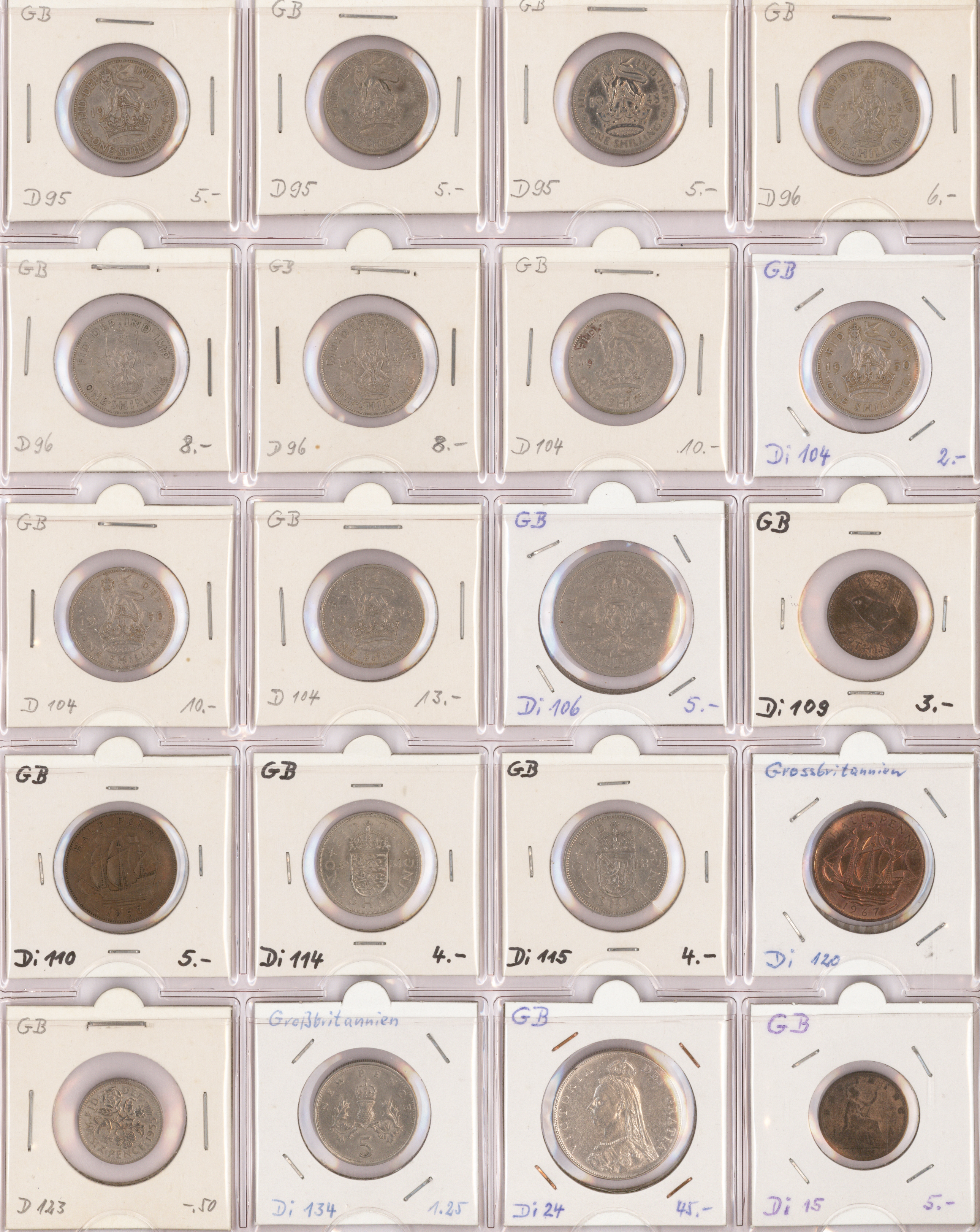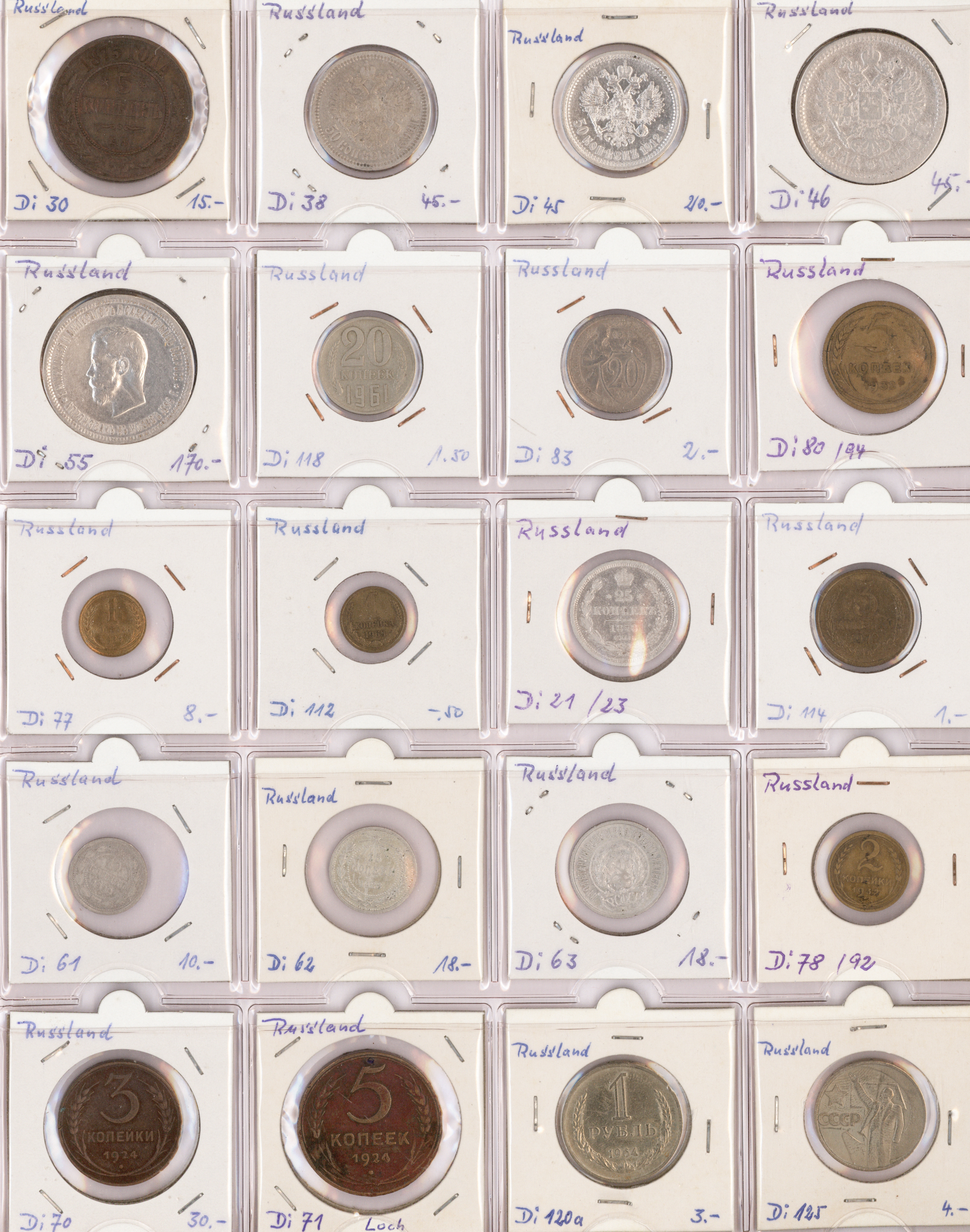 Album und einige hundert lose Münzen, welche für den Weiterverkauf vorbereitet wurden. Im Album sind die (über 200) Münzen in Münzrähmchen untergebracht und beschriftet.