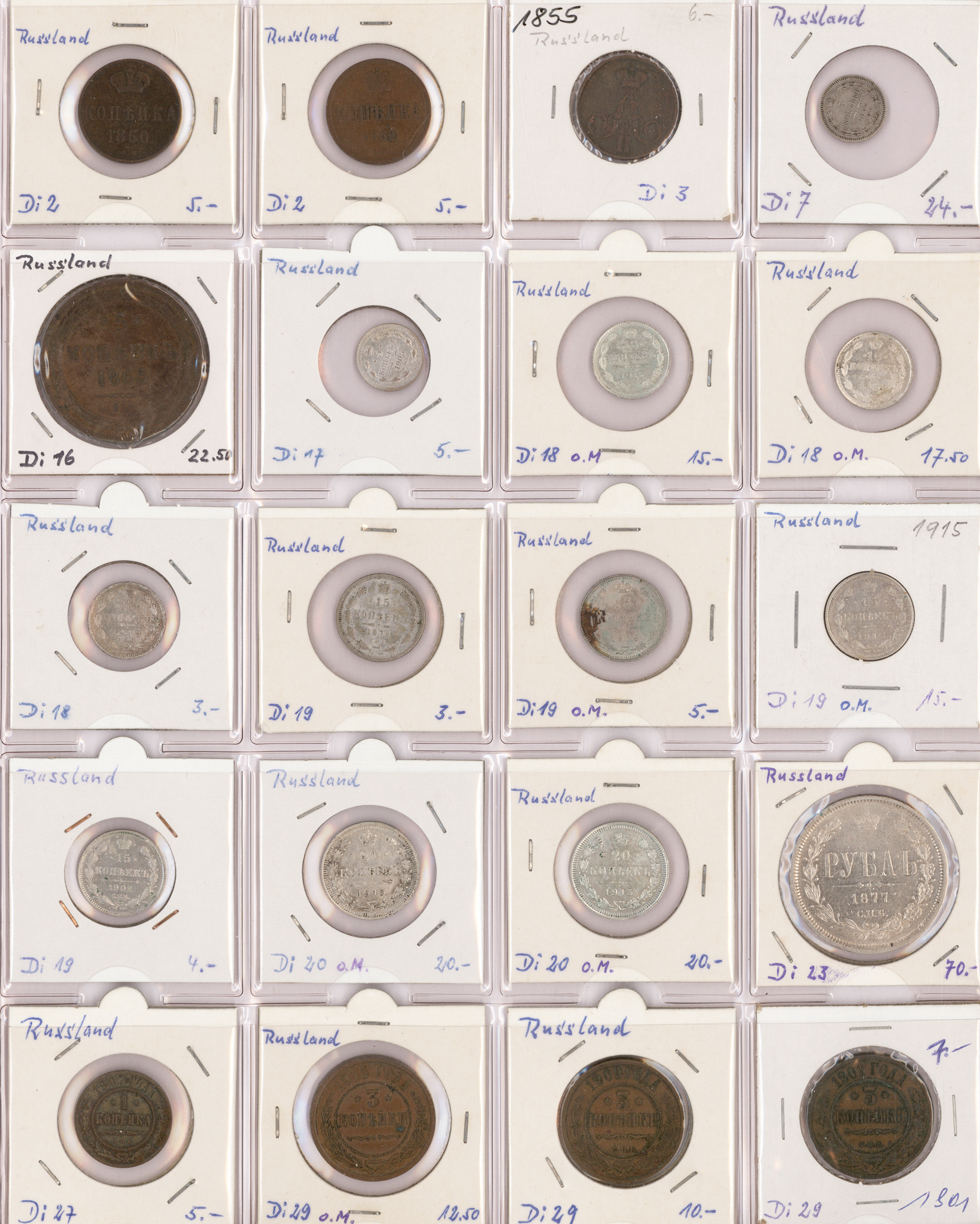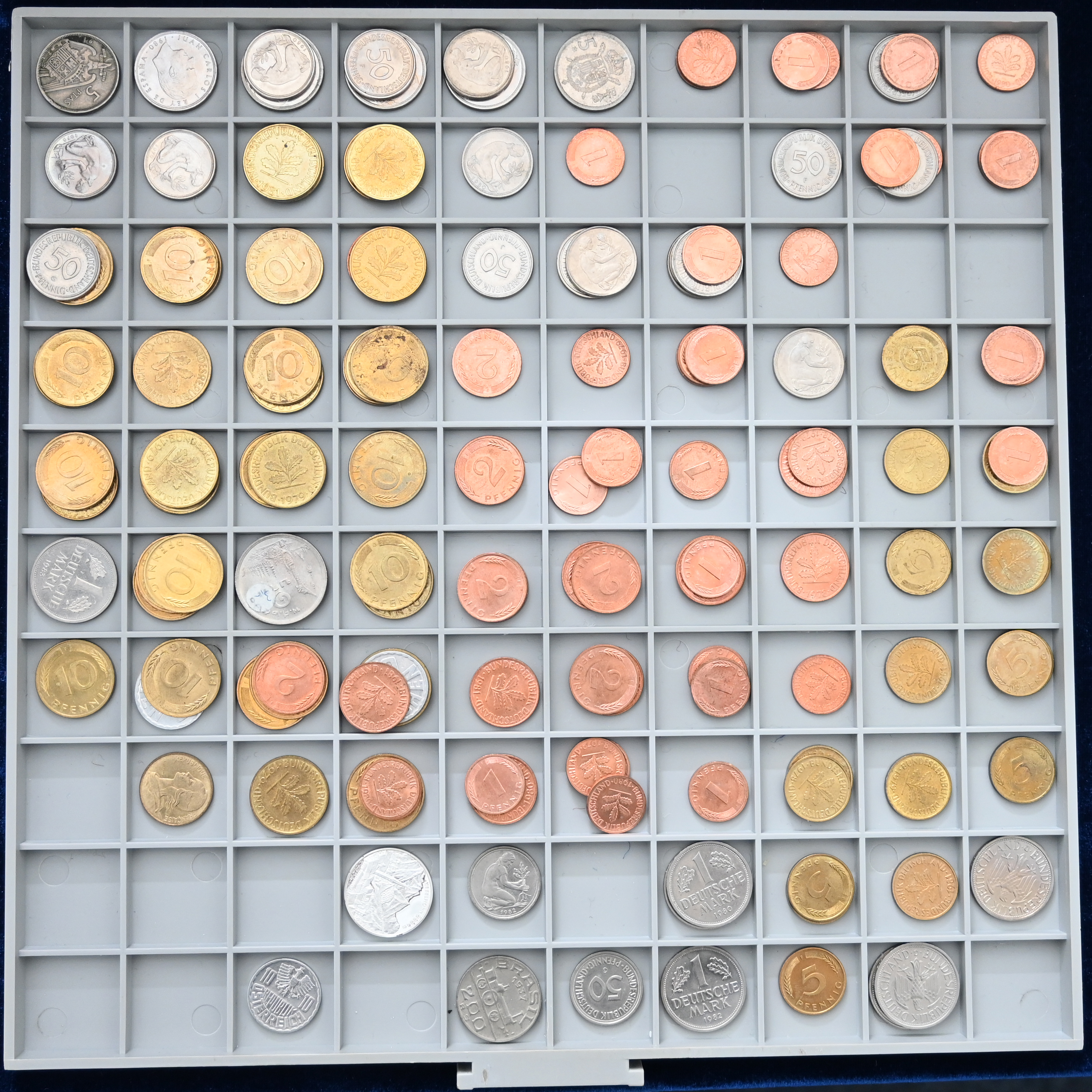 Auch ältere Münzen vor 1900 sind vertreten, einige Münzen sind aus Silber. Neben dem Album befinden sich noch ca. 5 kg (Brutto) unsortierte Münzen in zwei Schachteln, teils bereits in Münzrähmchen vorbestimmt. Auch hier wurden einige alte Münzen