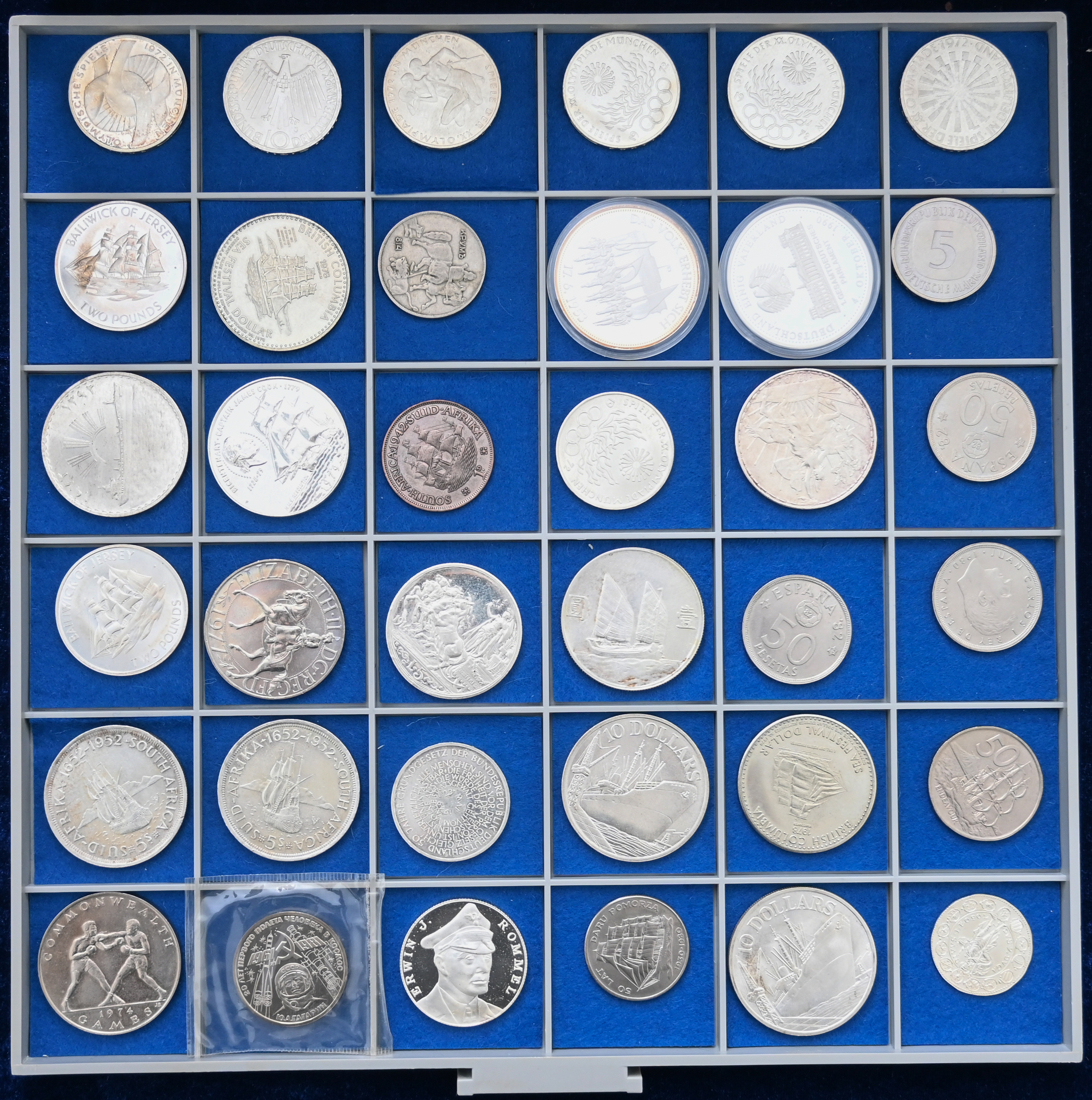Schachtel mit Münzen aus aller Welt, überwiegend moderne Silbermünzen in höchster Qualität polierte Platte. (1064590) (Image)