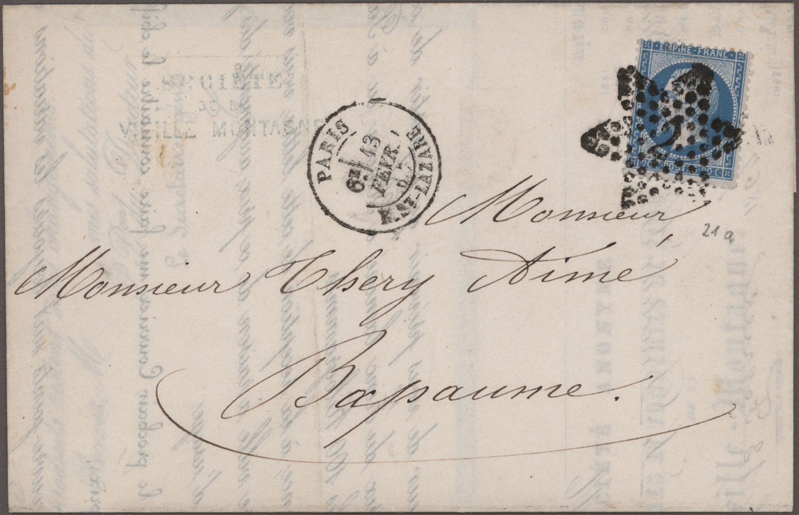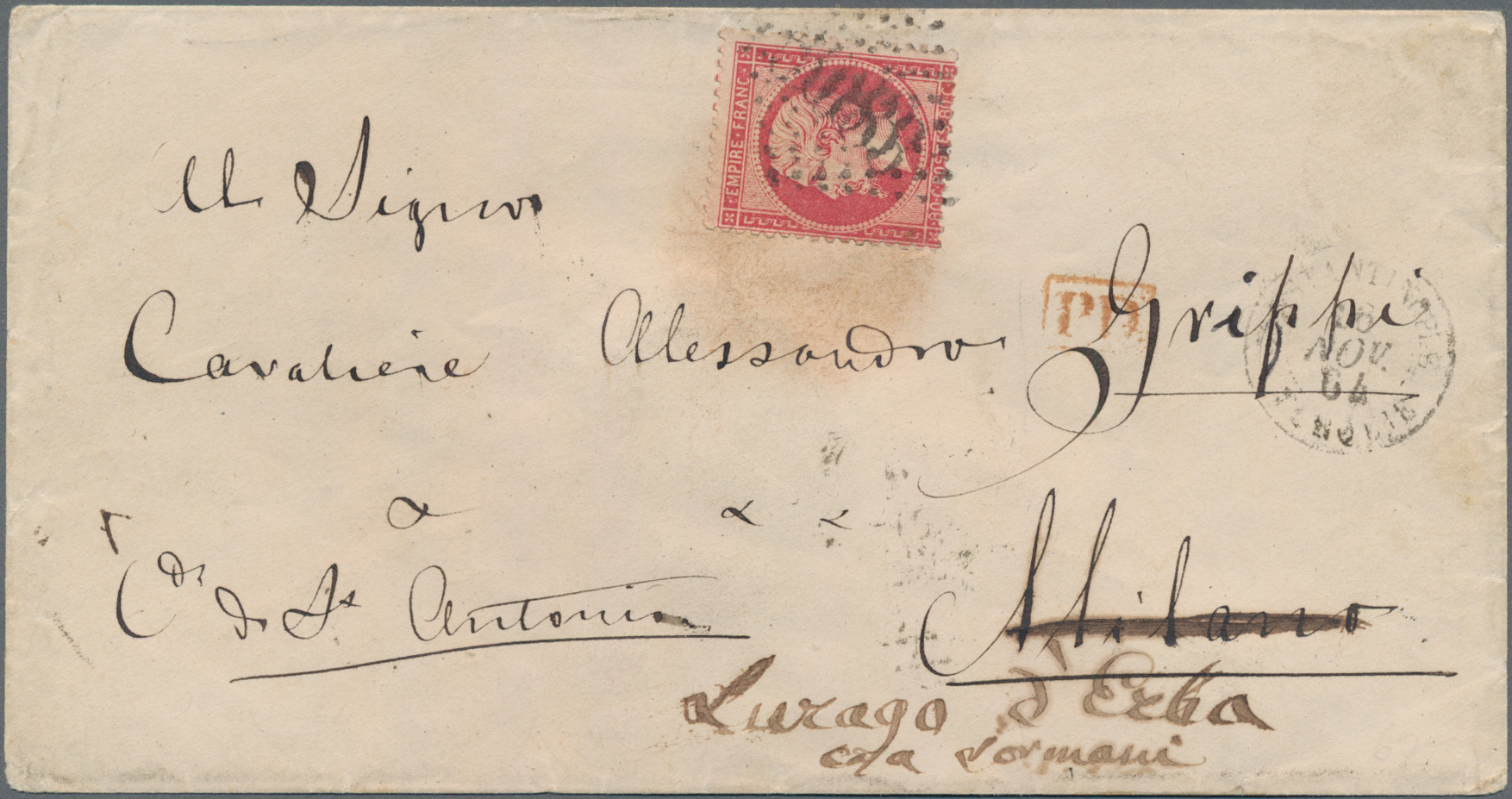 1863-73 Group of 13 folded letters and covers franked by perforated stamps of Napoleon issues, including Chargé, insuff. franked covers, destinations like Algeria, Italy,