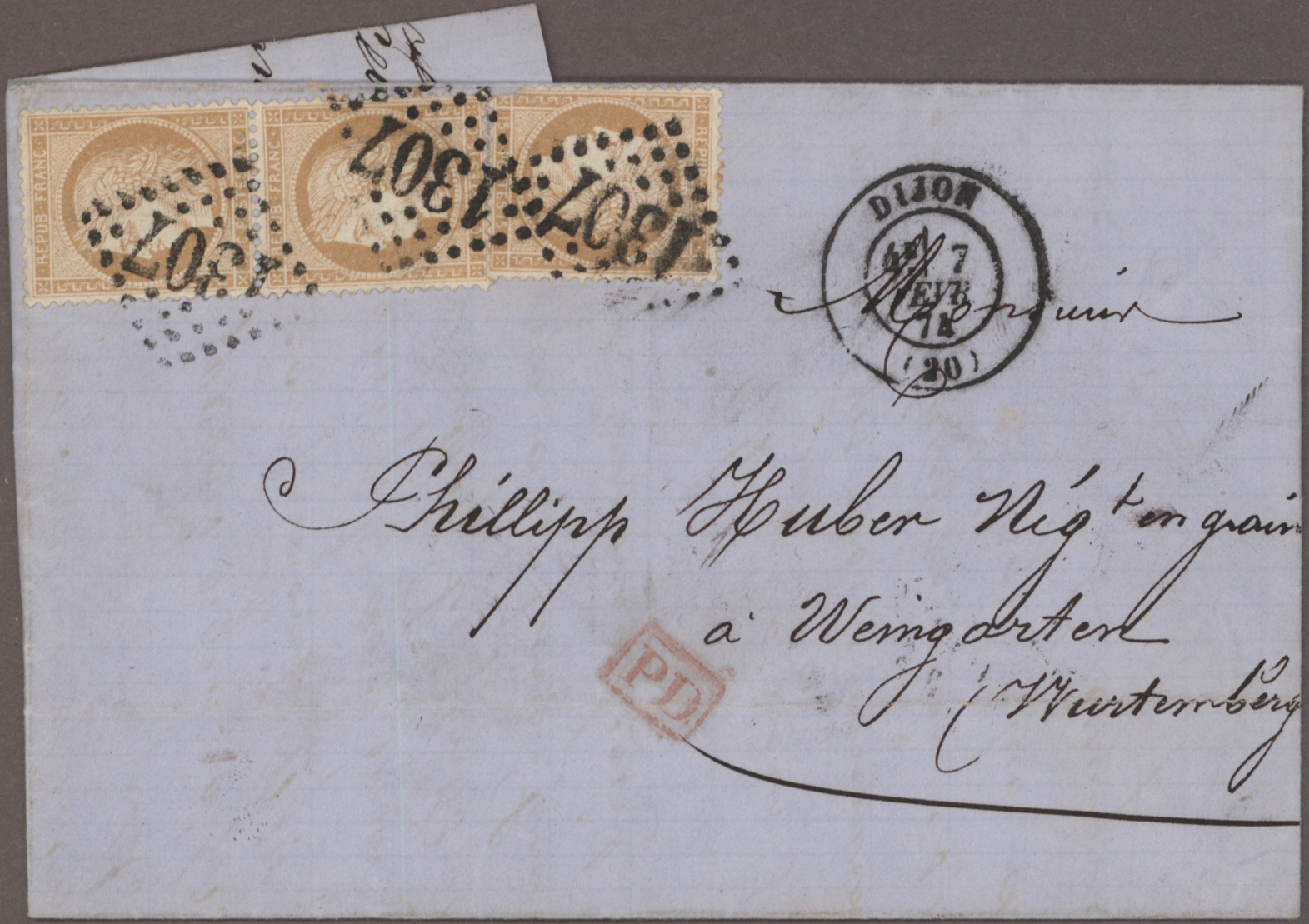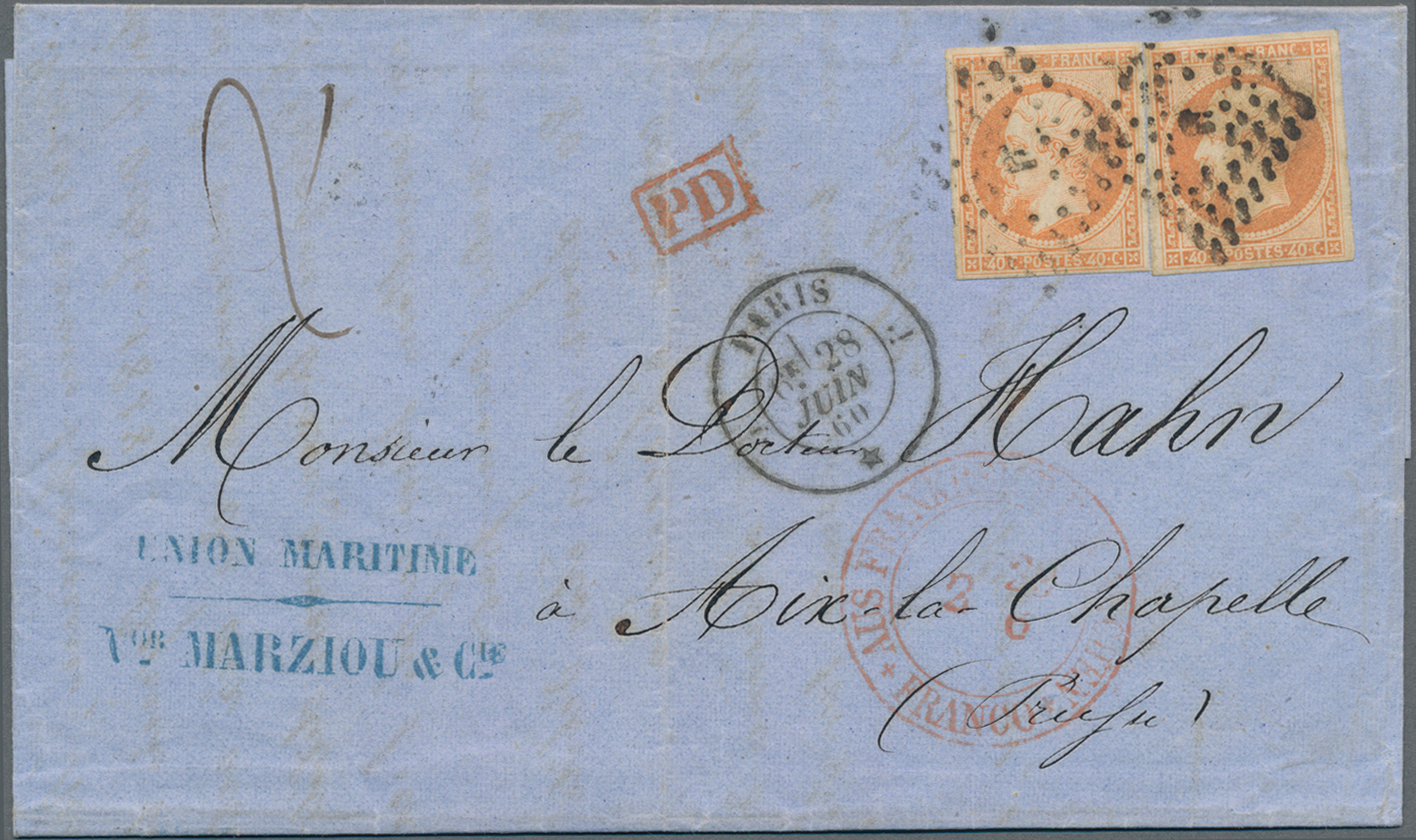 1850-1860: Nine folded letters and covers franked by early Ceres resp. Napoleon issues, various rates, destinations like Oran (Algeria) or Aachen (Prussia), colour shades,
