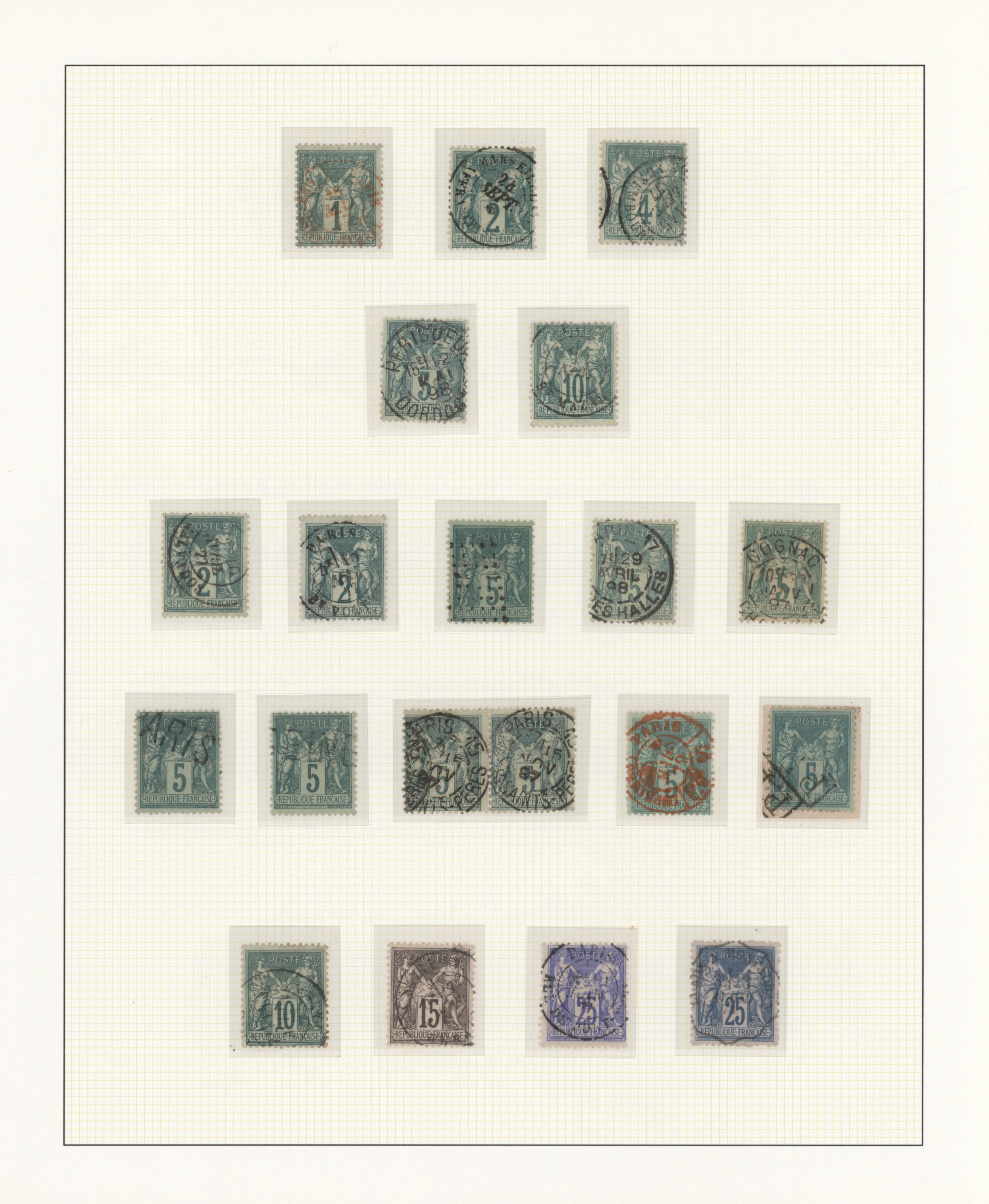 1870/1900, fine used collection of 136 stamps Ceres and Sage neatly arranged on album pages, incl. shades, nice range of postmarks incl. GC, c.d.s., etoile, ambulant and