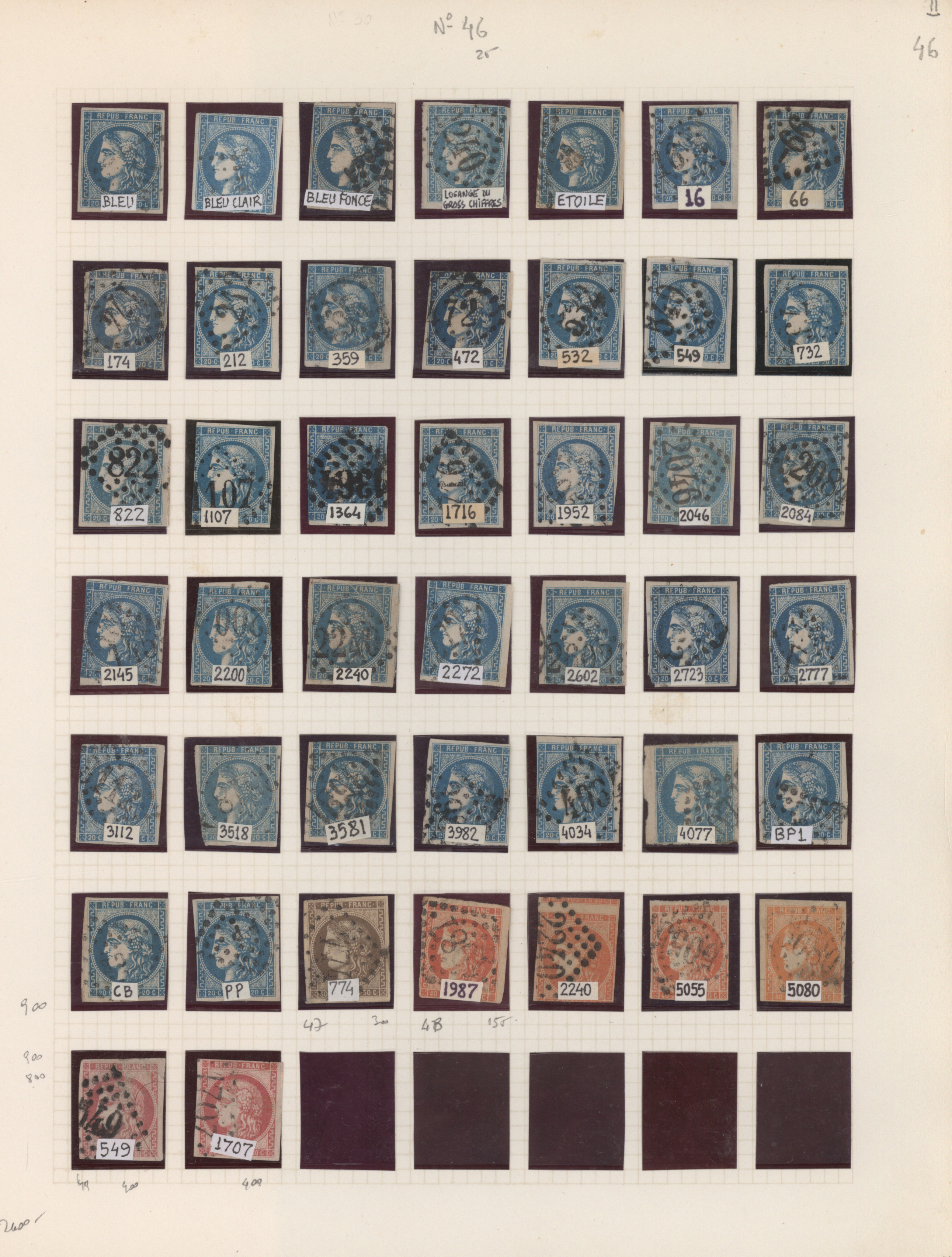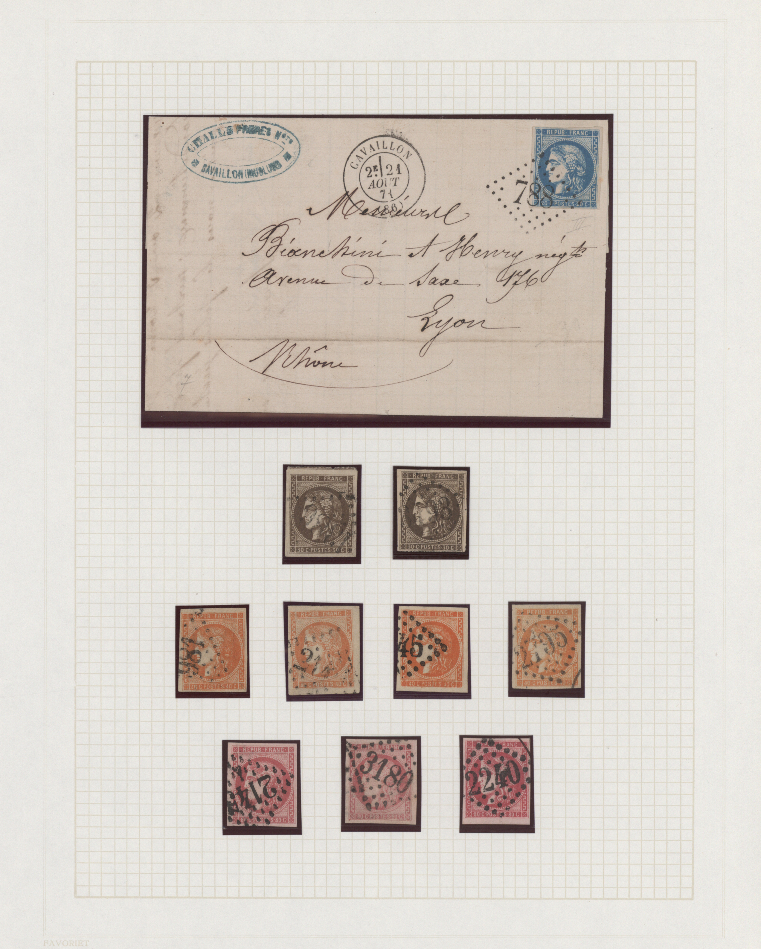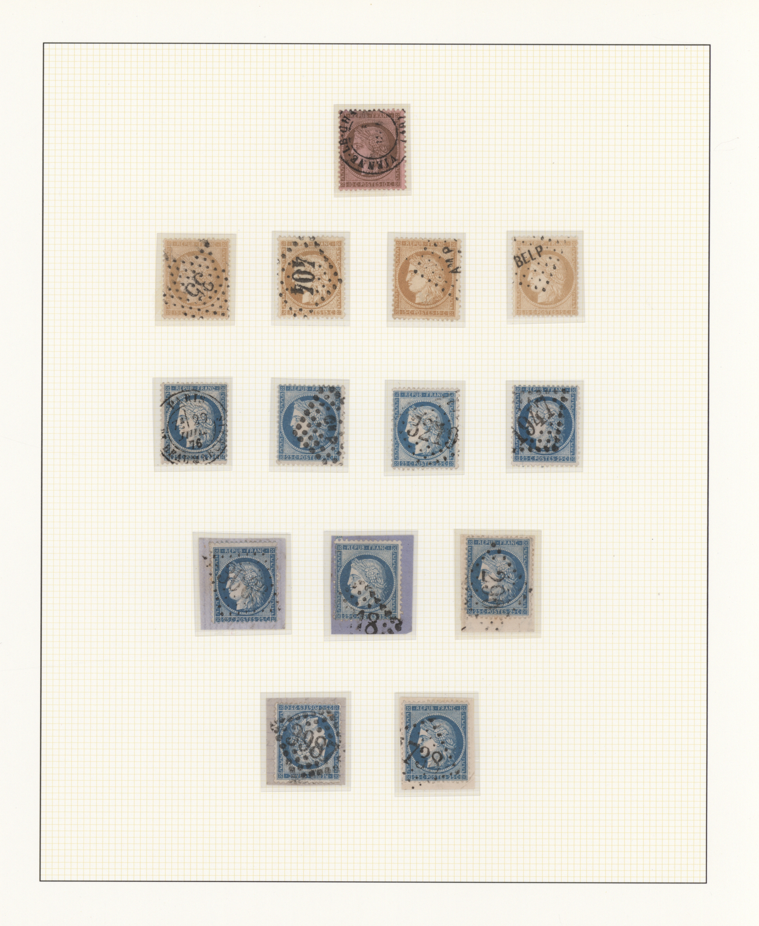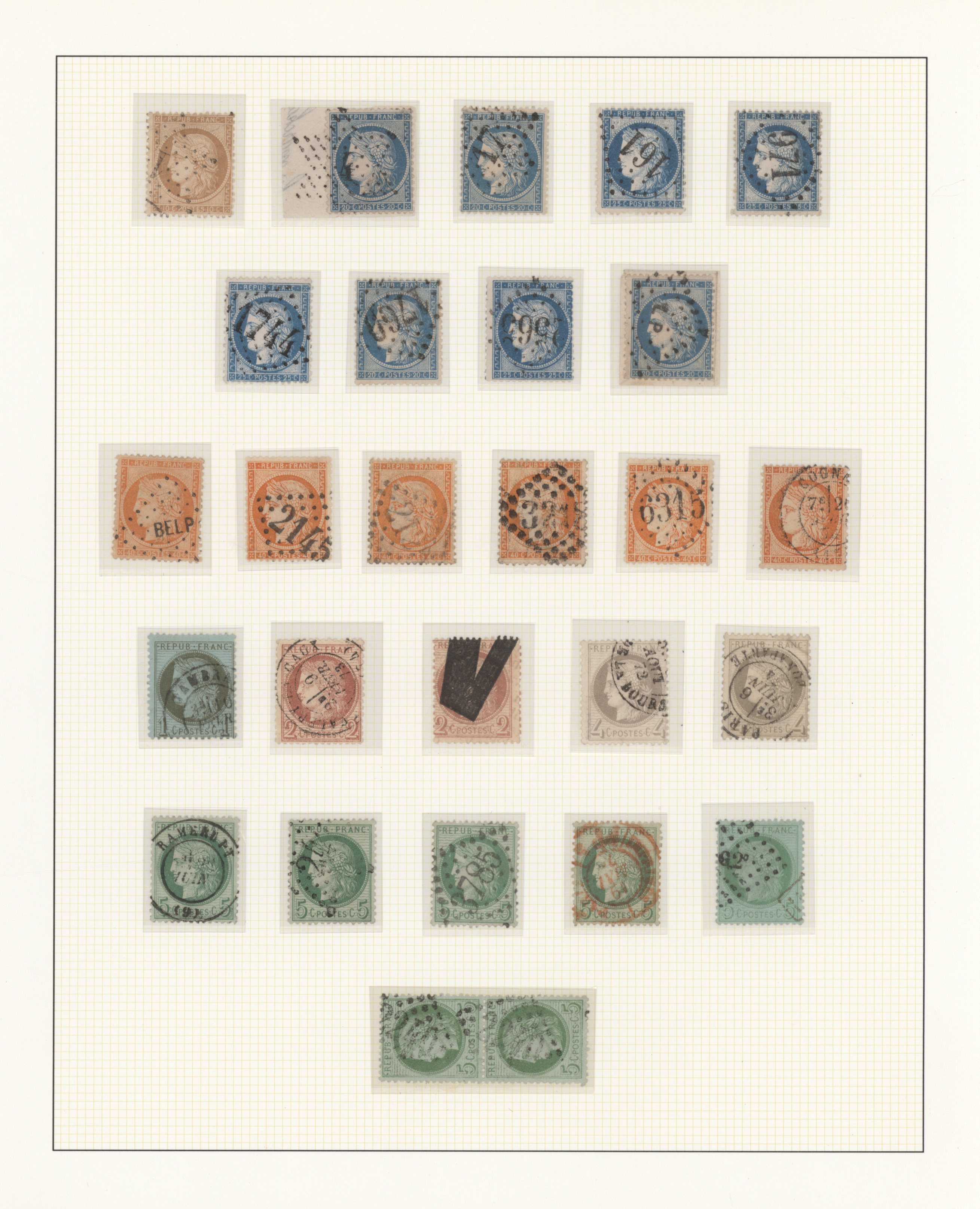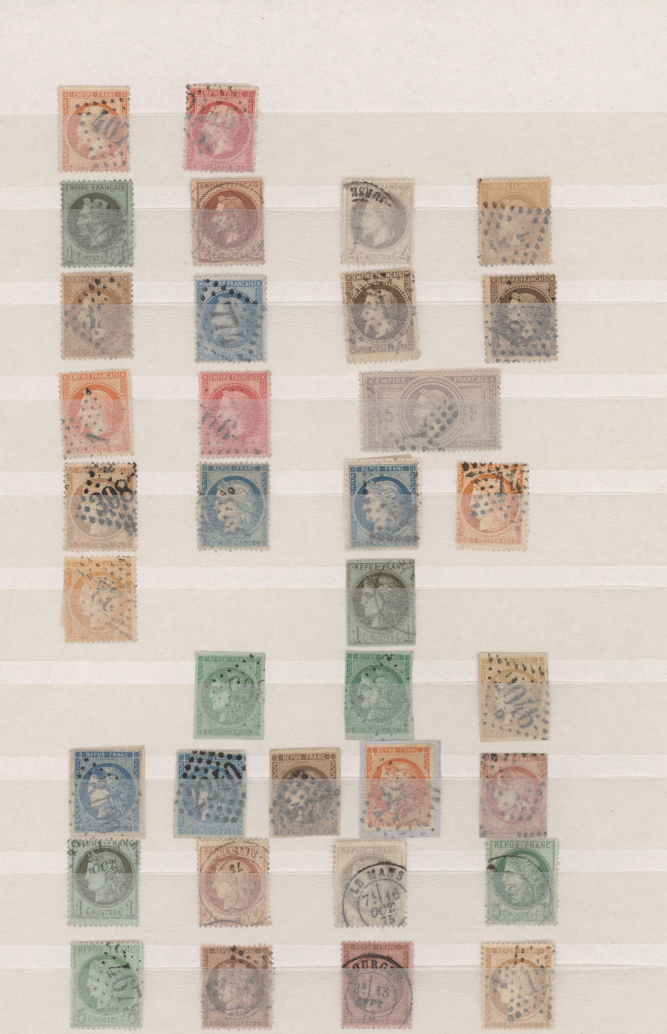 1870 Bordeaux issue: More than 90 used stamps, from 1c. to 80c., with identified cancellations, in slightly mixed condition. (Yvert more than €6500)