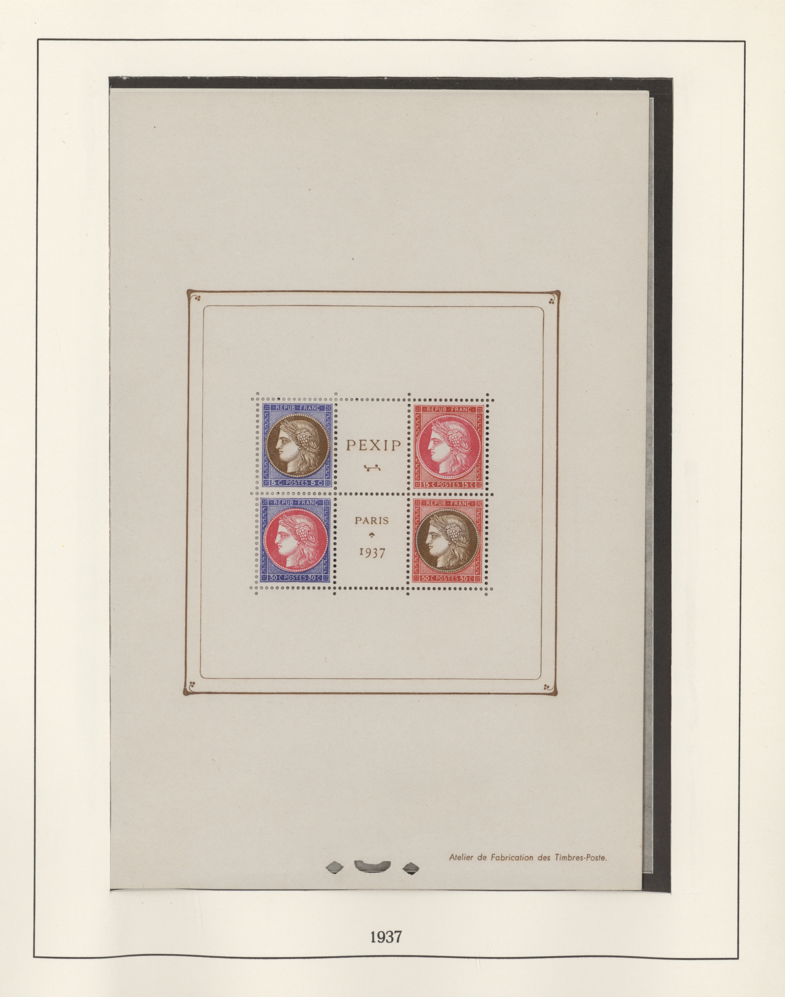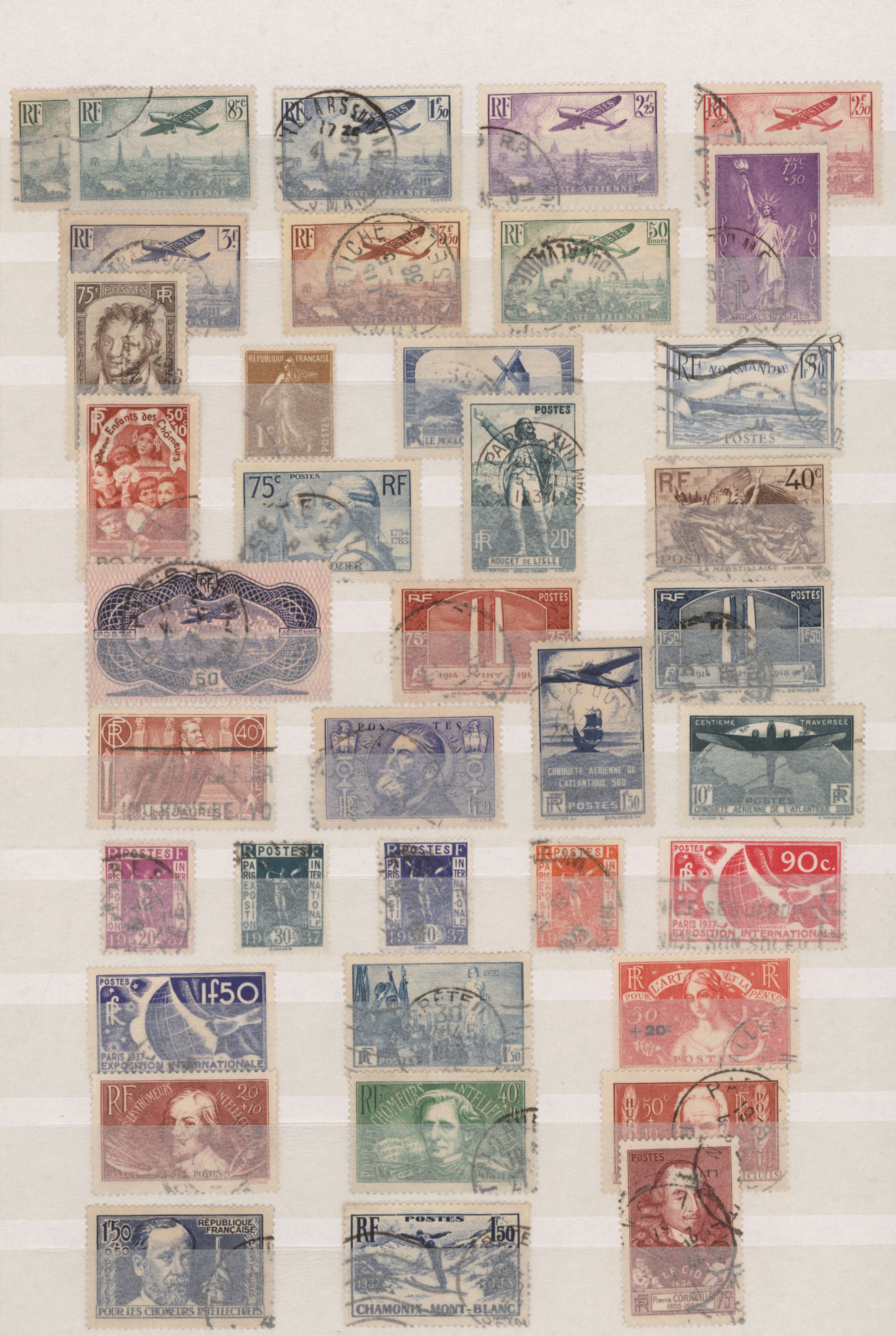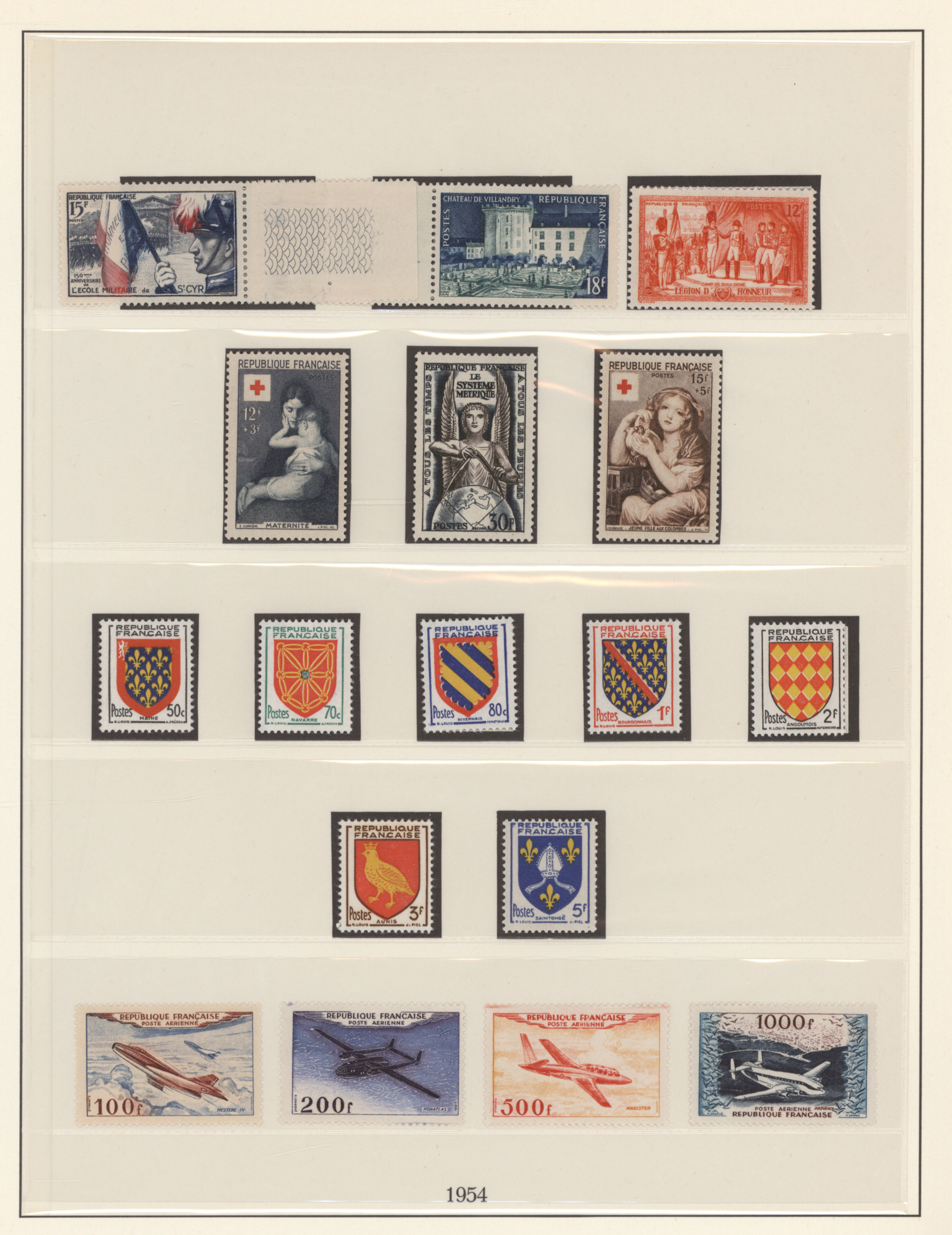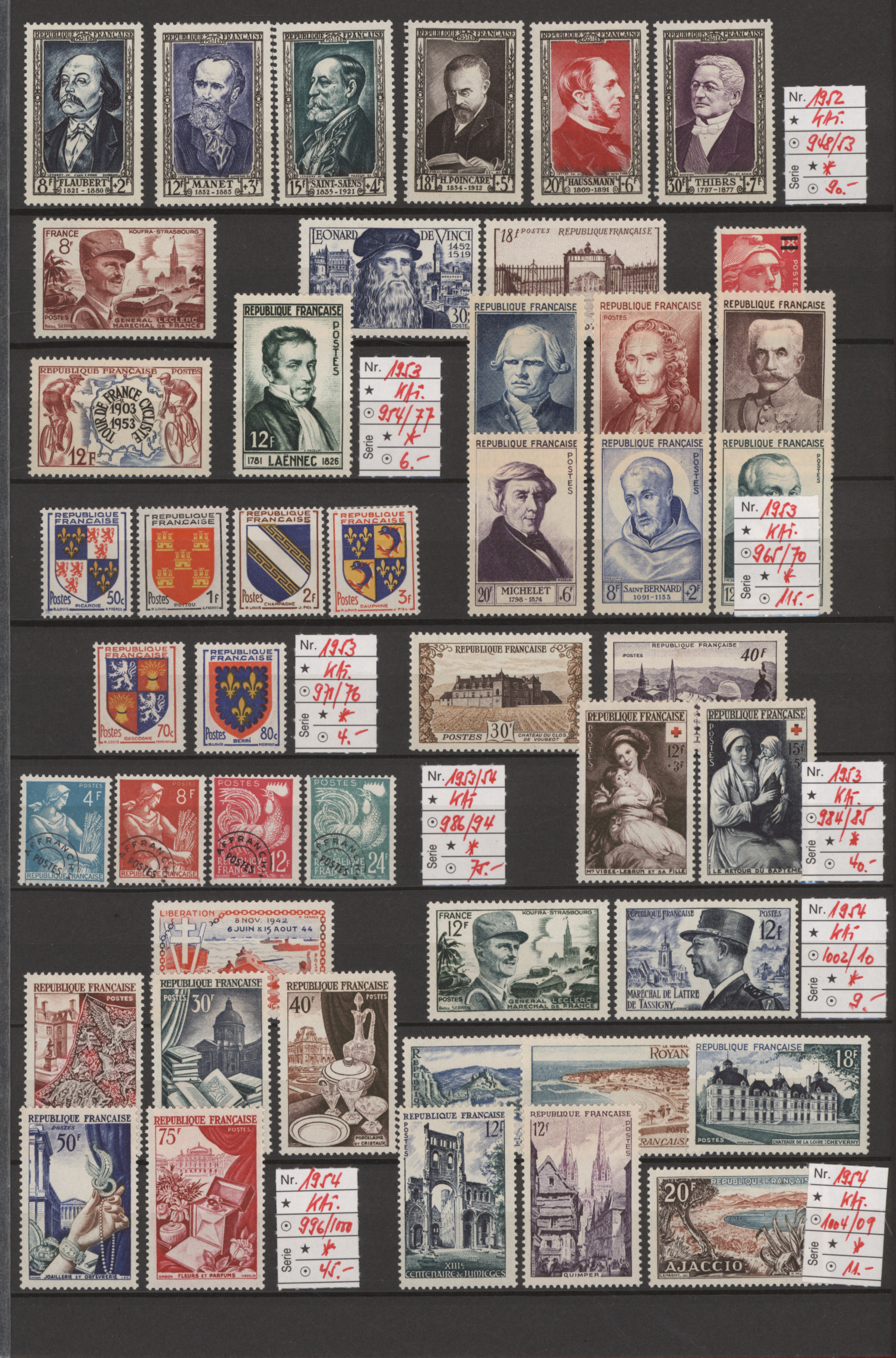 Airmail 1936 50fr. Burelage and 10fr. Atlantic crossing, 1937 Louvre, Famous Frenchmen sets, nice Back of Book, etc. High cat.value!