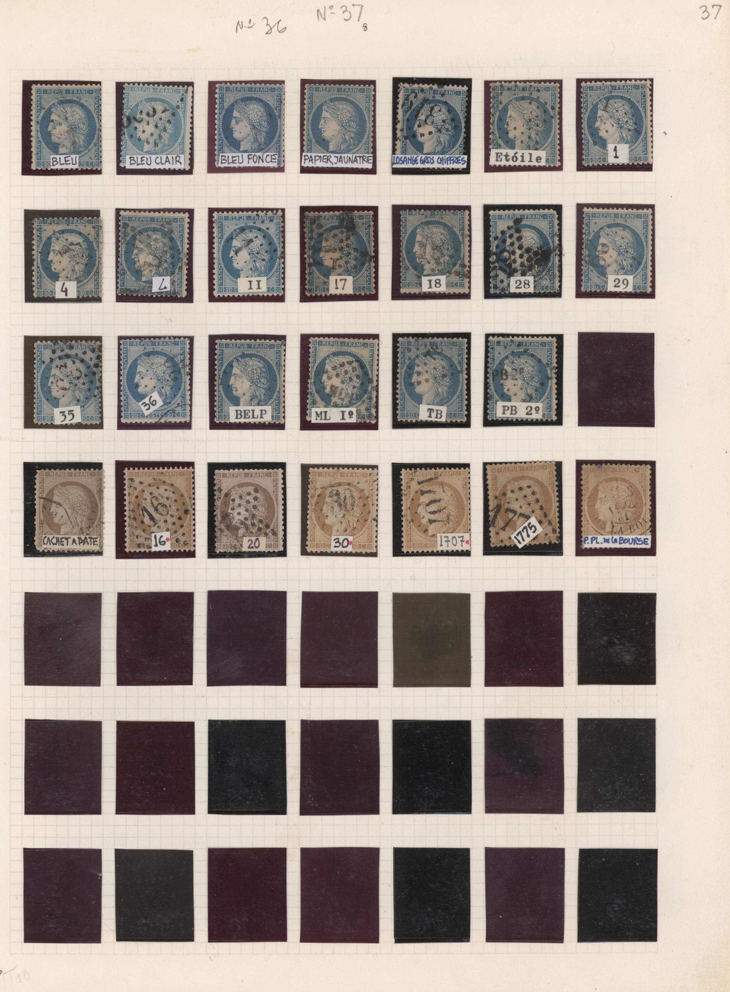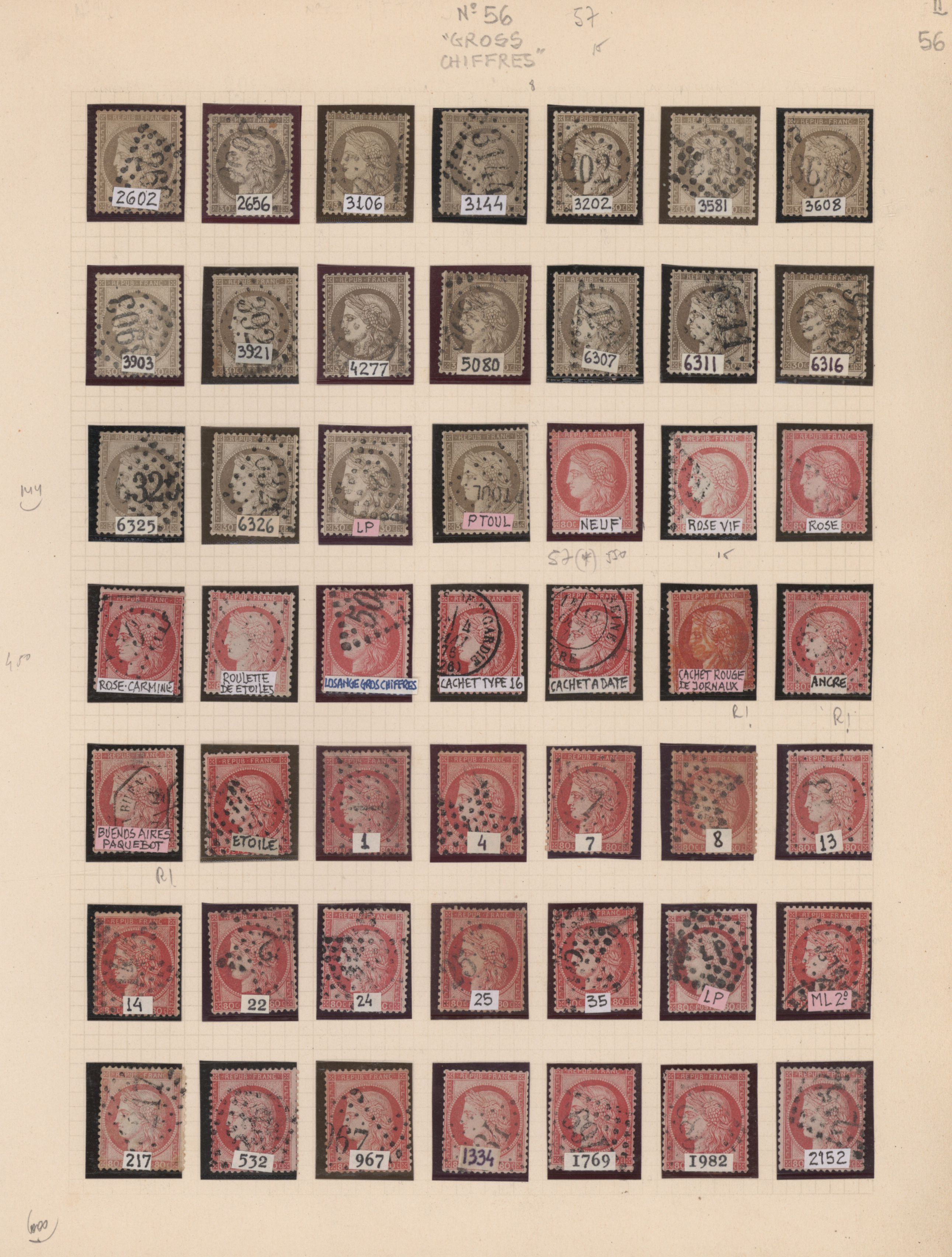 1871-75 Ceres: Collection and study of more than 1200 used stamps of all denominations with identified cancellations (notes on small pieces), with circled datestamps, large