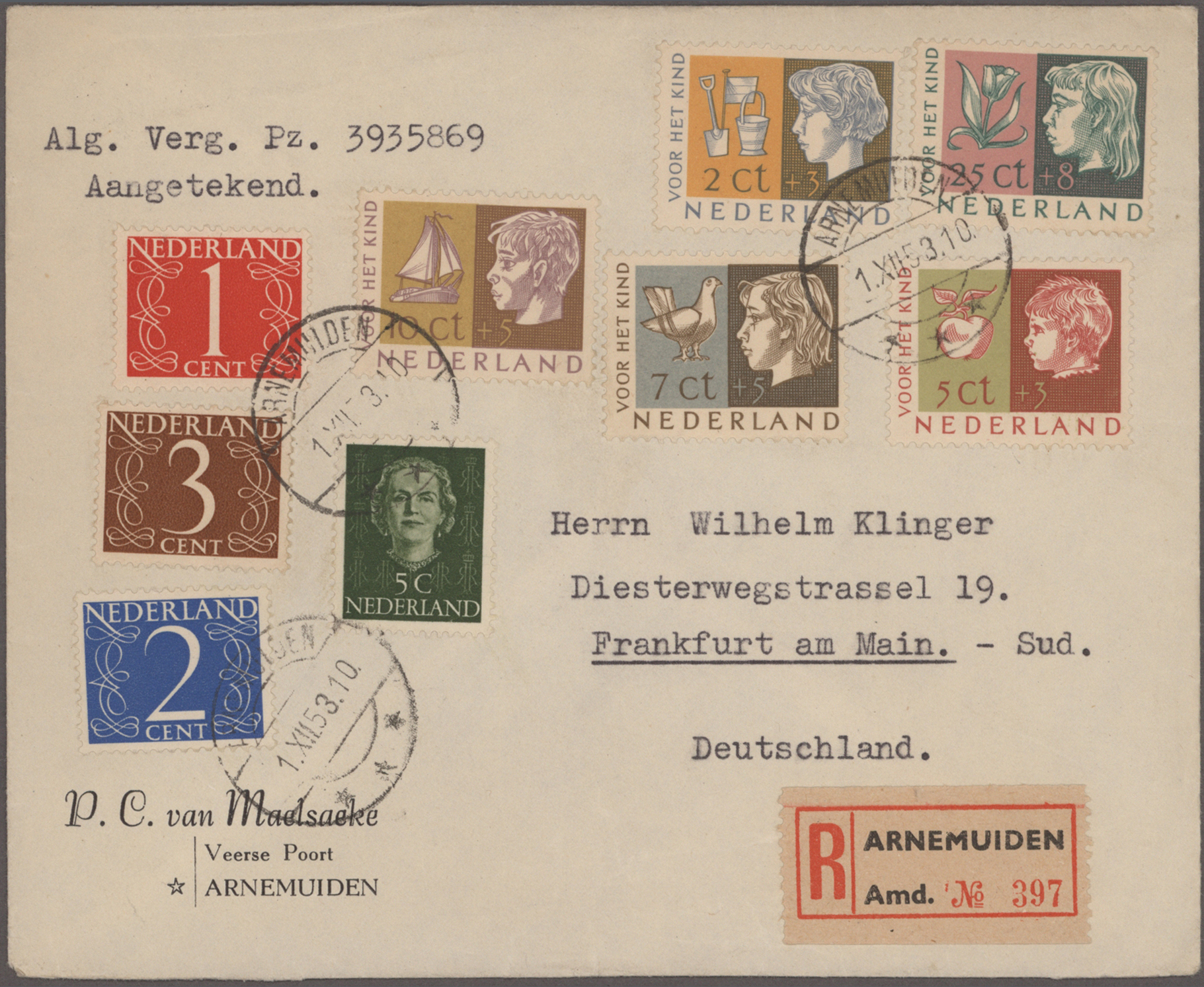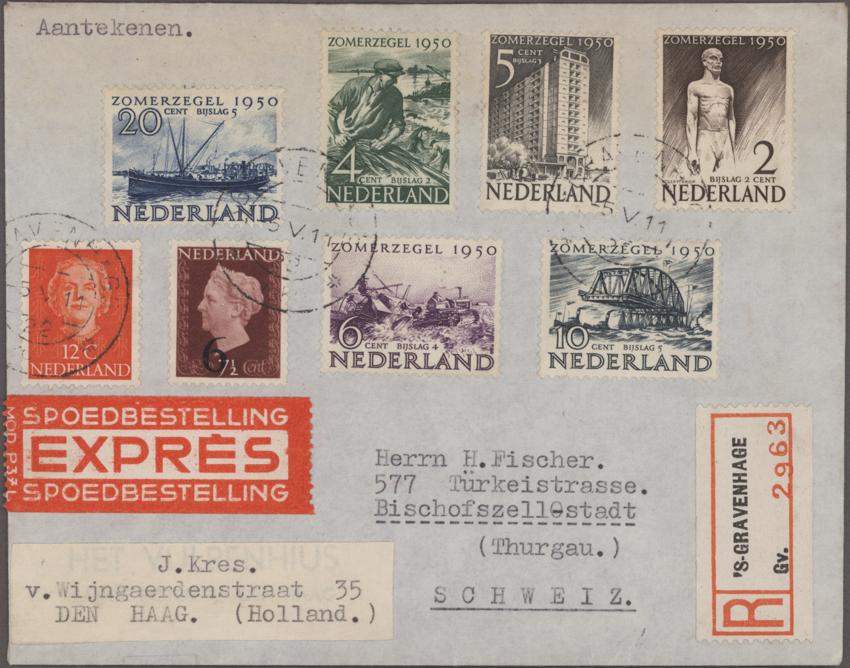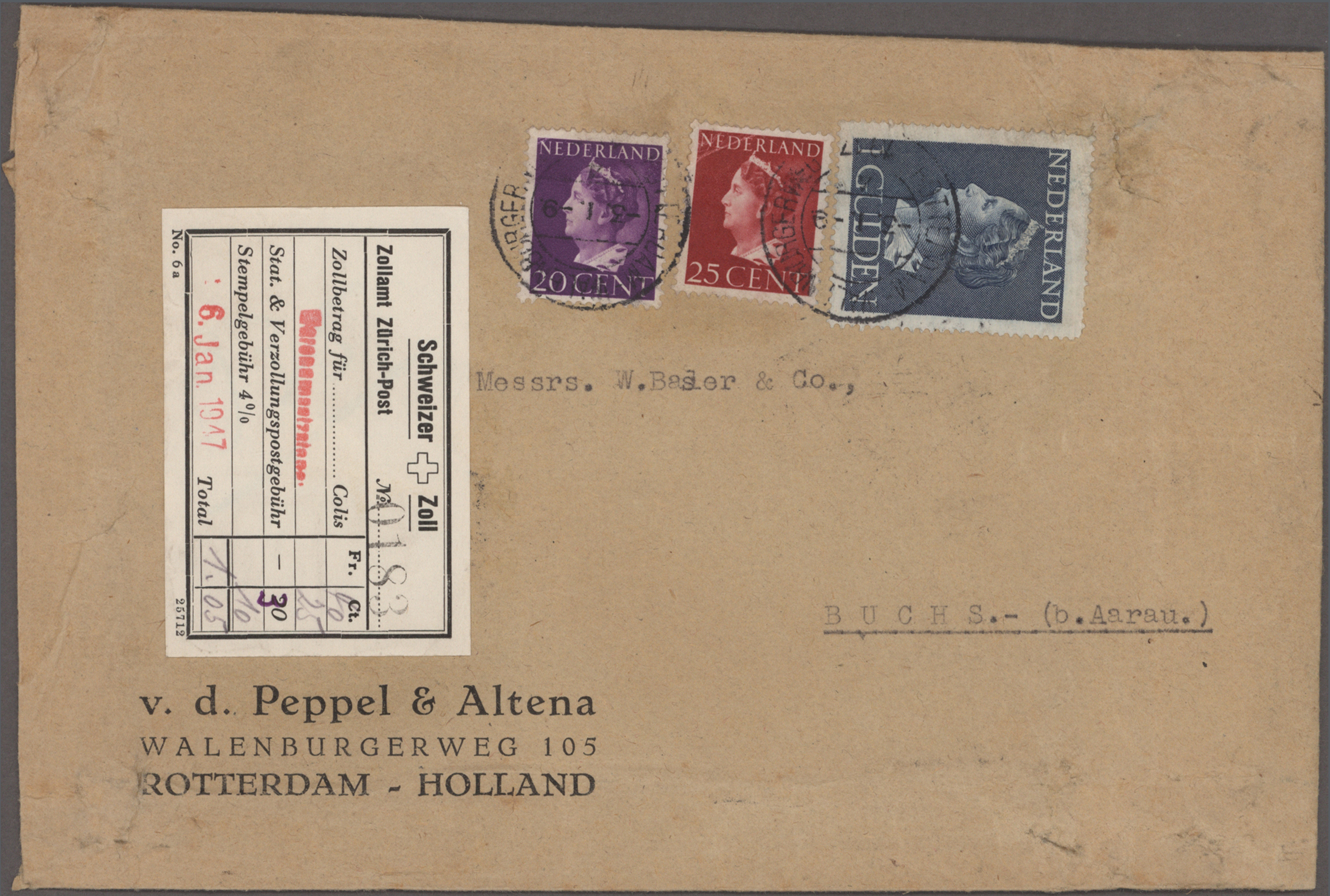 1906/1984, assortment of apprx. 82 covers/cards, comprising e.g. attractive frankings of commemoratives/charity sets, registered, express and insured mail, parcel depatch forms, stationeries, high denominations like 1946 1gld. on commercial cover, etc.