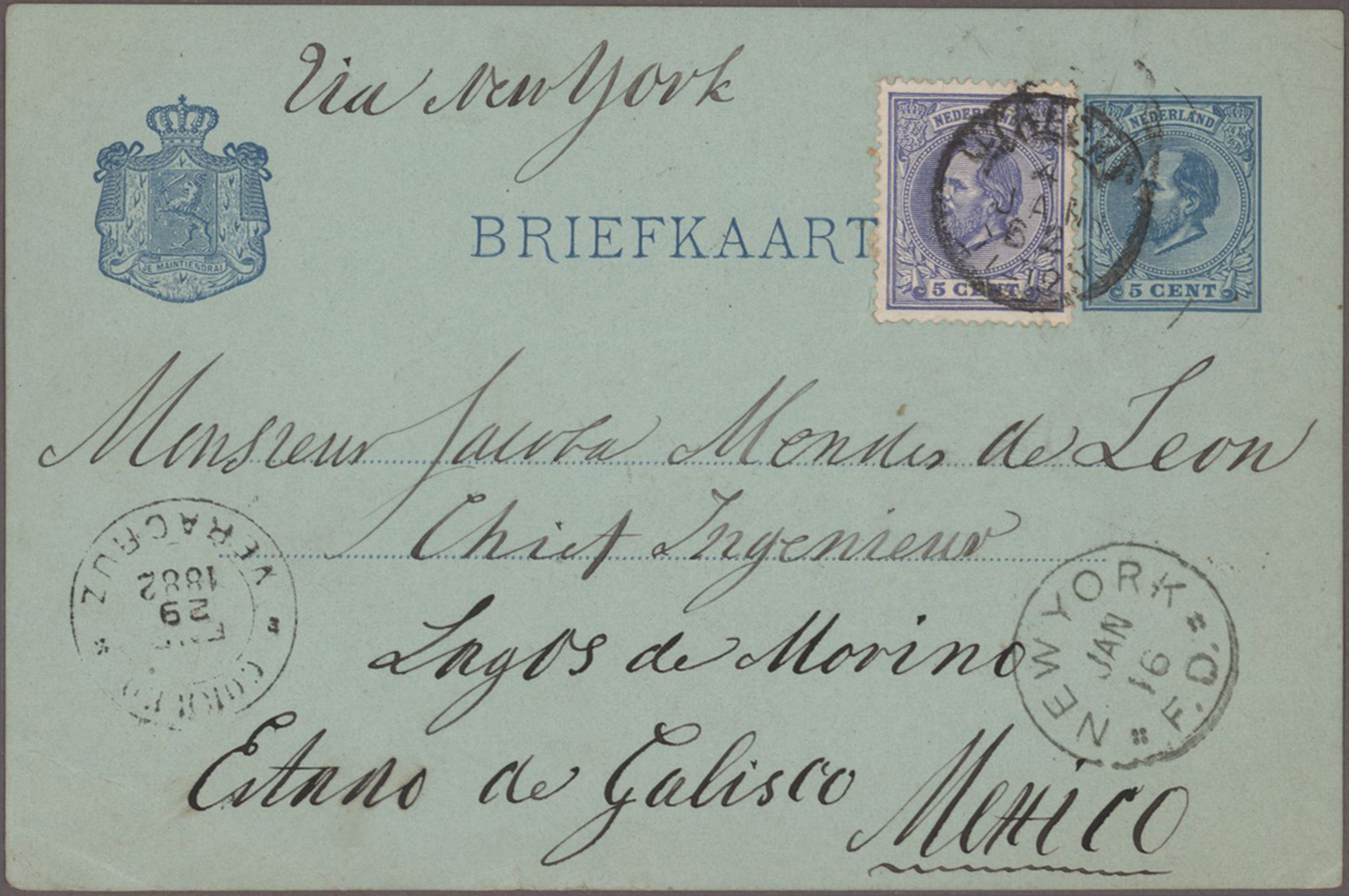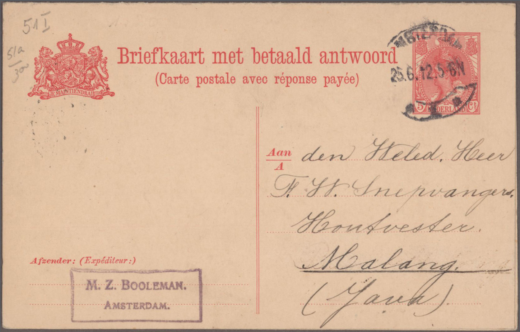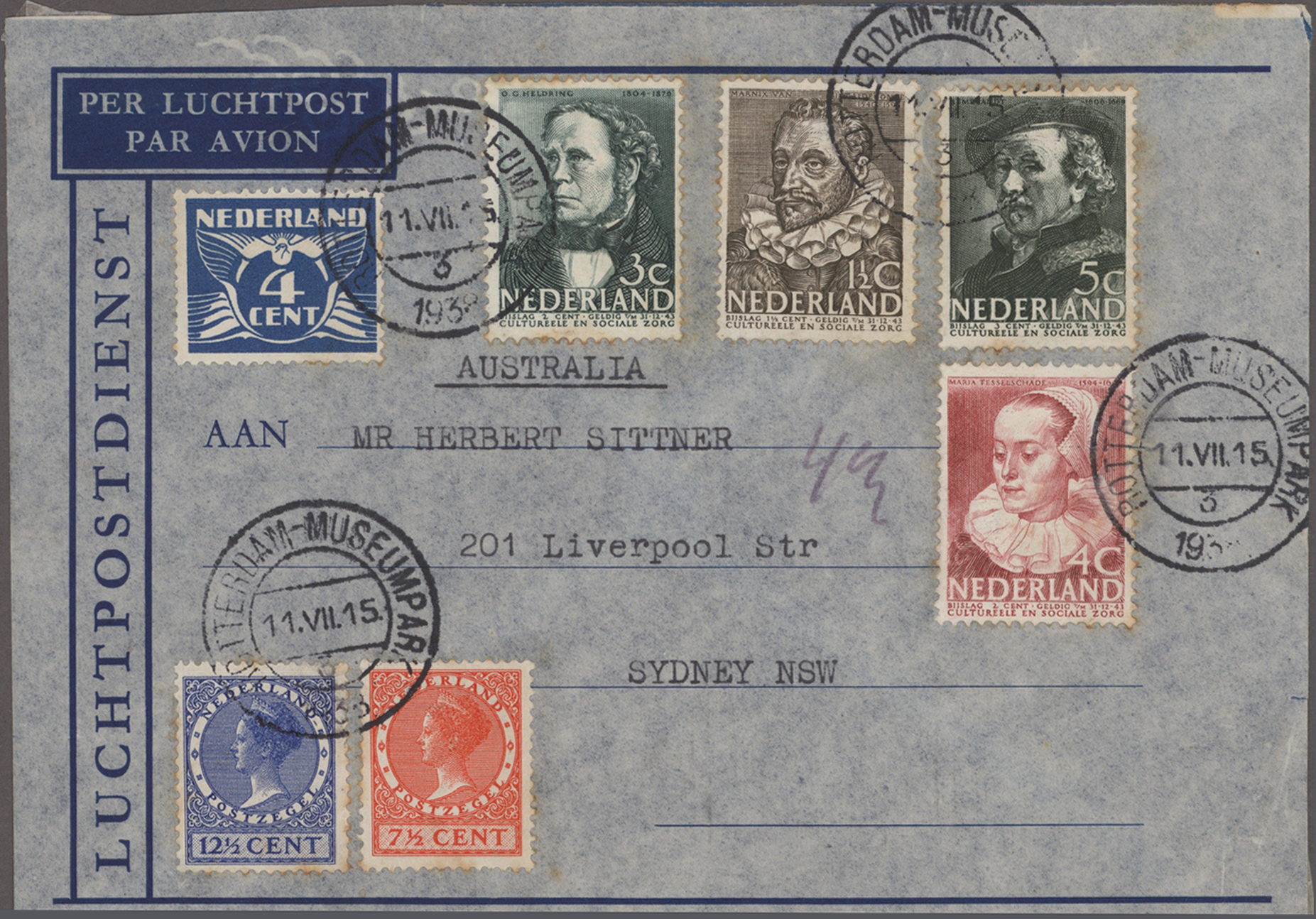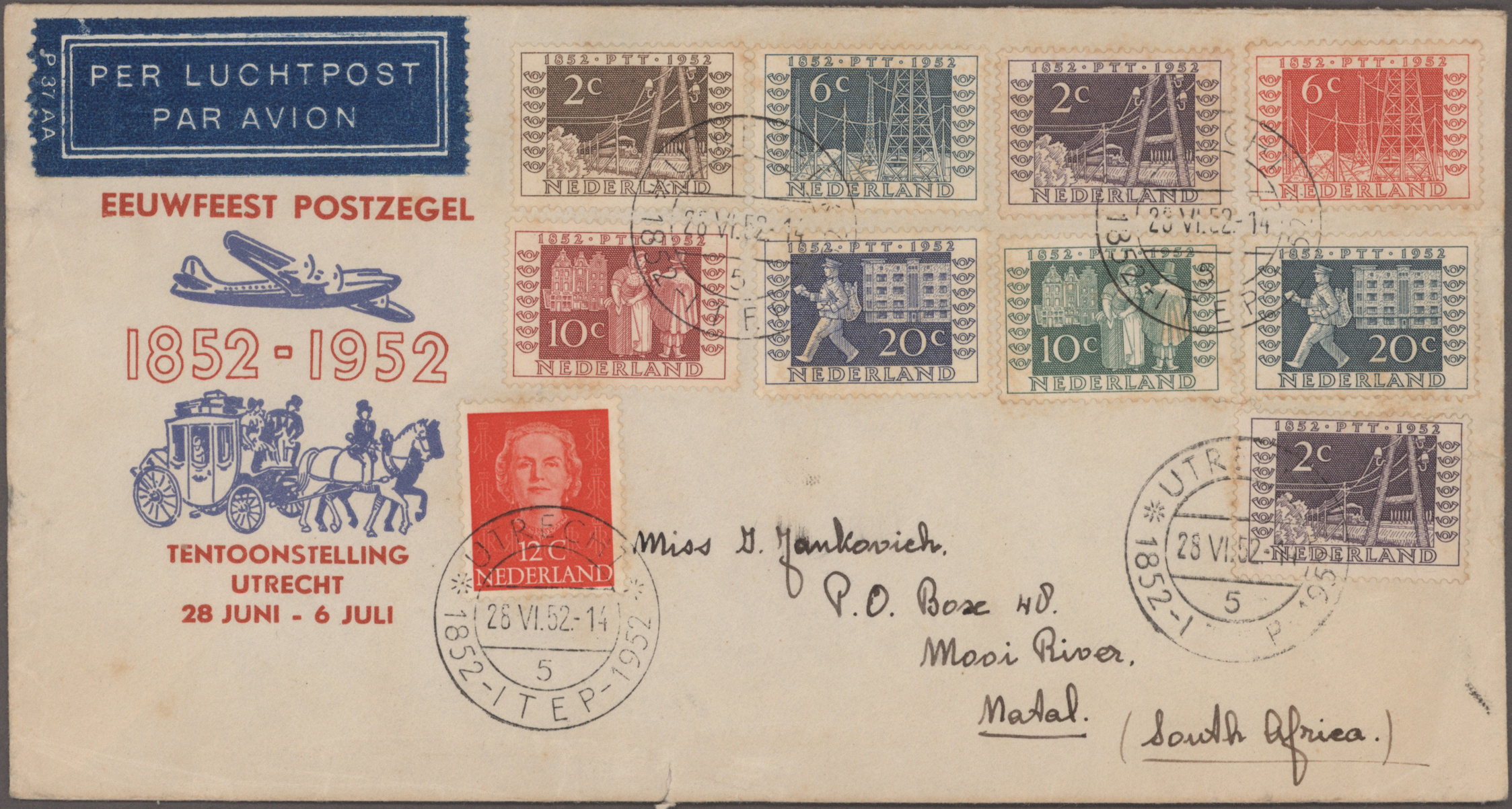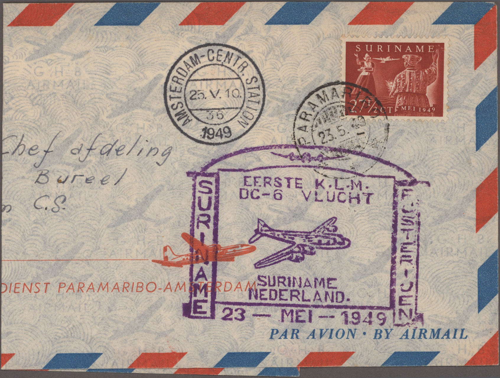 1890's-1950's: Used stamps, postcards, covers, pieces and postal stationery items from the Netherlands and Curacao, with mail to Argentina (incl. three censored covers from Curacao), 1951 FDCs to Argentina, pieces with high frankings like 1951 Air 25g., and others, plus a 12½c. pin-perf from Luxemburg.