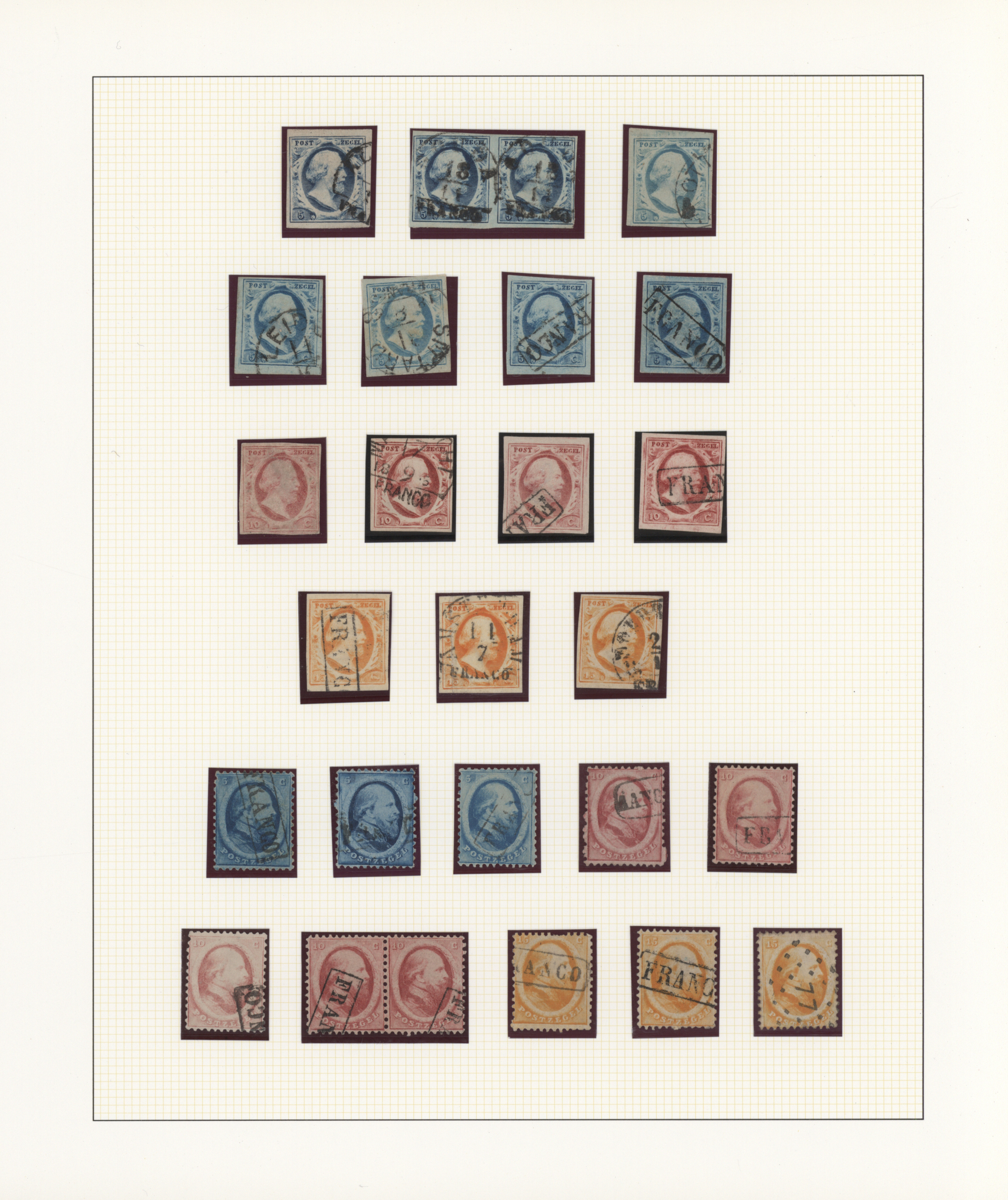 1852/1986 (ca.), ein Posten von über 60 meist Satzbriefen, manche dabei mehrfach, teils als FDC ins Ausland gelaufen, teils Blanco aus den Jahren 1956/86, dazu ein kleines Steckbuch sowie ein Auswahlheft mit Teilsammlungen.