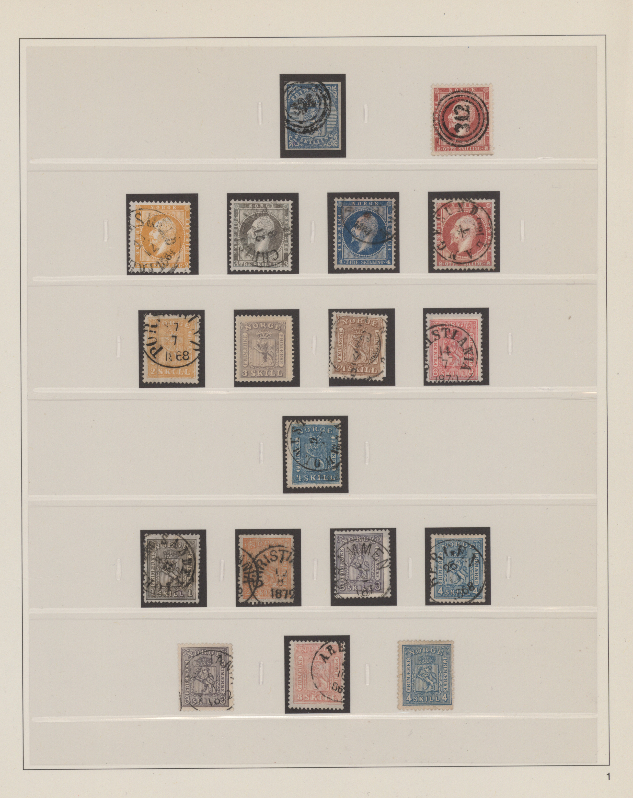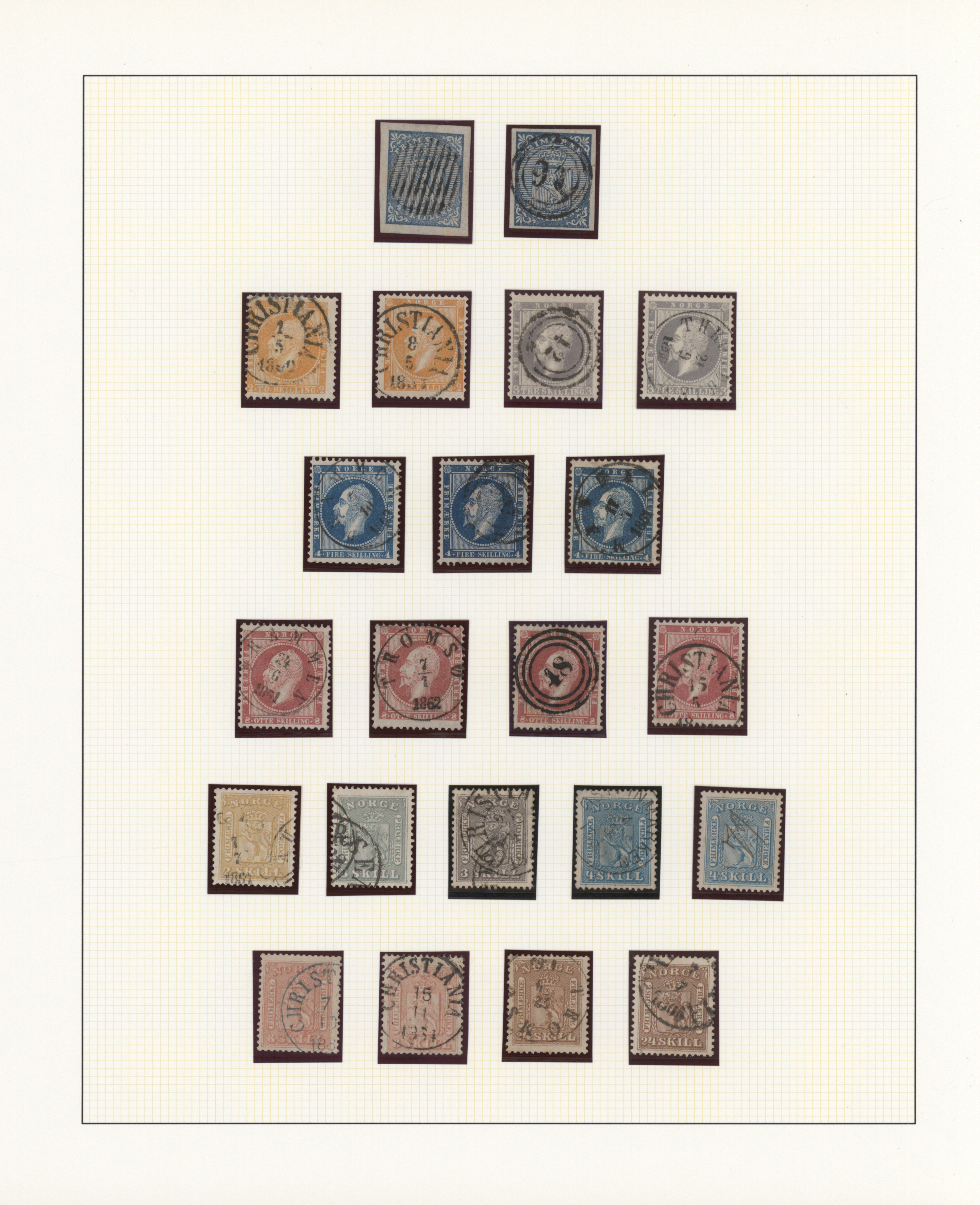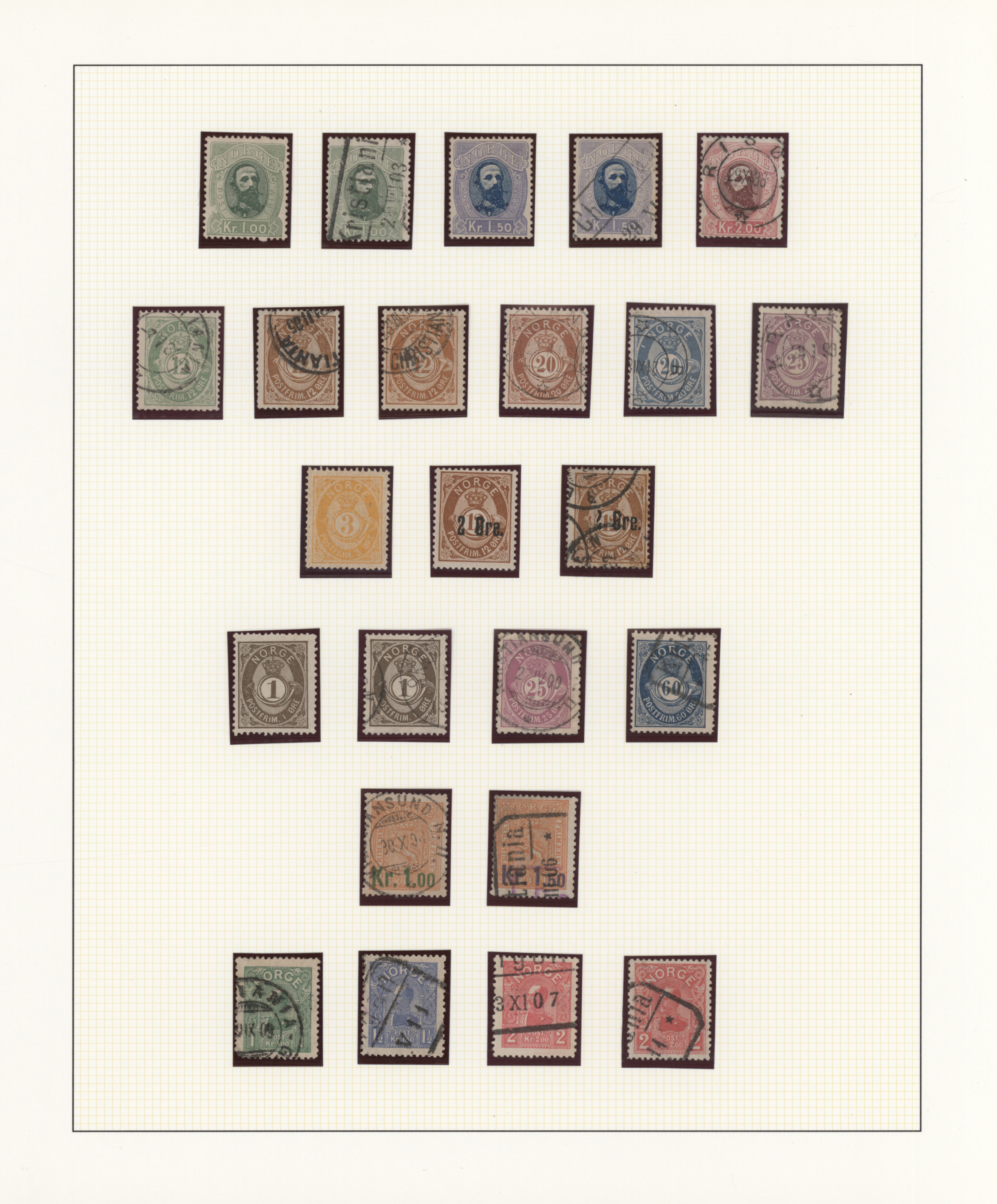 1855/1910, a decent mainly used collection on album pages, comprising two stamps of 1855 4sk. blue (grid and numeral "97"), 1856-1857 King Oscar all denominations, 1863 and 1867 Lion issues all denominations each, Posthorn Skilling and Öre currency incl. 1884 12ö. green, 1888 2ö. on 12ö. bistre showing mutilated surcharge, etc.