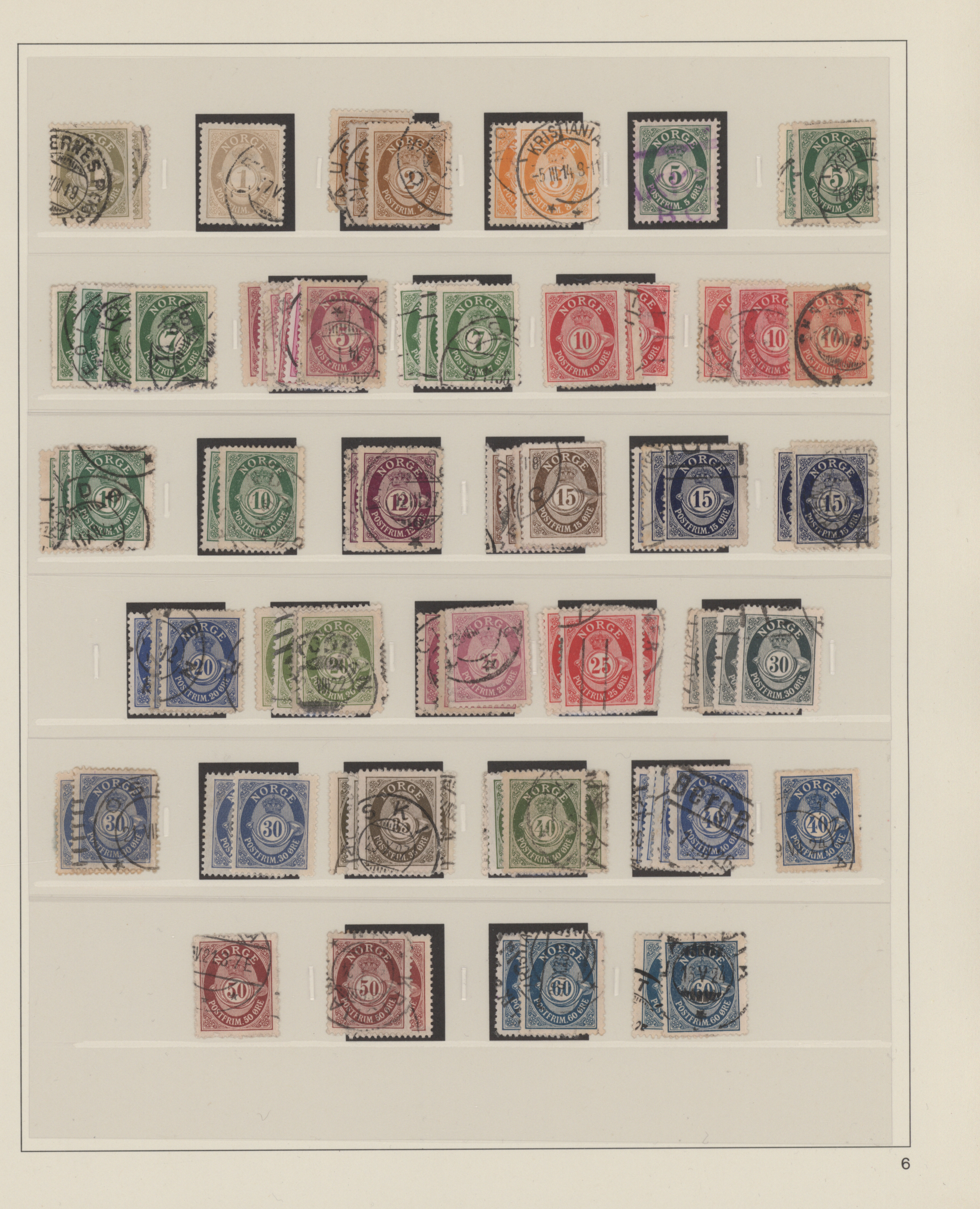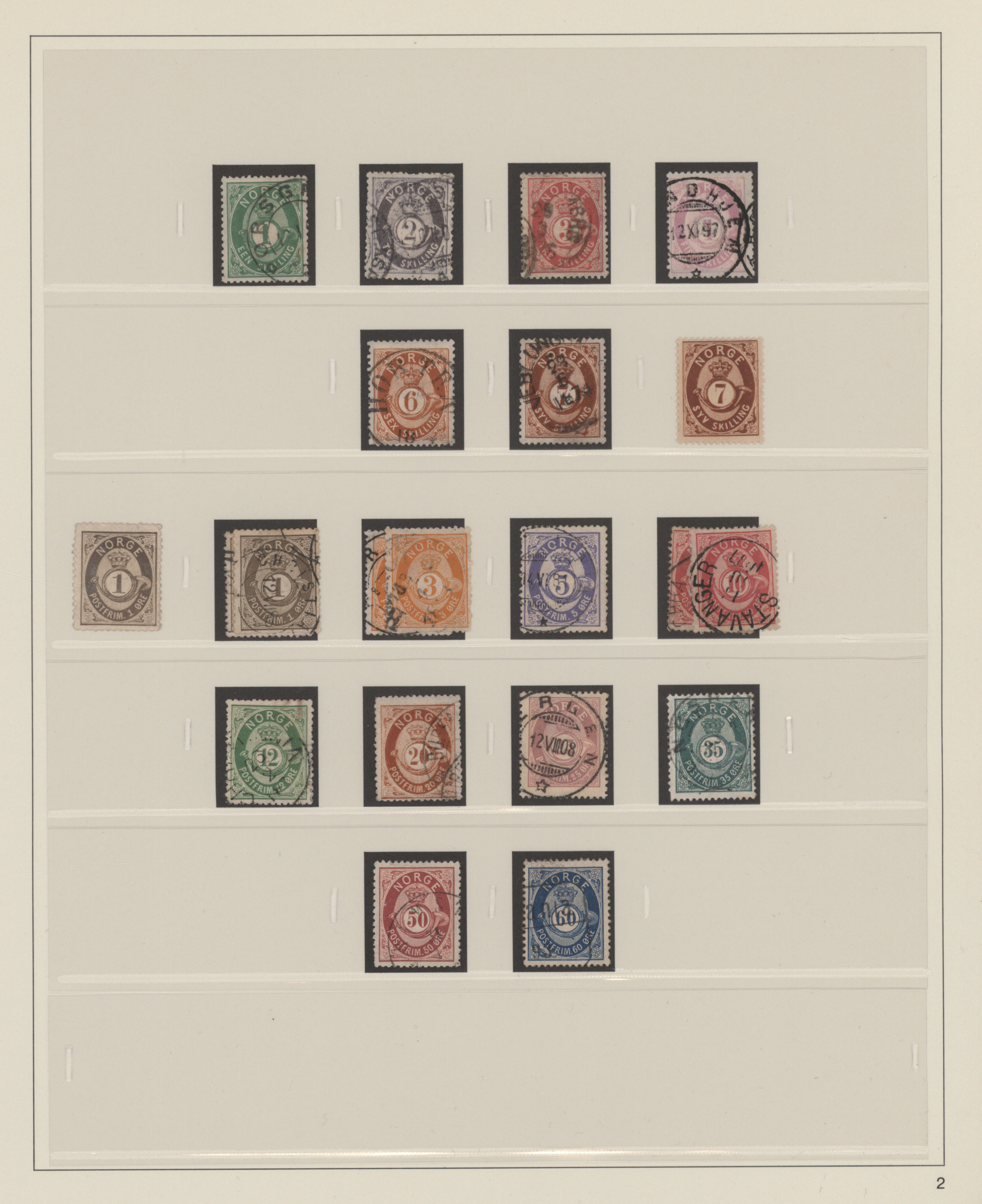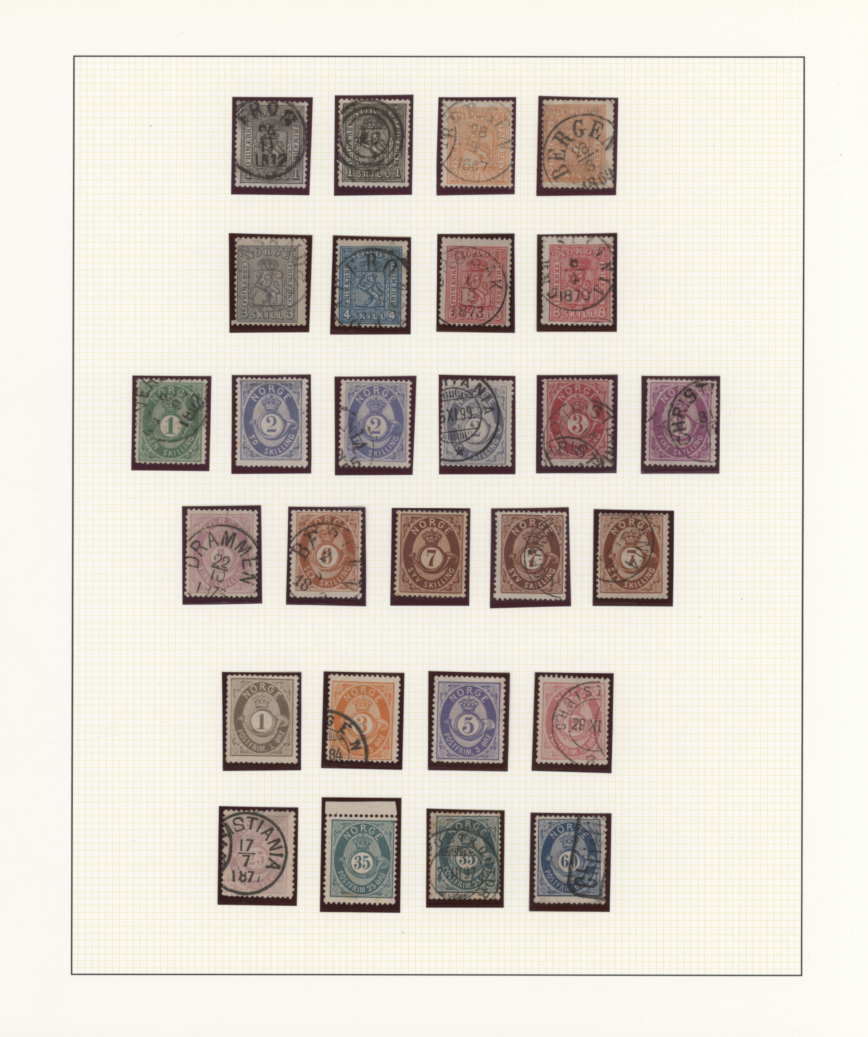 1855/1910, a decent mainly used collection on album pages, comprising two stamps of 1855 4sk. blue (grid and numeral "97"), 1856-1857 King Oscar all denominations, 1863 and 1867 Lion issues all denominations each, Posthorn Skilling and Öre currency incl. 1884 12ö. green, 1888 2ö. on 12ö. bistre showing mutilated surcharge, etc.